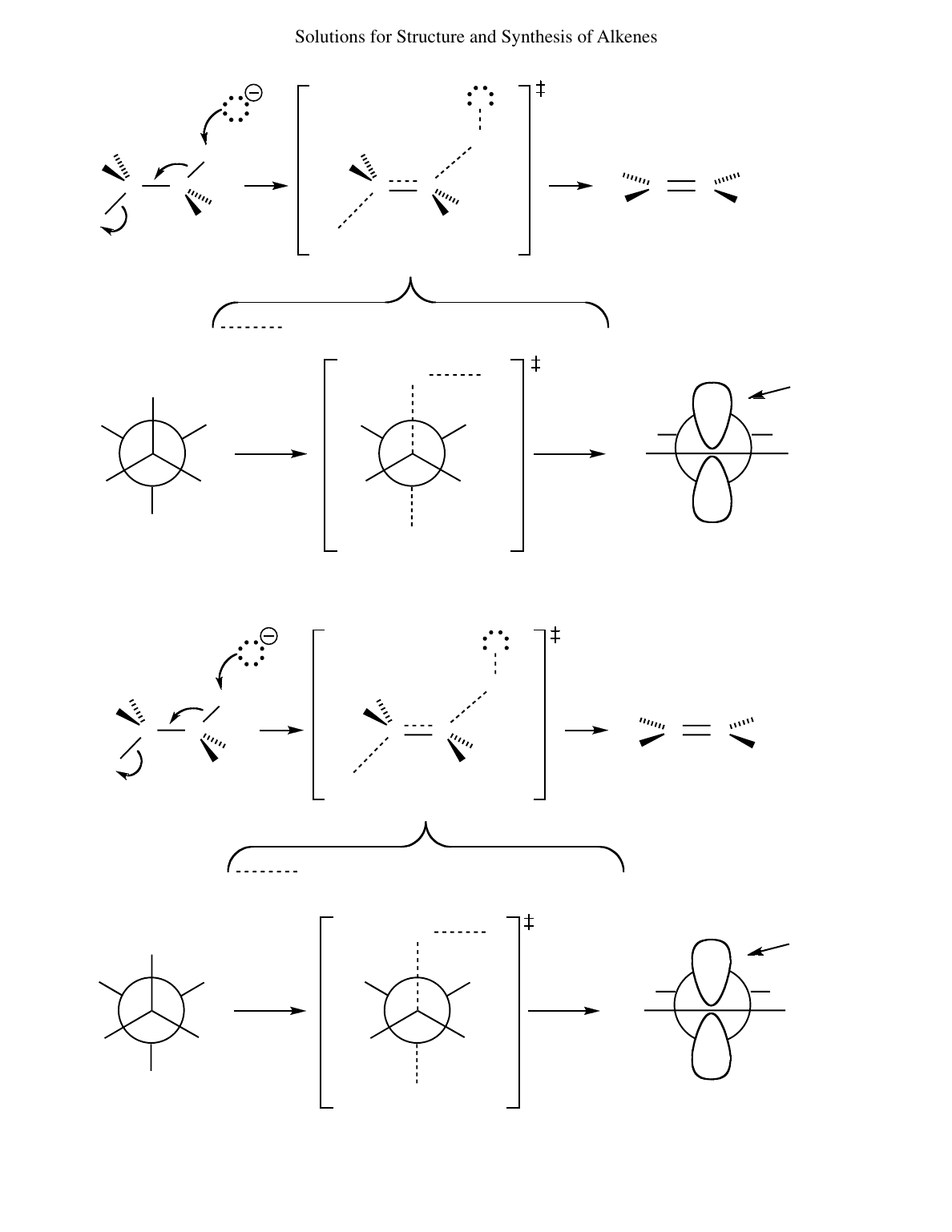 Solutions for Structure and Synthesis of Alkenes C C H H PhPh C Ph H C Ph H Br Br II C C Br Br H Ph H Ph = stretched bond being broken or formed δ − δ − only geometric isomer possible from a concerted mechanism both Br anti-coplanar transition state cis 20 Ph H Ph Br Br H Ph H Ph Br I Br H H PhH Ph pi bond cis transition state δ − δ − H H3C H Br Br H3C H H3C H Br I Br H3C I C C Br Br H3C H CH3 H C H CH3 C H H3C Br Br I H3C C C H3C CH3 HH HH3C H = stretched bond being broken or formed δ − δ − only geometric isomer possible from a concerted mechanism both Br atoms anti-coplanar transition state cis 21 (S,S) pi bond cis transition state Br atoms at 180° δ − δ − 157