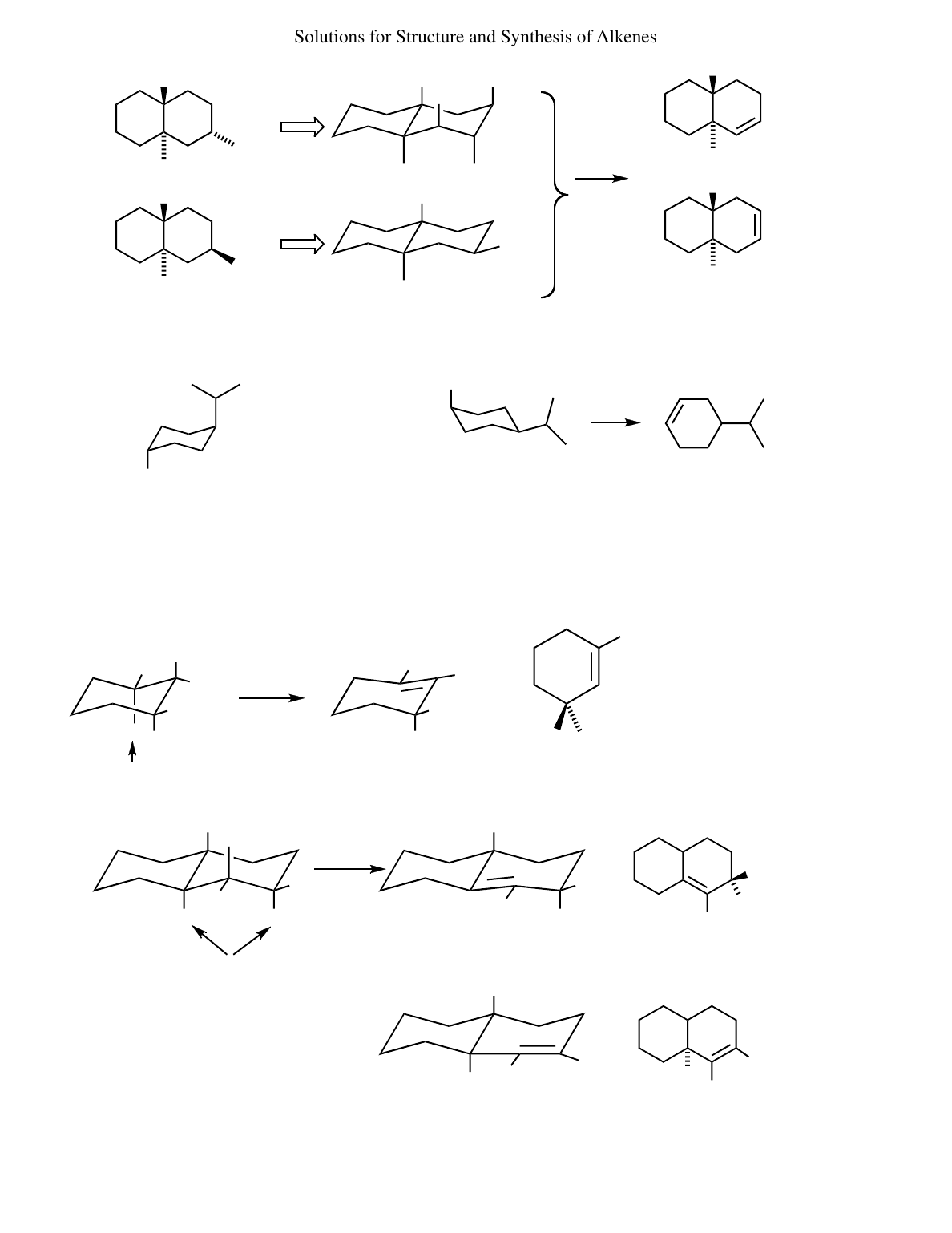 Solutions for Structure and Synthesis of Alkenes H H KOHH Br H Br H Br Br H 18 (a) axial equatorial + H H Showing the chair form of the decalins makes the answer clear. The top isomer locks the H and the Br that eliminate into a trans-diaxial conformation—optimum for E2 elimination. The bottom isomer has Br equatorial where it is exceedingly slow to eliminate. (b) Br Br must be axial to eliminate by E2, forcing the large isopropyl group axial, a very unstable conformer; this trans isomer will be exceedingly slow to react as the preferred conformer will be diequatorial. Br In this cis isomer, the Br is in the optimum axial position for elimination while the large isopropyl group is in the energetically preferred equatorial position; this will be the reactive conformer. KOH H H CH3 H CH3 H H D H H H H H CH3 CH3 H D H H H H H H NaOCH3 NaOCH3 H Br CH3 H H CH3 H H Br D H H the only elimination product = the only H trans diaxial (a) 19 Models are a big help for this problem. both trans diaxial— gives two products + = = (b) (from elimination of H and Br) (from elimination of D and Br) H H H H 156