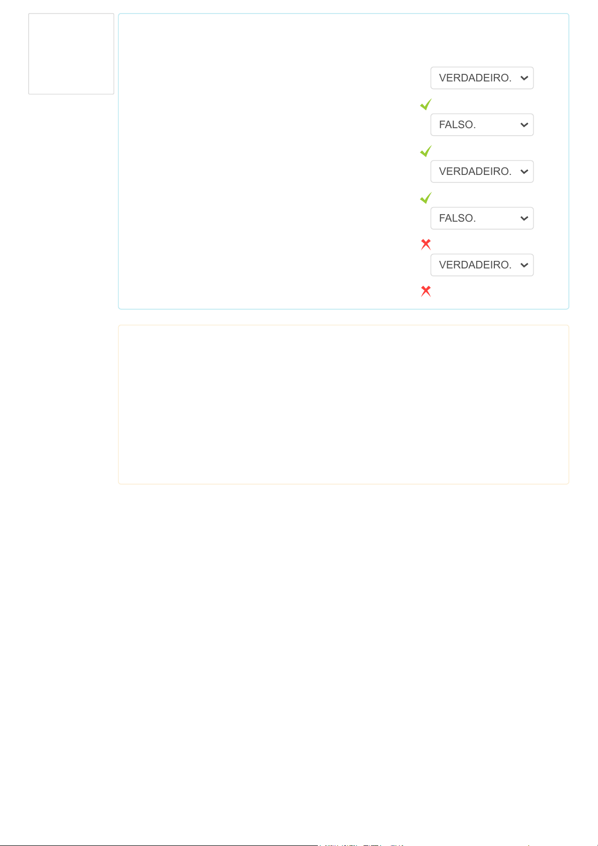 Pergunta 2 Parcialmente correta Nota: 0,60 em 1,00 Das características do modelo biopsicossocial da deficiência. Marque verdadeiro (V) ou falso (F) nas afirmações sobre esse modelo. A deficiência é causada por múltiplos fatores, mas centrada na pessoa que tem limitações. A deficiência é avaliada com base na interpretação que as pessoas fazem das deficiências. A deficiência é predeterminada pelo grau de afetação biológica. A deficiência é uma consequência de causas congênitas, genéticas e biológicas em interação com fatores sociais e a significação individual. A deficiência provoca discriminação contra essas pessoas. Respuesta parcialmente correcta. Selecionou 3 respostas corretas. A resposta correcta é: A deficiência é causada por múltiplos fatores, mas centrada na pessoa que tem limitações. → VERDADEIRO., A deficiência é avaliada com base na interpretação que as pessoas fazem das deficiências. → FALSO., A deficiência é predeterminada pelo grau de afetação biológica. → VERDADEIRO., A deficiência é uma consequência de causas congênitas, genéticas e biológicas em interação com fatores sociais e a significação individual. → VERDADEIRO., A deficiência provoca discriminação contra essas pessoas. → FALSO. VERDADEIRO. FALSO. VERDADEIRO. FALSO. VERDADEIRO.