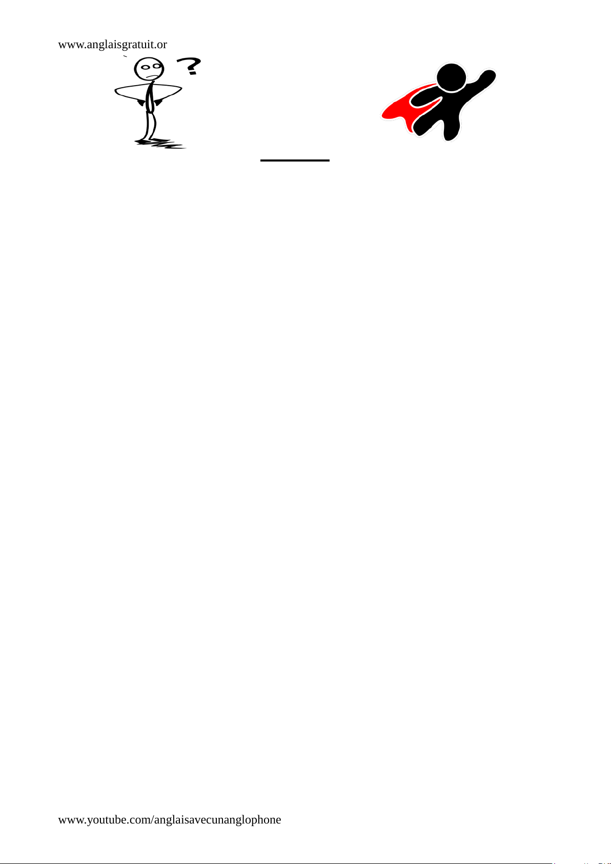 www.anglaisgratuit.org www.youtube.com/anglaisavecunanglophone Zéro à Héro ! Leçon 6 Poser des questions avec ‘to be’ Un petit rappel – to be au présent I am He/she it is You are We are They are Pour former des questions avec ‘to be’ on fera l’inversion verbe/sujet. He is French. Il est français. >>>>>>>Is he French ? Est-il français ? They are tired. Ils sont fatigués. >>>>>>>Are they tired ? Sont-ils fatigués ? Le verbe ‘do’ Le verbe ‘do’ signifie ‘faire’, c’est un verbe comme les autres mais il est aussi utilisé comme verbe auxiliaire. DO comme auxiliaire n’a pas de signification propre, il est simplement utiliser pour former des questions. Il ne possède que 4 formes : do (présent), does (présent 3ème personne), did (prétérit), done (particple passé) Aujourd’hui nous allons nous concentrer sur le présent. Pour poser des questions avec DO on utilise simplement ‘do’ au présent suivi du sujet puis du verbe. Exemples : Do you speak English ? Parlez-vous anglais ? Do you live in France ? Habitez-vous en Farnce ? Does he have a brother ? A-t-il un frère ? Do they work in the factory ? Travaillent-ils dans l’usine ? Does she like sport ? Aime-t-elle le sport ? Author Rectangle Author Rectangle