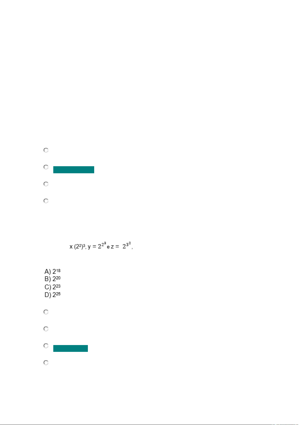 Matemática – Aula 4 – Avaliação 1. A adição de matrizes é feita de maneira muito parecida com a adição de números. Considere a situação em que o imposto anual sobre rendimentos da Empresa Alfa (em milhões) é composto de R$ 175 milhões de imposto corporativo, R$ 35 milhões de imposto sobre a renda e R$ 17 milhões em imposto sobre as vendas. Esses dados estão na matriz de impostos sobre os rendimentos da Empresa Alfa T1 = [175 35 17], já a Empresa Beta tem a seguinte matriz de impostos T2 = [190 41 22]. Sendo assim, a matriz de impostos das duas empresas juntas é: T = [182,5 38 19,5] T = [365 76 39] T = [265 70 30] T = [15 6 5] 2. Sendo o valor de xyz é: Alternativa A Alternativa B Alternativa C Alternativa D 3. Um número é expresso por (26:24) +22. Outra forma de expressar esse número é: A) 23 B) 24 C) 20 D) 25 Alternativa A Alternativa B Alternativa C Alternativa D 4. Analise a matriz a seguir: A soma dos termos α22 e α32 é igual a: -1 -2 0 2 5. A temperatura corporal de um paciente foi medida, em graus Celsius, três vezes ao dia (de manhã, de tarde e de noite), durante cinco dias. Cada elemento aij da matriz abaixo corresponde à temperatura observada no instante i do dia j. Julgue as afirmativas a seguir: I – No momento a21, o paciente estava com a temperatura de 36,1. II – As temperaturas do momento a33 e do momento a21 são iguais. III – No momento a35, a temperatura era de 39,2. A ordem correta é: V, V, V V, F, V F, V, V F, F, V image3.png image4.png image5.wmf image6.png image1.wmf image2.png
