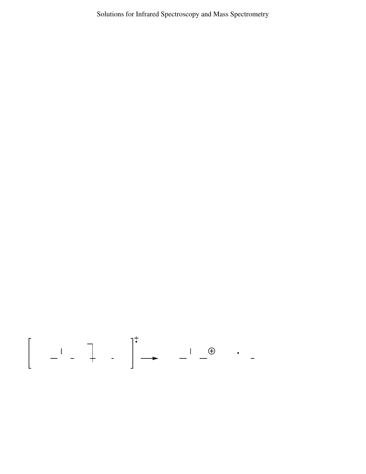 Solutions for Infrared Spectroscopy and Mass Spectrometry 6 continued (b) The strong absorption at 1691 cm–1 is unmistakably a conjugated C=O. The smaller peak at 1626 cm–1 indicates a C=C, probably conjugated with the C=O. The two peaks at 2712 cm–1 and at 2814 cm–1 represent H—C=O confirming that this is an aldehyde. Unsaturated =C—H above 3000 cm–1 ; saturated C—H below 3000 cm–1 . (c) The strong peak at 1650 cm–1 is C=C, probably conjugated with C=O as it is unusually strong. The 1703 cm–1 peak appears to be a conjugated C=O, undeniably a carboxylic acid because of the strong, broad O—H absorption from 2400-3400 cm–1 . The unsaturated =C—H is obscured by the strong O—H; saturated C—H below 3000 cm–1 . (d) The C=O absorption at 1742 cm–1 coupled with C—O at 1220 cm–1 suggest an ester but 1742 cm–1 is too high to be conjugated. The small peak at 1604 cm–1 , peaks above 3000 cm–1, and peaks in the 600-800 cm–1 region indicate a benzene ring. It has both unsaturated C—H above 3000 cm–1 and saturated C—H below 3000 cm–1 . (a) The M and M+2 peaks of equal intensity identify the presence of bromine. The mass of M (156) minus the weight of the lighter isotope of bromine (79) gives the mass of the rest of the molecule: 156 − 79 = 77. The C6H5 (phenyl) group weighs 77; this compound is bromobenzene, C6H5Br . (b) The m/z 127 peak shows that iodine is present. The molecular ion minus iodine gives the remainder of the molecule: 156 − 127 = 29 . The C2H5 (ethyl) group weighs 29; this compound is iodoethane, C2H5I . (c) The M and M+2 peaks have relative intensities of about 3:1, a sure sign of chlorine. The mass of M minus the mass of the lighter isotope of chlorine gives the mass of the remainder of the molecule: 90 − 35 = 55. A fragment of mass 55 is not one of the common alkyl groups (15, 29, 43, 57, etc., increasing in increments of 14 mass units (CH2)), so the presence of unsaturation and/or an atom like oxygen must be considered. In addition to the chlorine atom, mass 55 could be C4H7 or C3H3O. Possible molecular formulas are C4H7Cl or C3H3ClO. (d) The odd-mass molecular ion indicates the presence of an odd number of nitrogen atoms (always begin by assuming one nitrogen). The rest of the molecule must be: 115 − 14 = 101; this is most likely C7H17. C7H17N is the correct formula of a molecule with no elements of unsaturation. The seven carbons probably include alkyl groups like ethyl or propyl or isopropyl. A hint about spectra with odd-mass molecular ions: Look for fragment peaks with even masses to confirm that the odd-mass peak is the parent and not just a fragment from an invisible molecular ion. 7 mass 29 radicals not detected m/z 57 + 57 CH3 CH CH3 CH2 CH2 CH3 CH2 CH3CH CH2 CH3 CH3 8 Recall that radicals are not detected in mass spectrometry; only positively charged ions are detected. The fragment giving m/z 57 is a primary carbocation, less stable than the more abundant secondary carbocations of m/z 43 and 71. 276