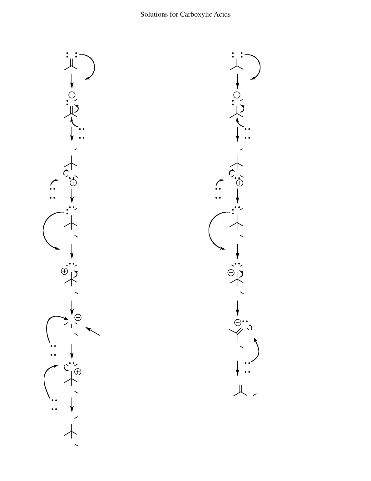 Solutions for Carboxylic Acids Ph H O H+ Ph H O H HOCH3 Ph H O H O CH3H HOCH3 Ph H O H O CH3 H+ Ph H O H O CH3 H Ph C H O CH3 HOCH3 Ph H O CH3 O CH3 H HOCH3 Ph H O CH3 O CH3 HOCH3 H+ Ph OH O Ph OH O H OPh O CH3 H Ph OH O H O CH2H Ph OH O H O CH3 Ph OH O H O CH3 H H+ Ph O CH3 O HOCH3 HOCH3 13 For the sake of space in this problem, resonance forms will not be drawn, but remember that they are critical! The generic acid HA is represented here by just H+. plus resonance forms – H2O plus resonance forms plus resonance forms – H2O plus resonance forms HERE'S THE DIFFERENCE! CANNOT LOSE H+ TO MAKE CARBONYL CAN LOSE H+ TO MAKE CARBONYL 489