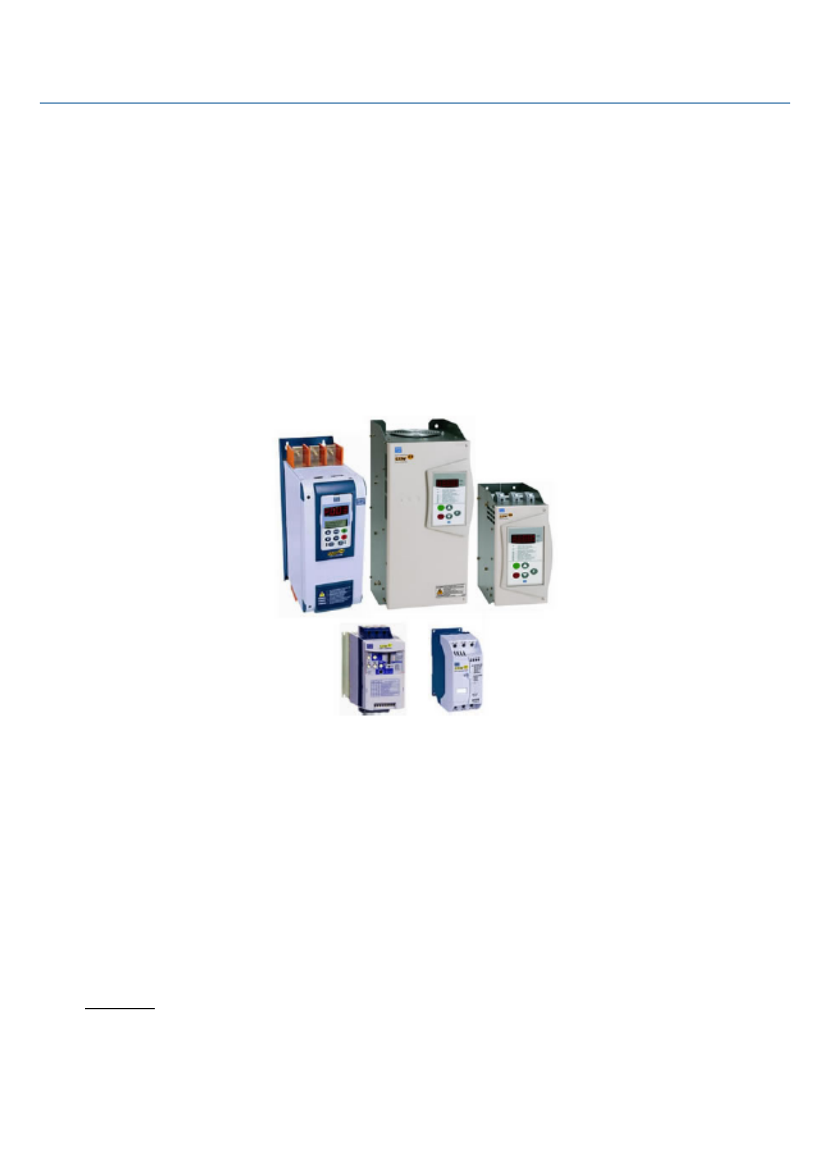 Conteúdo gerado pelo EAD https://app.nmceduc.com.br 13. SOFT-STARTER É um dispositivo eletrônico (fig. 11) composto de pontes tiristorizadas (SCRs na configuração antiparalelo acionadas por uma placa eletrônica, a fim de controlar a corrente de partida de motores de corrente alternada trifásicos. Seu uso é comum em bombas centrífugas, ventiladores, e motores de elevada potência cuja aplicação não exija a variação de velocidade. Fig. 11 – Soft-starters comerciais A soft-stater controla a tensão sobre o motor através do circuito de potência, constituido por seis SCRs, variando o ângulo de disparo dos mesmos e consequentemente variando a tensão eficaz aplicada ao motor. Assim, pode-se controlar a corrente de partida do motor, proporcionando uma "partida suave" (soft start em inglês), de forma a não provocar quedas de tensão elétrica bruscas na rede de alimentação, como ocorre em partidas diretas (veja figura 12). Costumam funcionar com a tecnologia chamada Conteúdo gerado pelo EAD https://app.nmceduc.com.br by-pass, a qual, após o motor partir e receber toda a tensão da rede, liga-se um contator que substitui os módulos de tiristores, evitando sobreaquecimento dos mesmos. Fig. 12 – Comparativo entre métodos de partida Aplicações Bombas Centrífugas, Alternativas (Saneamento / Irrigação / Petróleo), Ventiladores, Exaustores, Sopradores, Compressores de Ar, Refrigeração (Parafuso / Pistão), Misturadores, Aeradores, Centrífugas, Britadores, Moedores, Picadores de Madeira, Refinadores de Papel, Fornos Rotativos, Serras e Plainas (Madeira), Moinhos (Bolas / Martelo), Transportadores de Carga. Parametrização básica (Soft-starter) Vamos abordar os seguintes tópicos : Conteúdo gerado pelo EAD https://app.nmceduc.com.br O uso da I.H.M; Tipos de parâmetros; Principais parâmetros; Exemplos de parametrização; Uso da I.H.M - 3P - A IHM-3P é uma interface simples que permite a operação e a programação da soft starter . - Display de LED´s - Indicação de estado de operação; - Indicação dos erros; - Visualização e alteração de parâmetros; - Operação da soft starter (liga/desliga). Conteúdo gerado pelo EAD https://app.nmceduc.com.br - Possibilidade de instalação remota. Função das teclas Aciona o motor via rampa Desaciona o motor via rampa (quando programado); Reseta a soft-starter após ocorrência de erros Incrementa o número do parâmetro ou seu conteúdo Decrementa o número do parâmetro ou seu conteúdo Comuta o display entre o número do parâmetro e o seu conteúdo Descrição dos Parâmetros Para facilitar a descrição dos parâmetros, estes foram agrupados por características e funções, como a seguir: Parâmetros de leitura - P71...P77,P82, P96...P99 Parâmetros de regulação - P00...P15,P22...P42,P45,P47 Parâmetros de configuração - P43,P44,P46,P51...P57,P61,P62 Parâmetro do motor - P21, P25, P26 e P27 Conteúdo gerado pelo EAD https://app.nmceduc.com.br Tipos de parâmetros Parâmetros de Leitura: São variáveis que podem ser visualizadas no display. Mas não podem ser alterados pelo usuário. Parâmetros de Regulação: São os valores ajustáveis à serem utilizados pelas funções da soft starter. Parâmetros de Configuração: Definem as características da soft stater, as funções à serem executadas, bem como as funções das entradas/saídas. Parâmetro do Motor: Define a corrente nominal do motor; Para ajuste das proteções. P71 - Versão de Software(Parâmetro de leitura) Indica a versão de software contida CPU (circuito integrado D1 CCS 1.1X) P73 - Corrente do motor(Parâmetro de leitura) Indica a corrente de saída da soft-starter diretamente em Ampéres (A). Valores possíveis - 0 ... 9999 A P76 - Cos ∅ (Parâmetro de leitura) Indica o cos ∅ da carga. Valores possíveis - 0.00 ... 0.99 P77 - Tensão de Saída(Parâmetro de leitura) Indica a tensão imposta pela soft-starter sobre a carga (desconsidera a FCEM). Valores possíveis - 0 ... 100 % UN P01 - Tensão Inicial(Parâmetro de regulação) Ajusta o valor inicial de tensão (% UN) que será aplicado ao motor para a execução da rampa de partida. Conteúdo gerado pelo EAD https://app.nmceduc.com.br Padrão de fábrica ⇒ 30 % P02 - Tempo da Rampa de Aceleração(Parâmetro de regulação) Define o tempo da rampa de tensão a ser aplicada na partida do motor, desde que a soft starter não entre limitação de corrente. Padrão de fábrica ⇒ 20 s Rampa de Tensão Conteúdo gerado pelo EAD https://app.nmceduc.com.br P01 - tensão inicial (%UN) P02 - tempo de rampa (s) P03 - Degrau de Tensão(Parâmetro de regulação) Ajusta o valor da tensão (%UN) que será aplicada imediatamente após a soft starter receber o comando de parada por rampa. Padrão de fábrica ⇒ 100% P04 - Rampa de Desaceleração(Parâmetro de regulação) Define o tempo da rampa decrescente de tensão que será aplicada ao motor. Conteúdo gerado pelo EAD https://app.nmceduc.com.br Padrão de fábrica ⇒ OFF Parada com Rampa de Tensão P03 - degrau de tensão (%UN) P04 - tempo de rampa (s) P11 - Limitação de corrente(Parâmetro de regulação) Ajusta o valor máximo de corrente fornecida pelo conjunto rede + soft starter para o motor (carga) durante a aceleração. Conteúdo gerado pelo EAD https://app.nmceduc.com.br Padrão de fábrica ⇒ OFF Se a tensão total não for atingida ao final da rampa de tensão, será indicado no display E02 e os tiristores serão bloqueados. P33 - Nível de Tensão do Jog(Parâmetro de regulação) Define o valor de tensão aplicada ao motor enquanto a DI4 estiver em 24 VCC (Após realizada a rampa). Padrão de fábrica ⇒ 25% P34 - Tempo da Frenagem C.C.( Parâmetro de regulação) Ajusta o tempo da frenagem C.C., desde que P53 = 3. Conteúdo gerado pelo EAD https://app.nmceduc.com.br Padrão de fábrica ⇒ 1 s P35 - Nível de Tensão de Frenagem C.C.( Parâmetro de regulação) Ajusta o valor da tensão de linha VAC convertido e