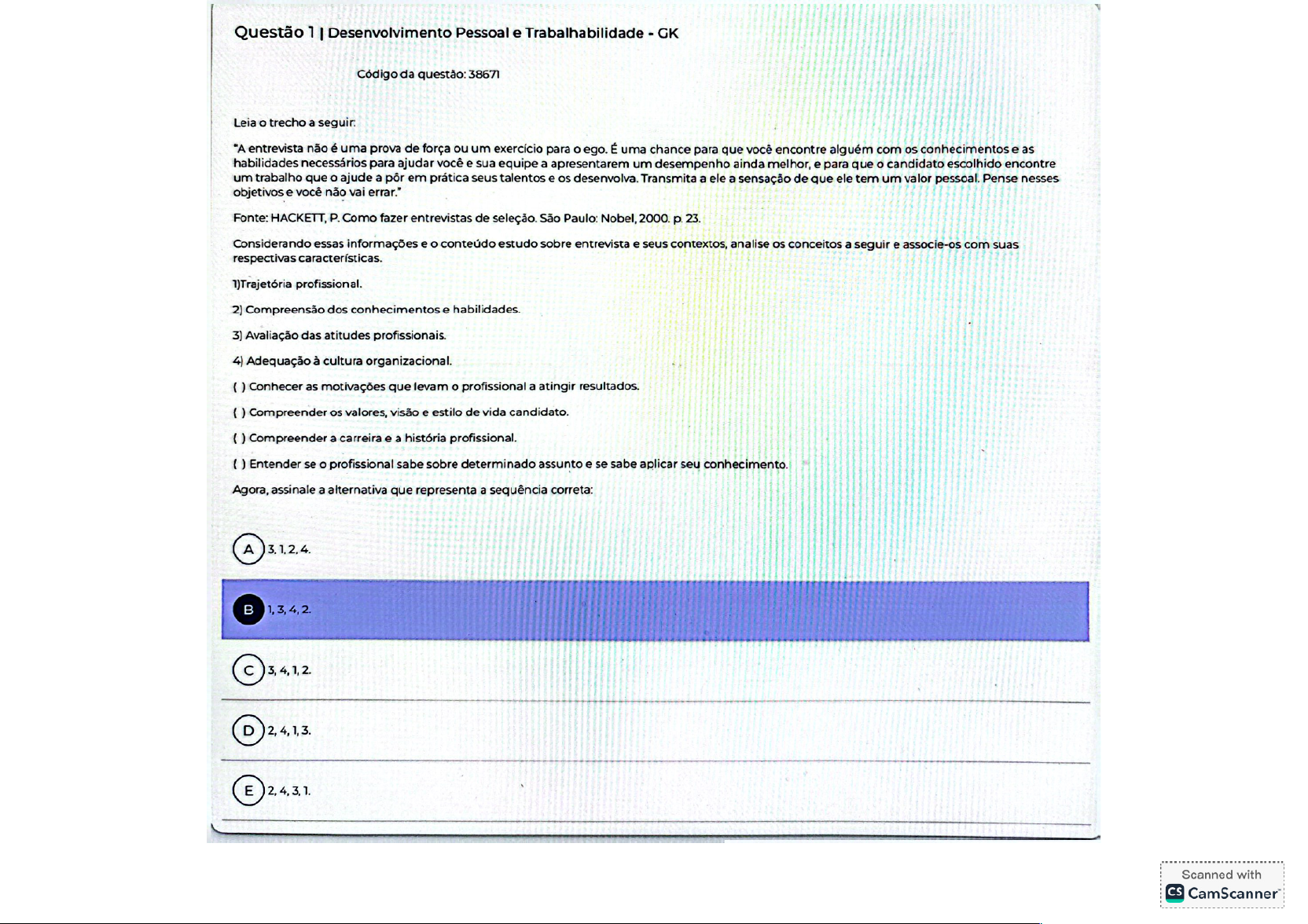 Questão 1 | Desenvolvimento Pessoal e Trabalhabilidade - GK