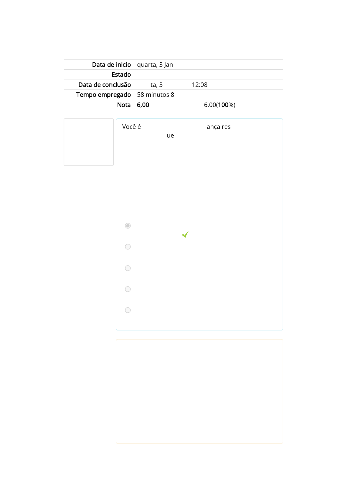 Questão 1 Correto Atingiu 0,60 de 0,60 Prevenção de Acidentes e Controle de Riscos em Máquinas e Equipamentos I C.A. ► AVALIAÇÃO ► PROVA Data de inicio quarta, 3 Jan 2024, 11:10 Estado Finalizada Data de conclusão quarta, 3 Jan 2024, 12:08 Tempo empregado 58 minutos 8 segundos Nota 6,00 de um máximo de 6,00(100%) Você é o engenheiro de segurança responsável por uma obra que está sendo realizada no Hospital Universitário. A obra refere-se à ampliação dos leitos para tratamento da Covid-19 e, durante o pico máximo da obra, atuarão 56 funcionários. Considerando o estabelecido na NR- 18, marque a alternativa que contém a quantidade necessária de chuveiros, mictórios e vasos sanitários para esta obra. Escolha uma: a. Deverá ter 6 chuveiros, 3 mictórios e 3 vasos sanitários. b. Deverá ter 8 chuveiros, 6 mictórios e 4 vasos sanitários. c. Deverá ter 6 chuveiros, 6 mictórios e 6 vasos sanitários. d. Deverá ter 3 chuveiros, 3 mictórios e 5 vasos sanitários. e. Deverá ter 2 chuveiros, 4 mictórios e 5 vasos sanitários. Sua resposta está correta. Resposta correta letra A: conforme item 18.4.2.4. A instalação sanitária deve ser constituída de lavatório, vaso sanitário e mictório, na proporção de 1 (um) conjunto para cada grupo de 20 (vinte) trabalhadores ou fração, bem como de chuveiro, na proporção de 1 (uma) unidade para cada grupo de 10 (dez) trabalhadores ou fração. A resposta correta é: Deverá ter 6 chuveiros, 3 mictórios e 3 vasos sanitários.. https://moodle.unicesumarpulse.com.br/course/view.php?id=1144 https://moodle.unicesumarpulse.com.br/course/view.php?id=1144 https://moodle.unicesumarpulse.com.br/mod/quiz/view.php?id=25160 Questão 2 Correto Atingiu 0,60 de 0,60 A indústria da construção civil agrega diversas atividades que têm como objetivo a transformação do ambiente natural com vistas ao aprimoramento da qualidade de vida do ser humano. Apesar das grandes contribuições à economia do país, há um índice lamentável que está presente nesse setor: o elevado número de acidentes e doenças do trabalho decorrentes das atividades da construção. Em se tratando de segurança e saúde do trabalhador, diferente de outros setores, a indústria da construção civil apresenta uma série de particularidades que precisam ser observadas, dentre elas: alta rotatividade e baixa capacitação da mão de obra, uso extensivo de mão de obra terceirizada, métodos arcaicos de trabalho (que não necessariamente visam à segurança do trabalhador), mudança da natureza do serviço de acordo com a etapa da obra e falta de tradição na elaboração de projetos de segurança. Conforme as estatísticas a construção civil e a maior gerador de acidentes. Sobre acidente fatal ocorrido na Construção Civil, conforme o disposto na NR-18, é correto afirmar que: Escolha uma: a. Deve ser comunicado, no prazo de até 24 horas, à autoridade policial competente e ao órgão regional do Ministério do Trabalho. b. O local do acidente deve ser isolado e poderá ser liberado pela autoridade policial competente, após comprovação de análise do acidente realizada pelo empregador. c. O local não deverá ser isolado, para permitir a entrada da autoridade policial competente e do representante do órgão regional do Ministério do Trabalho. d. Deve ser feita a comunicação do acidente ao Ministério Público do Trabalho. e. O local poderá ser liberado após a investigação pelo órgão regional competente do Ministério do Trabalho, que ocorrerá em um prazo máximo de 72 (setenta e duas) horas, contado do protocolo de recebimento da comunicação escrita ao referido órgão. Sua resposta está correta. Questão 3 Correto Atingiu 0,60 de 0,60 Resposta correta e letra E: conforme item 18.31.1.1 A liberação do local poderá ser concedida após a investigação pelo órgão regional competente do Ministério do Trabalho, que ocorrerá num prazo máximo de 72 (setenta e duas) horas, contado do protocolo de recebimento da comunicação escrita ao referido órgão, podendo, após esse prazo, serem suspensas as medidas referidas na alínea "b" do subitem 18.31.1. A resposta correta é: O local poderá ser liberado após a investigação pelo órgão regional competente do Ministério do Trabalho, que ocorrerá em um prazo máximo de 72 (setenta e duas) horas, contado do protocolo de recebimento da comunicação escrita ao referido órgão.. De acordo com a Norma Regulamentadora NR 10 – Segurança em Instalações e Serviços em Eletricidade, o local com potencialidade de ocorrência de atmosfera explosiva chama-se: Escolha uma: a. Área Classificada. b. Zona de Risco. c. Atmosfera Explosiva. d. Área Controlada. e. Zona Quente. Sua resposta está correta. Resposta correta letra A conforme item 10.9.4 Nas instalações elétricas de áreas classificadas ou sujeitas a risco acentuado de incêndio ou explosões, devem ser adotados dispositivos de proteção, como alarme e secciona mento automático para prevenir sobretensões, sobrecorrentes, falhas de isolamento, aquecimentos ou outras condições anormais de operação. A resposta correta é: Área Classificada.. Questão 4 Correto Atingiu 0,60 de 0,60 A Norma Regulamentadora nº 6 (NR-06), conforme classificação estabelecida na Portaria SIT n° 787, de 29 de novembro de 2018, é norma especial, posto que regulamenta conforme Norma regulamentadora Cabe ao empregado quanto ao EPI: Escolha uma: a. Usar, utilizando-o apenas para a finalidade a que se destina. b. Não se responsabilizar-se pela guarda e conservação. c. Comunicar ao colega qualquer alteração que o torne impróprio para uso. d. Cumprir as determinações do empregador sobre o uso inadequado. e. Nenhuma das alternativas. Sua resposta está correta. Resposta: Letra A: a) usar, utilizando-o apenas para a finalidade a que se destina; responsabilizar- se pela guarda e conservação; comunicar ao empregador qualquer alteração que o t