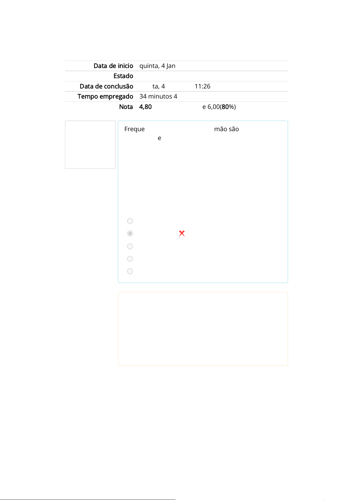 Questão 1 Incorreto Atingiu 0,00 de 0,60 Prevenção de Acidentes e Controle de Riscos em Máquinas e Equipamentos II C.A ► AVALIAÇÃO ► PROVA Data de inicio quinta, 4 Jan 2024, 10:51 Estado Finalizada Data de conclusão quinta, 4 Jan 2024, 11:26 Tempo empregado 34 minutos 42 segundos Nota 4,80 de um máximo de 6,00(80%) Frequentemente, carrinhos de mão são utilizados para puxar e para empurrar cargas. A norma diz que as pegas deles devem ser cilíndricas com diâmetro de 3 centímetros e comprimento de 30 ou mais. Para que a postura do trabalhador mantenha-se correta ao executar a atividade, deve-se também respeitar uma altura que varia em relação ao chão em metros QUE É DE? Escolha uma: a. 0,70 a 1,00. b. 0,80 a 1,10. c. 0,90 a 1,20. d. 1,00 a 1,30. e. 1,10 a 1,40. Sua resposta está incorreta. Para evitar lesões nas pessoas que executam este tipo de atividade é necessário que respeite-se o que determina a LETRA C. A resposta correta é: 0,90 a 1,20.. https://moodle.unicesumarpulse.com.br/course/view.php?id=1125 https://moodle.unicesumarpulse.com.br/course/view.php?id=1125 https://moodle.unicesumarpulse.com.br/mod/quiz/view.php?id=24747 Questão 2 Correto Atingiu 0,60 de 0,60 O arranjo físico pode ser definido como posicionamento dos recursos transformadores de uma empresa. É a organização estrutural das instalações, ou seja, do melhor posicionamento dos recursos, sejam eles equipamentos, pessoas, departamentos, mobiliário, e a forma com que esses itens se relacionam. LEIA com atenção as afirmativas a seguir e IDENTIFIQUE com verdadeira e falsa quanto a arranjo físico. I. Nos locais de instalação de máquinas e equipamentos, as áreas de circulação devem ser devidamente demarcadas em conformidade com as normas técnicas oficiais. II. É permitida a demarcação das áreas de circulação utilizando-se marcos, balizas ou outros meios físicos. III. O piso do local de trabalho onde se instalam máquinas e equipamentos e das áreas de circulação deve ser resistente a cargas a que estão sujeitos e não devem oferecer riscos de acidentes. IV. As ferramentas utilizadas no processo produtivo devem ser organizadas e armazenadas ou dispostas em locais específicos para esta finalidade. Escolha uma: a. I e II são falsas. b. II e III são falsas. c. Apenas a I é verdadeira. d. Todas são verdadeiras. e. Todas são falsas. Sua resposta está correta. Todas as afirmativas dizem respeito a arranjo físico, LETRA D. A resposta correta é: Todas são verdadeiras.. Questão 3 Correto Atingiu 0,60 de 0,60 Questão 4 Correto Atingiu 0,60 de 0,60 Uma construtora decidiu construir o primeiro edifício de uma pequena cidade no interior, para realizar o trabalho 55 funcionários foram contratados. Você é o Engenheiro responsável e deverá determinar quantos vasos sanitários, mictórios e chuveiros serão necessários. Abaixo segue as opções na respectiva ordem citada. RESPONDA corretamente. Escolha uma: a. 8, 5, 10. b. 9, 7, 4. c. 15, 20, 18. d. 3, 3, 6. e. 3, 7, 4. Sua resposta está correta. É respeitada a proporção exposta pela LETRA D. A resposta correta é: 3, 3, 6.. Uma plataforma cremalheira conta com itens obrigatórios para seu funcionamento. ASSINALE a única opção correta quanto a esta afirmação. Escolha uma: a. Cabos de alimentação com isolação simples. b. Freio manual. c. Dispositivos que impeçam o movimento quando abertos os acessos. d. Carga mínima de cem quilogramas força por metro quadrado. e. Aparelho de rádio para comunicação. Sua resposta está correta. De acordo com as regras a única alternativa que está em acordo com o exigido é a LETRA C. A resposta correta é: Dispositivos que impeçam o movimento quando abertos os acessos.. Questão 5 Correto Atingiu 0,60 de 0,60 A lei define que os equipamentos de proteção individual (EPI), são todo meio ou dispositivo de uso pessoal destinado a proteger a incolumidade física do trabalhador durante a atividade laboral. As afirmativas a seguir falarão a respeito deste dispositivo, ANALISE e RESPONDA corretamente. I. Cabe ao setor de Segurança no Trabalho determinar quais equipamentos deverão ser utilizados e onde. II. Serve para reduzir ou eliminar os riscos inerentes às atividades. III. São considerados EPI’s equipamentos como: óculos, protetor auricular, botas, capacetes, luvas, avental, máscaras, etc. IV. Os EPI’s podem ser comercializados pelos funcionários da empresa. Escolha uma: a. Somente as afirmativas I e II são corretas. b. Somente as afirmativas I e IV são corretas. c. Somente as afirmativas III e IV são corretas. d. Somente as afirmativas I, II e III são corretas. e. Somente as afirmativas II, III e IV são corretas. Sua resposta está correta. Dentre as afirmativas da questão, apenas a última está incorreta, pois, não é permitida a comercialização de EPI’s pelos funcionários, LETRA D. A resposta correta é: Somente as afirmativas I, II e III são corretas.. Questão 6 Correto Atingiu 0,60 de 0,60 Os profissionais de segurança do trabalho devem agir preventivamente com objetivo de proporcionar saúde e bem estar às pessoas. Para que isso aconteça corretamente, é necessário ir além de simplesmente fiscalizar, é necessário também tomar outras medidas. Corroborando com essa afirmação ANALISE as questões abaixo. I. Supervisionar, coordenar e orientar serviços da área. II. Implantar técnicas de gerenciamento e controle de risco. III. Realizar treinamentos. IV. Contratar profissionais da produção. QUAL opção é correta quanto à função da segurança no trabalho. Escolha uma: a. Somente a afirmativa I está correta. b. Somente as afirmativas I, II e III estão corretas. c. Somente as afirmativas I, II e IV estão corretas. d. Somente as afirmativas II, III e IV estão corretas. e. Somente as afirmativas I e II estão corretas. Sua resposta está correta. Está certo o que se afirma em I, II, e III. LETRA B. A resposta correta é: Some