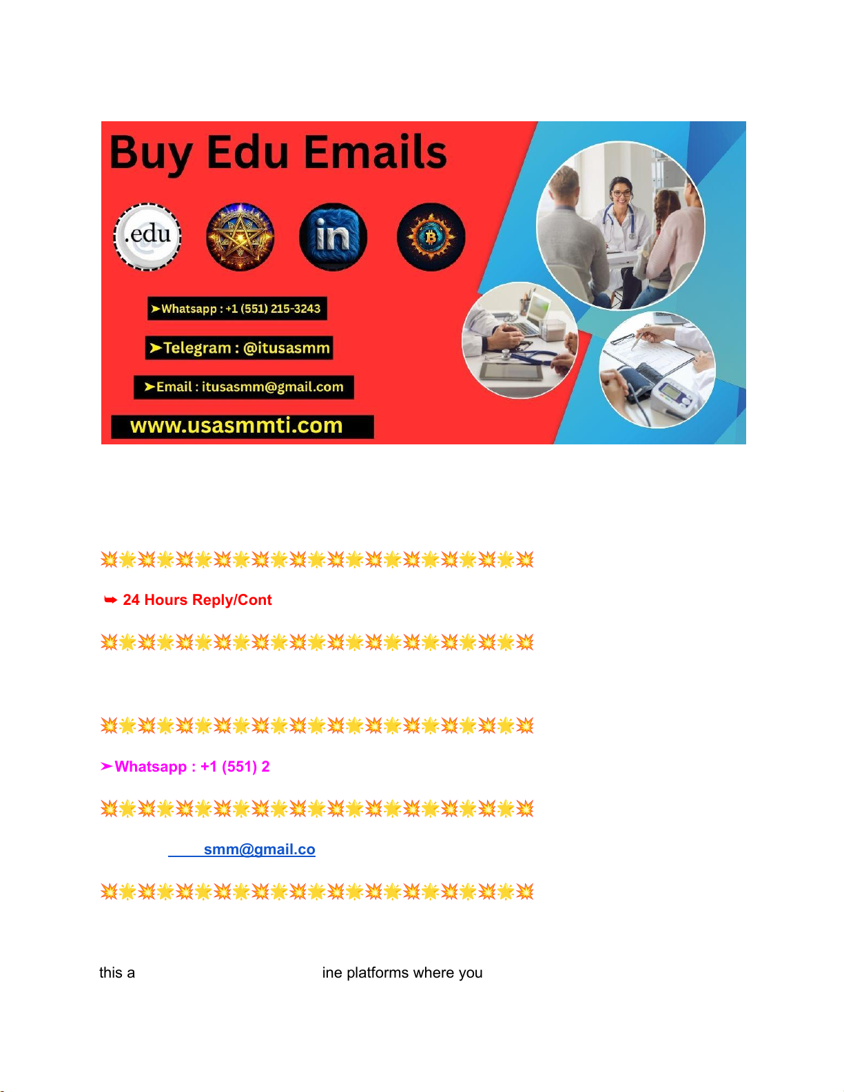 Top 11 Sites to Buy Edu Emails Accounts in 2026 _ PDF Are you a student looking to unlock amazing discounts and exclusive offers? If so, you might want to consider purchasing an edu email address. These special email accounts can open doors to countless deals on software, subscriptions, and more—just for being a student! But where can you find reliable sites that sell these invaluable resources? In 💥🌟💥🌟💥🌟💥🌟💥🌟💥🌟💥🌟💥🌟💥🌟💥🌟💥🌟💥 ➥ 24 Hours Reply/Contact 💥🌟💥🌟💥🌟💥🌟💥🌟💥🌟💥🌟💥🌟💥🌟💥🌟💥🌟💥 ➤Telegram : @itusasmm 💥🌟💥🌟💥🌟💥🌟💥🌟💥🌟💥🌟💥🌟💥🌟💥🌟💥🌟💥 ➤Whatsapp : +1 (551) 215-3243 💥🌟💥🌟💥🌟💥🌟💥🌟💥🌟💥🌟💥🌟💥🌟💥🌟💥🌟💥 ➤Email : itusasmm@gmail.co 💥🌟💥🌟💥🌟💥🌟💥🌟💥🌟💥🌟💥🌟💥🌟💥🌟💥🌟💥 this article, we’ll explore the top nine platforms where you can purchase edu emails specifically designed for snagging those coveted student discounts. Let’s dive into the world of opportunities waiting at your fingertips! Top 9 Sites to Purchase Edu Emails for Student Discounts usasmmti.com When it comes to purchasing edu emails, finding the right site is crucial. Here are nine of the best platforms to consider. First up is usasmmti.com, known for its reliable service and excellent customer support. They provide a seamless experience that many students appreciate. Another great option is. This site offers competitive prices and quick delivery times, making it a popular choice among learners seeking discounts. Next, check out Their straightforward process allows users to acquire edu email addresses effortlessly. has gained traction for its focus on exclusive deals paired with edu email purchases. It’s an enticing combination for savvy shoppers. Don’t overlook —renowned for its user-friendly interface and comprehensive FAQ section to guide first-time buyers through their purchase journey. Buy Edu Emails Addresses | Unlock Student Discounts & Free 💥🌟💥🌟💥🌟💥🌟💥🌟💥🌟💥🌟💥🌟💥🌟💥🌟💥🌟💥 ➥ 24 Hours Reply/Contact 💥🌟💥🌟💥🌟💥🌟💥🌟💥🌟💥🌟💥🌟💥🌟💥🌟💥🌟💥 ➤Telegram : @itusasmm 💥🌟💥🌟💥🌟💥🌟💥🌟💥🌟💥🌟💥🌟💥🌟💥🌟💥🌟💥 ➤Whatsapp : +1 (551) 215-3243 💥🌟💥🌟💥🌟💥🌟💥🌟💥🌟💥🌟💥🌟💥🌟💥🌟💥🌟💥 ➤Email : itusasmm@gmail.co 💥🌟💥🌟💥🌟💥🌟💥🌟💥🌟💥🌟💥🌟💥🌟💥🌟💥🌟💥 Buying edu email addresses opens up a world of opportunities for students. These emails are not just regular accounts; they serve as keys to exclusive discounts and offers tailored specifically for students. With an edu email, you can access premium services at lower rates. Many companies recognize the financial strain that comes with education. They offer significant student discounts on software, tech products, and even subscription services. Imagine getting a hefty discount on your favorite streaming service or software essential for your studies. It's like having a VIP pass to savings! However, it's crucial to purchase these emails from reputable sources. Not all sellers provide genuine accounts, so doing thorough research is vital. The right platform will ensure you get valid credentials while keeping your personal information safe. Unlocking these benefits transforms how students navigate their finances during college years. Saving money has never been more accessible! The Ultimate Guide to Buy Edu Email Account Safely & When considering purchasing an Edu email account, safety should be your top priority. Start by researching reputable sellers and platforms that specialize in providing these accounts. Check for reviews from previous customers to gauge reliability. A trustworthy site will have clear policies regarding privacy and data protection. 💥🌟💥🌟💥🌟💥🌟💥🌟💥🌟💥🌟💥🌟💥🌟💥🌟💥🌟💥 ➥ 24 Hours Reply/Contact 💥🌟💥🌟💥🌟💥🌟💥🌟💥🌟💥🌟💥🌟💥🌟💥🌟💥🌟💥 ➤Telegram : @itusasmm 💥🌟💥🌟💥🌟💥🌟💥🌟💥🌟💥🌟💥🌟💥🌟💥🌟💥🌟💥 ➤Whatsapp : +1 (551) 215-3243 💥🌟💥🌟💥🌟💥🌟💥🌟💥🌟💥🌟💥🌟💥🌟💥🌟💥🌟💥 ➤Email : itusasmm@gmail.co 💥🌟💥🌟💥🌟💥🌟💥🌟💥🌟💥🌟💥🌟💥🌟💥🌟💥🌟💥 �💥🌟💥🌟💥🌟💥🌟💥🌟💥🌟💥🌟💥🌟💥🌟💥🌟💥🌟💥 Always use secure payment methods when making a purchase. This adds a layer of security to your transaction, ensuring your financial information remains safe. Once you receive the Edu email, verify its authenticity before using it for discounts. Many companies conduct checks on educational emails, and using a fake account can lead to repercussions. Maintaining anonymity is also crucial. Avoid sharing personal details unnecessarily while browsing or communicating with sellers online. Stay vigilant against potential scams and phishing attempts throughout this process. How To Write an Email Complaint in 6 Steps (With Example) Navigating the art of email complaints can be straightforward with a clear approach. Start by addressing the recipient properly. Use their name if known, as this adds a personal touch. Next, state your purpose early on. Be concise about what you’re complaining about and why it matters to you. Avoid long-winded explanations; clarity is key. Then, provide any necessary details. Include dates, order numbers, or specific incidents that highlight your issue without overwhelming the reader. Follow up with your expectation for resolution. Whether it's a refund or an apology, being explic