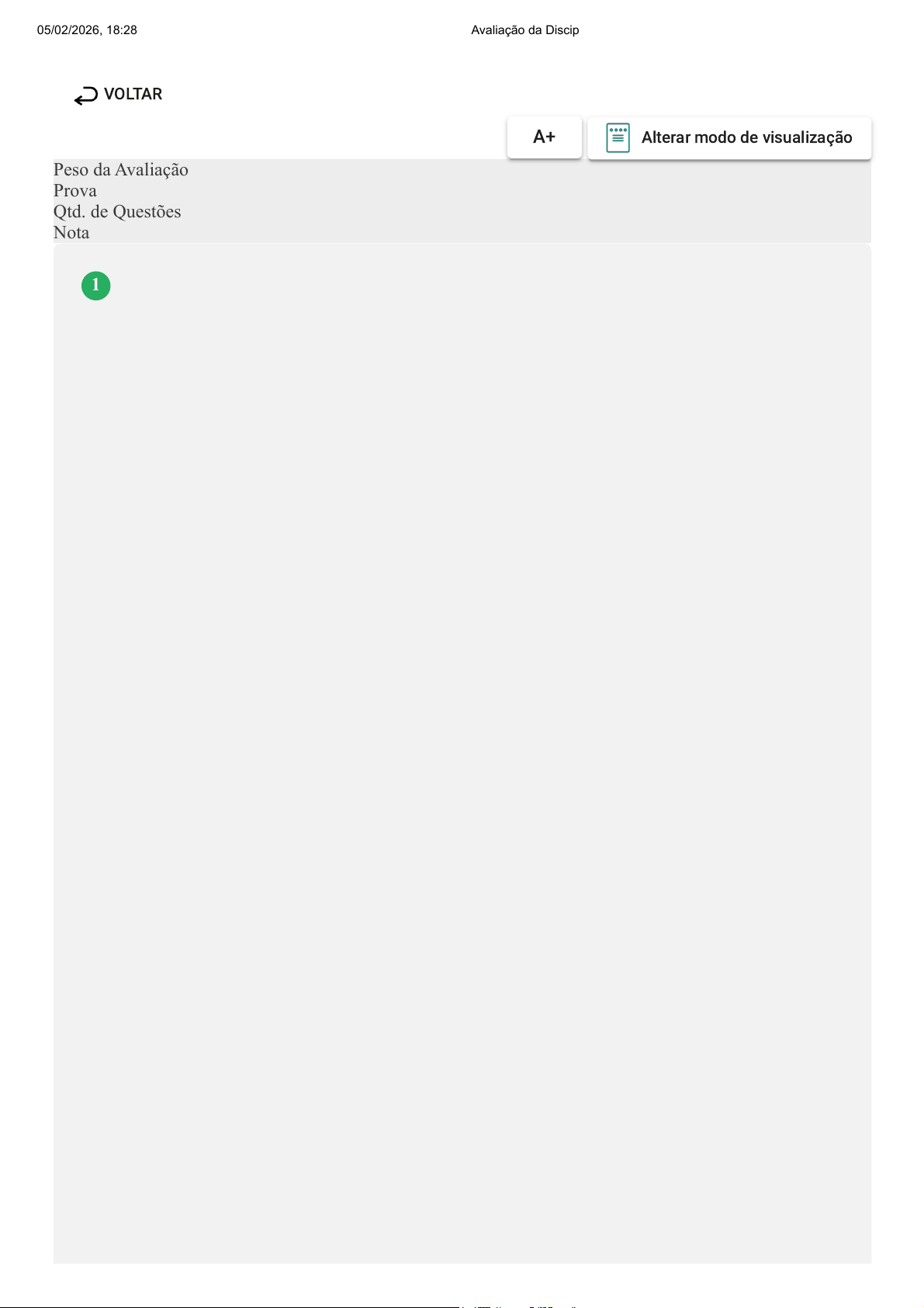 Prova Impressa GABARITO | Avaliação da Disciplina (Cod.:653098) Peso da Avaliação 10,00 Prova 110696519 Qtd. de Questões 20 Nota 9,00 Boruchovitch (1999, p. 363) afirma que é possível utilizar “[...] estratégias de aprendizagem a todos estudantes [...] a todos os alunos a expandir notas de aulas, a sublinhar pontos importantes de um texto, a monitorar a compreensão na hora da leitura, usar técnicas de memorização, fazer resumos, entre outras estratégias. Resultados de pesquisas revelam que o treinamento em estratégias de aprendizagem tem sido bem sucedido de modo geral, pois é capaz de produzir tanto uma melhora imediata no uso das estratégias envolvidas, quanto no rendimento escolar geral dos alunos.” BORUCHOVITCH, E. Estratégias de aprendizagem e desempenho escolar: considerações para a prática educacional. In: Psicol. Reflexão Crítica. [online]. 1999, vol.12, n.2, p. 361-376. Acesso em: 30 jul. 2019. Em relação às orientações teóricas e metodológicas acerca das estratégias de aprendizagem e desempenho escolar, classifique V para as sentenças verdadeiras e F para as falsas. A - Uma das tarefas da escola é oportunizar aos estudantes o acesso aos conteúdos já elaborados pela humanidade, apesar dos estudantes de hoje não darem importância a esses conhecimentos, portanto, são incapazes de se humanizarem. B - Se o estudante ainda não utiliza estratégias necessárias para sua aprendizagem, um dos objetivos do ensino deve ser, portanto, ajudá-lo a adquiri-las. C - Um dos principais objetivos da escola é ajudar o estudante a gerenciar e autorregular sua própria aprendizagem. D - Cabe ao professor implementar estratégias pedagógicas que proporcionem ao estudante o desenvolvimento de habilidades próprias de estudo, facilitando a aquisição de conhecimentos. Agora, assinale a alternativa que apresenta a sequência CORRETA: A V – V – V – V. VOLTAR A+ Alterar modo de visualização 1 05/02/2026, 18:28 Avaliação da Disciplina about:blank 1/21 B F – V – V – F. C F – F – V – F. D F – V – V – V. Diferentemente de outras abordagens, a Teoria Histórico-Cultural tem como um de seus pressupostos que o desenvolvimento da personalidade não é natural, mas histórico e social, ou seja, depende da integração do indivíduo desde os primeiros momentos de vida na sociedade, que é repleta de exigências, expectativas e costumes. Por isso, as regularidades que caracterizam a formação da personalidade desde a infância até a vida adulta são – como são todas as esferas do desenvolvimento da pessoa sob essa mesma óptica –, resultantes do intercâmbio entre as peculiaridades do desenvolvimento psicofisiológico da criança e de seu desenvolvimento cultural (VYGOTSKI, 1931/2013a). É na atividade social que a personalidade se configura (BISSOLI, 2014, p. 589). BISSOLI, M. F. Desenvolvimento da personalidade da criança: o papel da educação infantil. In: Psicologia em Estudo, Maringá, v. 19, n. 4, p. 587-597, out./dez, 2014. Quais alternativas são consoantes com a perspectiva de desenvolvimento da personalidade na infância? Assinale as alternativas CORRETAS: I - Na infância, a criança está ainda alheia. Portanto, não tem como formar uma consciência sobre os objetos e seu conhecimento sobre as relações humanas e, sobretudo, sobre si mesma (a autoconsciência). II - Nos primeiros anos de vida, a criança aprende valores, normas de conduta e capacidades especificamente humanas e torna-se capaz de expressar-se de maneira singular diante do mundo. III - A infância é o período espontâneo do desenvolvimento da formação da personalidade. IV - Na infância se estabelecem os primeiros níveis da formação da personalidade e trazem as marcas do sujeito humano. Assinale a alternativa que apresenta a sequência CORRETA: 2 05/02/2026, 18:28 Avaliação da Disciplina about:blank 2/21 A I – II – III. B I - III – IV. C II – I. – IV. D II – III - IV. “O domínio hierárquico da razão sobre a emoção é observado nos diferentes períodos históricos: na Antiguidade, pela oposição entre conhecimento inteligível (passível de uma abordagem objetiva) e conhecimento sensível (não científico), sendo os sentimentos considerados não passíveis de um conhecimento objetivo pelo seu grau de subjetividade. Na Idade Média, pelo conflito entre razão e fé, com o predomínio desta sobre aquela. Na Modernidade, pelo dualismo cartesiano, embora tenha ocorrido uma crescente valorização do indivíduo como ser pensante, portador de uma consciência individual e de liberdade. Na sequência histórica, entendemos que o ápice do predomínio racionalista ocorreu no final do século XIX, com o Positivismo, de Augusto Comte1, ratificando que o conhecimento só é possível através da razão” (LEITE, 2012, p. 357). LEITE, S. A. S. Afetividade nas práticas pedagógicas. Revista Temas em Psicologia, v. 20, n. 2, p. 355-368, 2012. Assinale as afirmativas CORRETAS: I - O pensamento humano caminhou, ao longo da história, na direção de uma concepção dualista, em que afetividade e cognição passam a ser interpretadas como dimensões distantes e partes de diferentes processos, não sendo mais possível analisá-las conjuntamente. II - Somente no século XX, com o advento de teorias filosóficas, sociológicas e psicológicas centradas nos determinantes culturais, históricos e sociais do processo de constituição humana, criaram-se as bases para uma nova compreensão sobre o próprio homem e, no nosso caso, das relações entre razão e emoção. 3 05/02/2026, 18:28 Avaliação da Disciplina about:blank 3/21 III - Os currículos e programas desenvolvidos, nos diferentes momentos da nossa política educacional, centraram-se no desenvolvimento da dimensão racional cognitiva, através do trabalho pedagógico em sala de aula, em detrimento da dimensão afetiva. IV - Herdamos uma concepção segundo a qual o trabalho educacional e