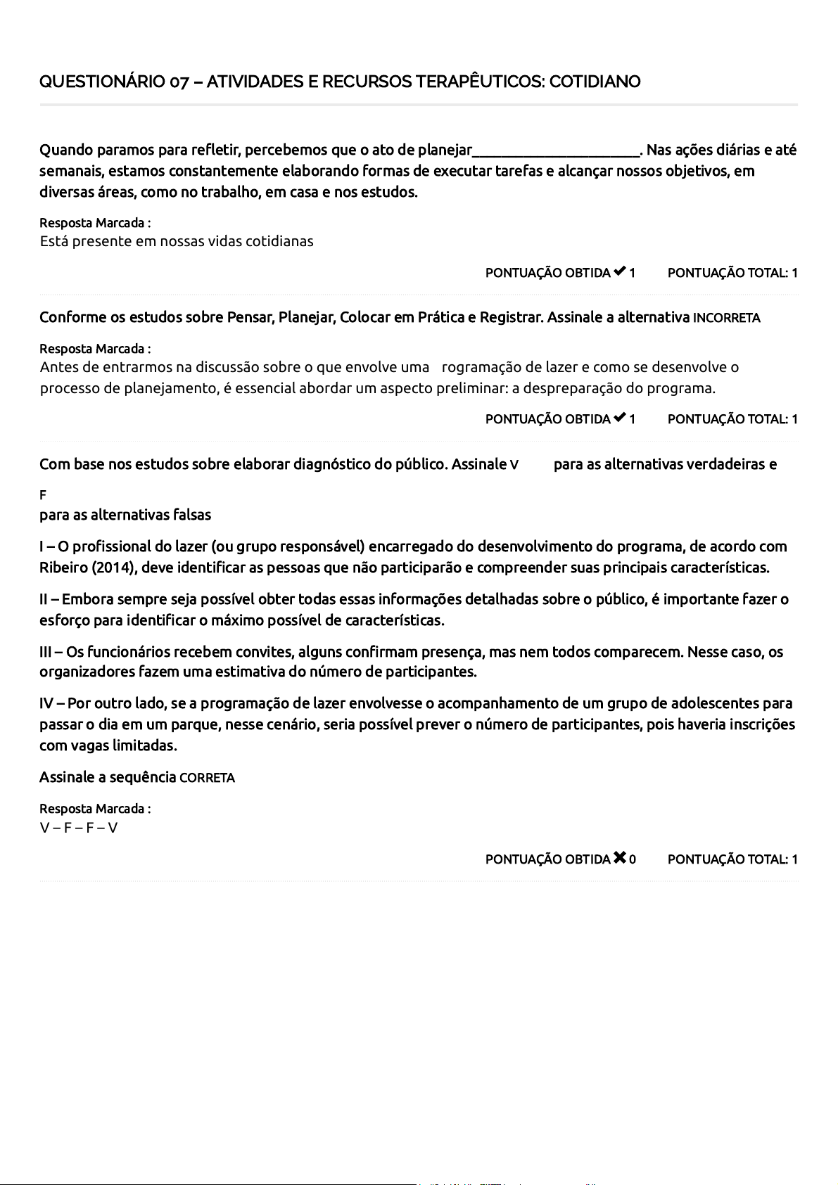 PONTUAÇÃO TOTAL: 1PONTUAÇÃO OBTIDA  1