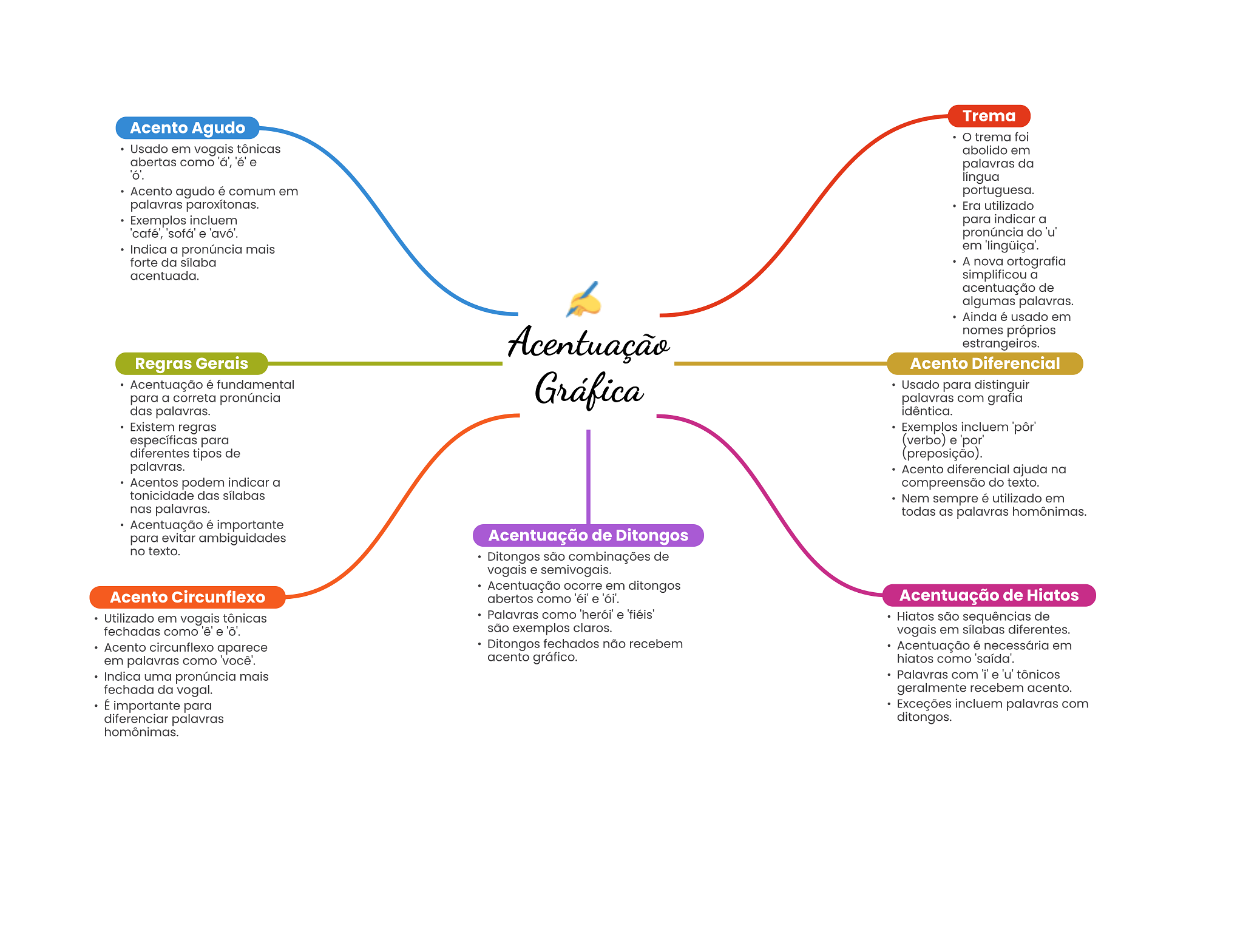 Trema Acento Agudo o trema foi Usado em vogais tônicas abolido em abertas como 'á', 'é' e palavras da língua Acento agudo é comum em portuguesa. palavras paroxítonas. Era utilizado Exemplos incluem para indicar a 'café', 'sofá' e 'avó'. pronúncia do 'u' Indica a pronúncia mais em forte da sílaba A nova ortografia acentuada. simplificou a acentuação de algumas palavras. Ainda é usado em Acentuação nomes próprios estrangeiros. Regras Gerais Acento Diferencial Acentuação é fundamental Gráfica Usado para distinguir para a correta pronúncia palavras com grafia das palavras. idêntica. Existem regras Exemplos incluem 'pôr' específicas para (verbo) e 'por' diferentes tipos de (preposição). palavras. Acento diferencial ajuda na Acentos podem indicar a compreensão do texto. tonicidade das sílabas Nem sempre é utilizado em nas palavras. todas as palavras homônimas. Acentuação é importante para evitar ambiguidades Acentuação de Ditongos no texto. Ditongos são combinações de vogais e semivogais. Acentuação ocorre em ditongos Acento Circunflexo abertos como e 'ói'. Acentuação de Hiatos Utilizado em vogais tônicas Palavras como e 'fiéis' Hiatos são sequências de fechadas como e são exemplos claros. vogais em sílabas diferentes. Acento circunflexo aparece Ditongos fechados não recebem Acentuação é necessária em em palavras como acento gráfico. hiatos como 'saída'. Indica uma pronúncia mais Palavras com e 'u' tônicos fechada da vogal. geralmente recebem acento. É importante para Exceções incluem palavras com diferenciar palavras ditongos. homônimas.