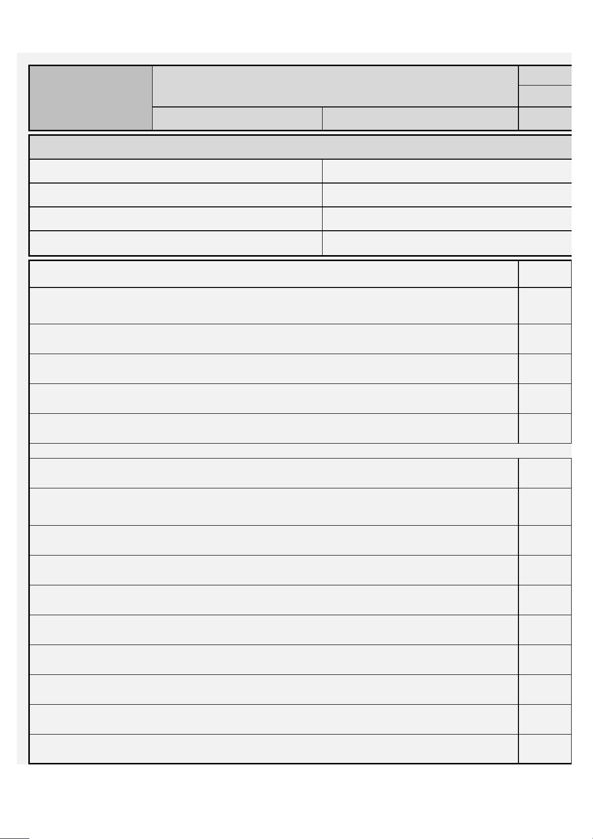 Logo da empresa PERMISSÃO PARA TRABALHO A QUENTE SIM Cód. Vigência: Revisão: QUALQUER OPERAÇÃO TEMPORÁRIA QUE ENVOLVA CHAMAS ABERTAS OU PRODUZA CALOR E/O Tipo de Documento: Área Emissora: Nome do solicitante do trabalho: Esta autorização expira em_____________horas Horário de início do trabalho _______:_______ Localização do serviço: Os meios de combate a incêndio estão em plena condição de funcionamento e posicionados ao alcance dos colaboradores? (Extintores e Hidrantes) Os cilindros de oxigênio e acetileno estão amarrados e protegidos? A conexão das válvulas corta chama e mangueiras estão adequadas? A conexão dos cabos de energia está adequado (sem ferimentos ou fios expostos)? O conjunto de solda ou corte e qualquer outro equipamento encontra‐se em condições adequadas de trabalho? Produtos inflamáveis, pós combustíveis e depósitos oleosos foram removidos? Materiais, produtos ou objetos inflamáveis que não podem ser retirados do ambiente estão protegidos contra o calor por lonas resistentes a fogo ou protetores de metal? Atmosfera explosiva na área foi eliminada? Pisos foram varridos? Todas as aberturas de paredes e piso foram cobertas? Os pisos e paredes combustíveis foram molhados, cobertos com areia úmida ou lonas resistentes a fogo. Abertura nos pisos e paredes estão protegidas? Lonas resistentes a fogo foram estendidas abaixo do trabalho? Os funcionários das adjacências estão devidamente informados sobre a realização do trabalho? A area de trabalho encontra-se isolado e sinalizada? Nome da empresa executante: Data: _______/______/______ Horário de término do trabalho _______:________ Tarefa: Formulário xxxx xxxx x x Lista de verificação ‐ Corte e Solda Precauções em áreas num raio de 11 metros da área onde será o trabalho a Que Trabalhos em equipamentos enclausurados, paredes e/ou tetos SIM Lista de verificação ‐ Pessoas e Equipamentos de Proteção Individual ‐ EPIS SIM Nome do Brigadista / Responsável pela Liberação: Cargo / Função Nome Responsável SESMT pela emissão da PT Obs: NÃO É PERMITIDO QUALQUER TIPO DE TRABALHO A QUENTE OU QUE GERE FAÍSCAS EM PAREDES, TET CONSTRUÇÃO, REVESTIMENTO OU IMPERMEABILIZAÇÃO COMBUSTÍVEL O LOCAL FOI DEVIDAMENTE AVALIADO E AS MEDIDAS PARA PREVENIR OS RISCOS DE INCÊNDIO E ACIDEN FORAM COMPLETAMENTE ADOTADAS, NÃO HAVENDO NADA A SE OPOR QUANTO À LIBERAÇÃO DA ÁREA RESPONSÁVEIS. Assin Assinatura Equipamentos enclausurados estão livres de todos os combustíveis? Recipientes e sistemas de tubulação estão purgados de líquidos/vapores inflamáveis? A construção não é combustível e não possui revestimento ou impermeabilização combustível? Combustível do outro lado de paredes foram removidos? ESPAÇO CONFINADO: Foi realizado a medição de gás no ambiente? ESPAÇO CONFINADO: O ambiente está livre de materiais combustíveis e inflamáveis? O funcionário é treinado e está autorizado a realizar o serviço? Os equipamentos de proteção individual (touca de soldador, luva de raspa de couro, mangote, avental ou blusão de couro, perneira de couro, calçado de proteção com biqueira, protetor auricular, respirador facial) estão adequados? A ventilação existente é sulficiente para remover os gases de solda e fumos metálicos? O observador de incêndio esta presente durante a realização do trabalho a quente? O observador de incêndio esta provido de extintores e quando pratico mangueiras de incêndio? O observador de incêndio possui treinamento de combate e incêndio e primeiros socorros? Todos os colaboradores estão de acordo para a execução dos serviços? NOME RG VISTO NOME RG DECLARO TER RECEBIDO AS DEVIDAS ORIENTAÇÕES PARA A EXECUÇÃO SEGURA DAS ATIVIDADES DE TR DEVENDO CUMPRI‐LAS INTEGRALMENTE. QUANDO HOUVER TROCA DE TURNO, DEVERÁ CONSTAR NO CAMPO ABAIXO O NOME E ASSINATURA DO NOV ACOMPANHARÁ O ANDAMENTO DO RESPECTIVO TRABALHO Nome do Responsável: Cargo: Assinatura: Observador de Incêndio na Área de Trabalho a Quente Elaborado por: Revisado por: Aprovado por: Funcionários que participarão da Tarefa Periodicidade das Rondas Horário Realizado Nome dos responsáveis pelas rondas ____:____Horas após o termino ____:____Horas após o termino ____:____Horas após o termino ____:____Horas após o termino A observação deverá ser pessoal e constante durante a realização dos trabalhos. Após o término do trabalho, esta deve período de 4 horas, contados do término dos trabalhos, incluindo qualquer intervalo para o lanche ou almoço. Segue a identificação dos observadores: Visto Observação: NÃO N/A OU FAÍSCAS xxxx xxxx ente NÃO N/A NÃO N/A TOS OU FORROS COM NTES NO TRABALHO A PELAS PESSOAS natura VISTO RABALHO A QUENTE. VO RESPONSÁVEL QUE erá ser realizada por um baixo os campos para o dos responsáveis