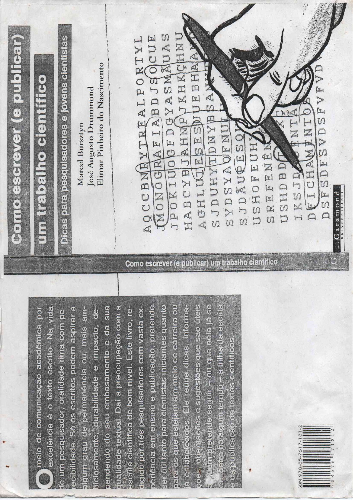 Como escrever (e publicar) meio de comunicação acadêmica por um trabalho científico excelência é o texto escrito. Na vida de um pesquisador, oralidade rima com Dicas para pesquisadores e jovens cientistas recibilidade. Só os escritos podem aspirar a algum grau de permanência ou, mais am- Marcel Bursztyn José Augusto Drummond biciosamente, durabilidade e impacto, de- Elimar Pinheiro do Nascimento pendendo do seu embasamento e da sua textual. Daí a preocupação com a escrita científica de bom nível. Este livro, re- digido por três pesquisadores com vasta ex- em ensino e publicação, pretende ser tanto para cientistas iniciantes quanto Como escrever (e publicar) trabalho científico para os que estejam em meio de carreira ou á Ele dicas, informa- HABCYB JAHNP ções orientações e que são úteis uem pretende seguir ou que nela já se ontra há algum tempo a trilha da escrita e da publicação de textos USHOFEUH SREFENÊN USHDBDT SBN 978-85-7617-181-2 ENTA 788576171812 G Garamond UNIVERSITARIAP ublicar artigos em periódicos é, em quase todas as áreas da ciência, um imperativo profissional tanto para cientistas iniciantes quanto para os que estão em meio de carreira ou já estabelecidos. Isto se deve ao rigor com que artigos são selecionados e à penetração e repercussão que as revistas alcançam COMO ESCREVER (E nos seus respectivos campos de UM TRABALHO CIE saber. Em algumas áreas da ciência, as revistas e os artigos científicos não têm mesmo "prestígio" que livros e coletâneas de textos, mas mesmo nessas áreas a tendência atual é de crescimento da pressão para publicar artigos em revistas científicas. Só os escritos podem aspirar a algum grau de permanência ou, mais ambiciosamente, durabilidade e impacto, dependendo do seu embasamento e da sua qualidade textual.Garamond Marcel Bursztyn LIVRARIA José Augusto Drummond CONSELHO EDITORIAL Elimar Pinheiro do Nascimento Bertha K. Becker Candido Mendes Cristovam Buarque Ignacy Sachs Jurandir Freire Costa Ladislau Dowbor Pierre Salama COMO ESCREVER (E PUBLICAR) UM TRABALHO CIENTÍFICO Dicas para pesquisadores e jovens cientistas LEIA TAMBÉM: Monografia ao alcance de todos Dau Bastos, Mariana Souza e Solange Naecimento Garamond© Copyyright 2010, dos autores SUMÁRIO Direitos cedidos para esta edição à Editora Garamond Ltda. Rua da Estrela, 79, 3° andar Rio Comprido Rio de Janeiro, RJ Brasil Telefax: (21) 2504-9211 E-mail: Introdução 9 1. A revista científica e artigo científico Revisão Dez passos para fazer florescer uma Carmem Cacciacarro "cultura da publicação" (ou breve introdução Capa e Ilustrações à neurose do "publish or perish") 18 João Sánchez As revistas científicas e suas escolhas 23 Características básicas dos artigos científicos 31 Editoração Eletrônica Dez dicas para escrever artigos científicos 36 Luiz Oliveira Dez instruções para tornar o seu artigo publicável em uma boa revista científica 42 Evitar a falácia da construção do CIP-Brasil Catalogação na fonte do Sindicato Nacional dos Editores de Livros espantalho (strawman) 46 Cuidados com artigos direcionados para leitores não brasileiros ou não iniciados 47 Bursztyn, Marcel, 1951- Como escrever (e publicar) um trabalho científico / Marcel Bursztyn, José Traduções 48 Augusto Drummond, Elimar Pinheiro do Nascimento. Rio de Janeiro Garamond, 2010. Autorizações para uso de referências 48 12x21cm Como lidar com os pareceres 49 ISBN 978-85-7617-181-2 Outros tipos de publicação científica 50 1. Redação técnica. 2. Publicações científicas Brasil. 3. Pesquisa - Metodologia. I. Drummond, José Augusto, 1948-. II. Nascimento, Elimar 2. Roteiro para escrever uma resenha crítica Pinheiro do, 1946-. III. Título. Generalidades 53 10-0953. CDD: 808.066 CDU: 808.1 Resenhas: o que são e o que não são 55 roteiro 58 Todos os direitos reservados. A reprodução não-autorizada desta publicação, por qualquer meio, seja total ou parcial, constitui violação da Lei 9.610/98.3. Teses, dissertações, monografias e projetos Dez dicas para planejar e escrever uma tese, dissertação ou monografia 66 Sobre o projeto de pesquisa 70 4. Dicas diversas Sobre uso de figuras, tabelas e quadros 75 Preparando-se para a redação 78 Redigindo os resultados da pesquisa 81 AGRADECIMENTO Sobre o uso de amostras 83 A escolha das fontes de informações 85 uso de ferramentas na pesquisa 87 Sobre a restituição de resultados de pesquisa 89 Sobre autorizações especiais de pesquisa 89 Aos nossos alunos do mestrado e do dou- Sobre notas de rodapé 90 torado do Centro de Desenvolvimento Sobre os boxes de texto 91 Sustentável (CDS) da Universidade de Sobre a temporalidade 91 Brasília, que nos estimularam a escrever Sobre o risco de usar sites do tipo Wikipédia 92 este livro. Agradecemos especialmente a Sobre o abstract 92 Maria Beatriz Maury, que reviu com olhos de lince a última versão dos originais. A 5. Vícios de expressão e de escrita responsabilidade pelas falhas é, no entan- 6. Falhas a serem evitadas to, toda nossa. Apêndice 1 Estrutura IMRAD ou IMRAC 105 Apêndice 2 Ficha de leitura 107 Apêndice 3 Pleonasmos a evitar 109 Sobre os autores 111INTRODUÇÃO Qual a nossa motivação para escrever e publicar este livro? Partimos do pressuposto de que o meio de comunicação por excelência do campo cientí- fico e acadêmico é o texto escrito. Boas aulas são muito importantes para a transmissão do conheci- mento. Intervenções orais oportunas e fundamen- tadas enriquecem cursos, workshops, treinamentos, defesas de teses, congressos e reuniões. No entan- to, pensamos que na vida científica e acadêmica, oralidade rima com perecibilidade. São escritos que podem aspirar a algum grau de durabilidade ou, mais ambiciosamente, permanência e impacto, dependendo do seu embasamento (teórico, meto- dológico, empírico) e da sua qualidade textual. Daí vem a nossa preocupação com a qualidade da escri- ta cientí