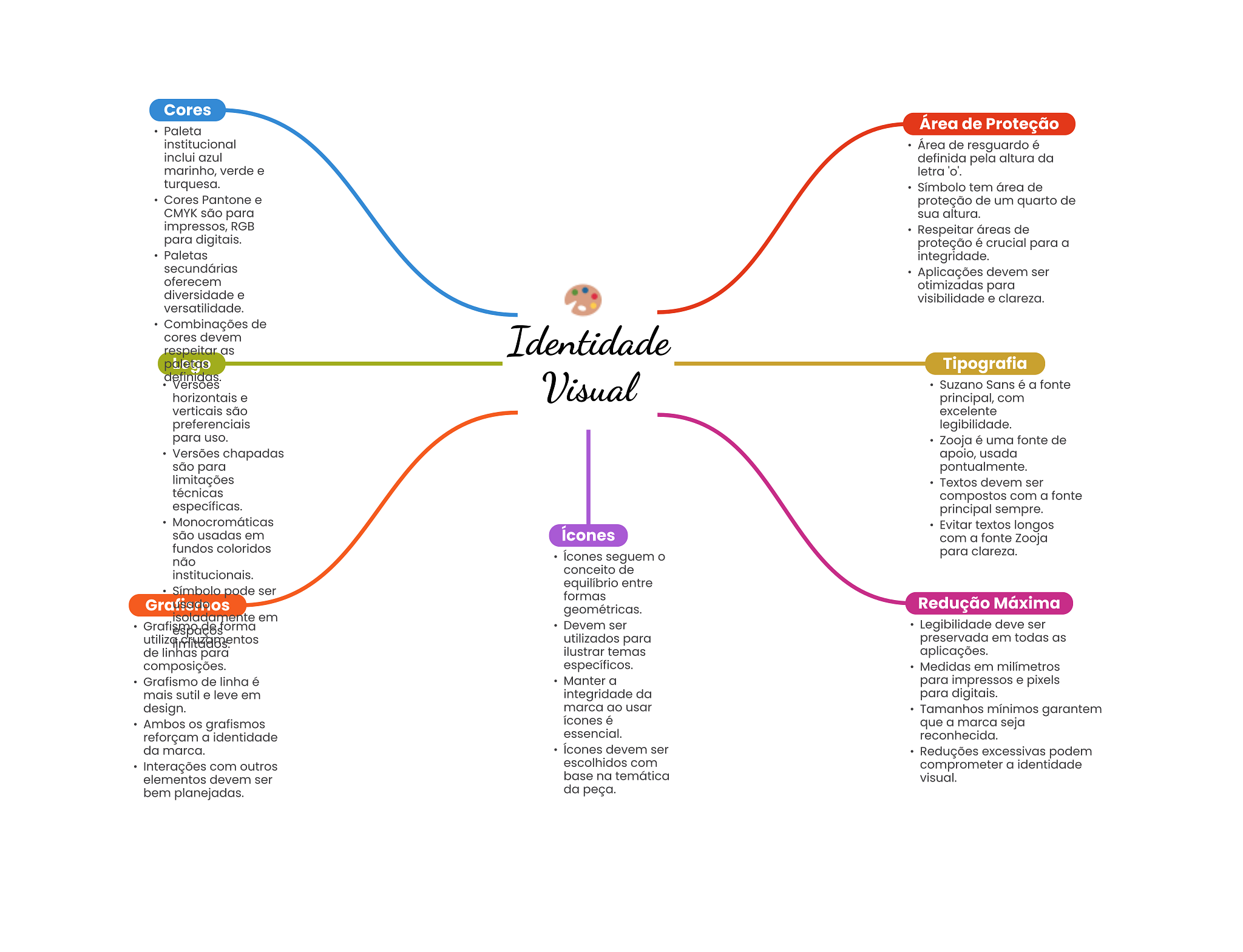 Cores Paleta Área de Proteção institucional Área de resguardo é inclui azul definida pela altura da marinho, verde e letra 'o'. turquesa. Símbolo tem área de Cores Pantone e proteção de um quarto de CMYK são para sua altura. impressos, RGB Respeitar áreas de para digitais. proteção é crucial para a Paletas integridade. secundárias Aplicações devem ser oferecem otimizadas para diversidade e visibilidade e clareza. versatilidade. Combinações de cores devem respeitar as Identidade paletas Tipografia definidas. Versões horizontais e Visual Suzano Sans é a fonte principal, com verticais são excelente preferenciais legibilidade. para uso. Zooja é uma fonte de Versões chapadas apoio, usada são para pontualmente. limitações Textos devem ser técnicas compostos com a fonte específicas. principal sempre. Monocromáticas Evitar textos longos são usadas em Icones com a fonte Zooja fundos coloridos não seguem para clareza. institucionais. conceito de equilíbrio entre Símbolo pode ser formas geométricas. Redução Máxima isoladamente em Devem ser Legibilidade deve ser utiliza cruzamentos utilizados para preservada em todas as de linhas para ilustrar temas aplicações. composições. específicos. Medidas em milímetros Grafismo de linha é Manter a para impressos e pixels mais sutil e leve em integridade da para digitais. design. marca ao usar Tamanhos mínimos garantem Ambos grafismos ícones é que a marca seja reforçam a identidade essencial. reconhecida. da marca. Ícones devem ser Reduções excessivas podem Interações com outros escolhidos com comprometer a identidade elementos devem ser base na temática visual. bem planejadas. da peça.