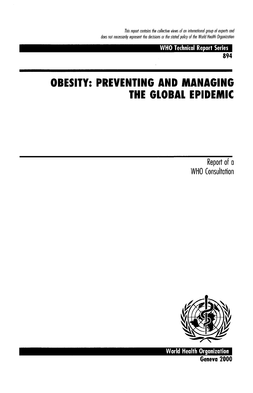 Obesity : preventing and managing the global epidemic : report of a WHO consultation.