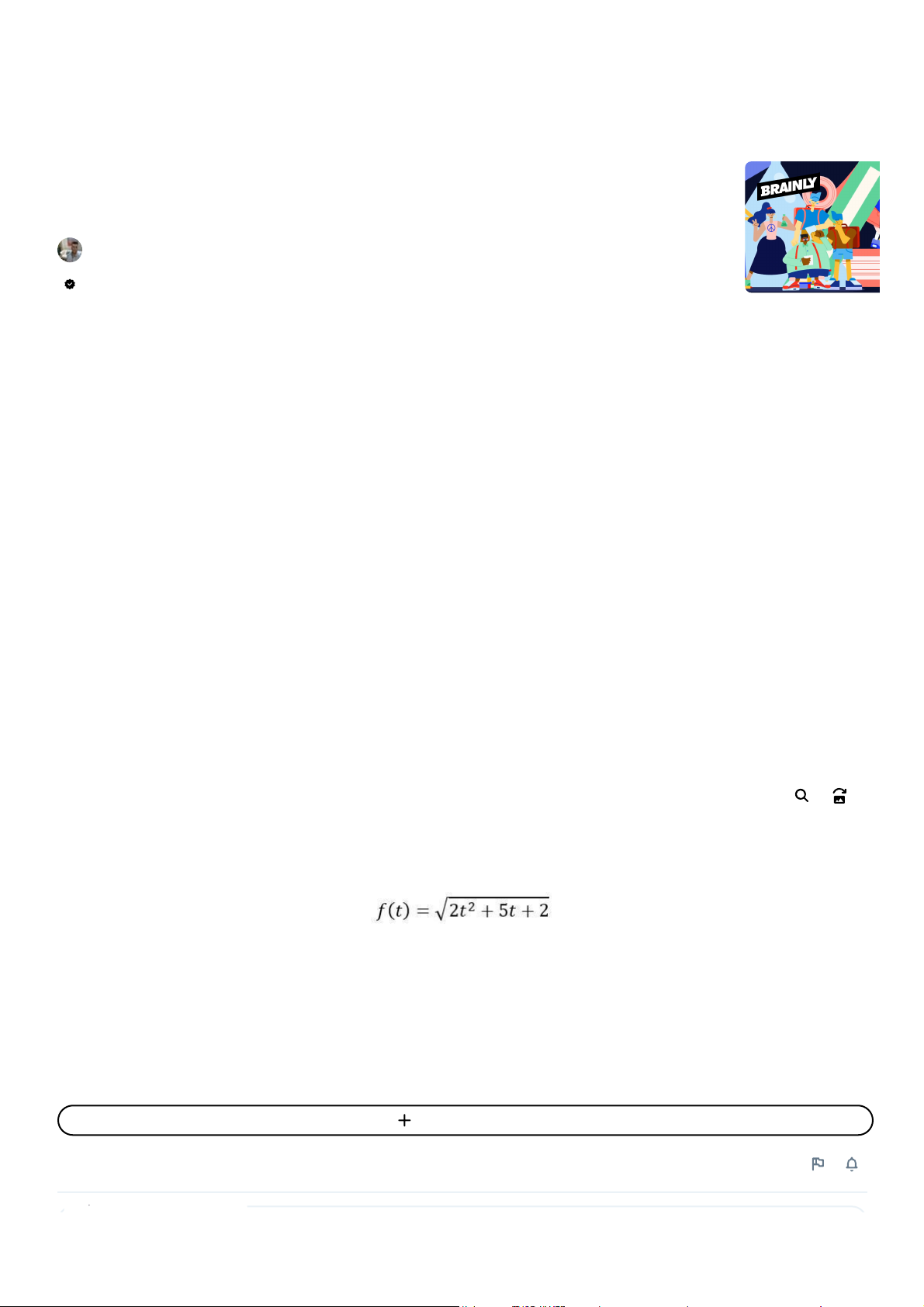 20/08/2023, 16:15 Se temos uma composição de funções e queremos encontrar a sua derivada, é necessário empregarmos a uma - brainly.com.br https://brainly.com.br/tarefa/56759233?referrer=searchResults 1/5 Se temos uma composição de funções e queremos encontrar a sua derivada, é necessário empregarmos a uma regra específica denominada de regra da cadeia. Para a aplicação dessa regra deve-se atentar a composição, identificando quais as funções envolvidas. Considere a função Assinale a alternativa que contém o valor da derivada da função no ponto t = 1. Alternativas: a) 1. b) 1,5. c) 2. d) 3. e) 4. jmcabraltrainotti há 3 semana • Matemática • Ensino superior respondido • verificado por especialistas 1 VER A RESPOSTA RESPONDER +5 PTS Entrar para comentar Garanta até 70% OFF no plano anual! Assine já Anúncio Melhore suas notas com 70% OFF no plano anual GARANTA JÁ SEU DESCONTO Seu desconto especial https://brainly.com.br/materia/matematica https://brainly.com.br/materia/matematica/ensino_superior https://brainly.com.br/login 20/08/2023, 16:15 Se temos uma composição de funções e queremos encontrar a sua derivada, é necessário empregarmos a uma - brainly.com.br https://brainly.com.br/tarefa/56759233?referrer=searchResults 2/5 jmcabraltrainotti precisa da sua ajuda. Adicione sua resposta e ganhe pontos. RESPONDER 5 PTS Resposta verificada por especialistas Esta resposta ainda não tem avaliações — que tal deixar uma estrelinha? 😎 A derivada da função f(t) no ponto t=1 é 4,5. Derivada no ponto Para encontrar a derivada da função f(t) e depois avaliá-la no ponto t=1, primeiro aplicaremos a regra da cadeia. A função f(t) pode ser escrita como: f(t) = √(2t² + 5t + 2) = (2t² + 5t + 2)^(1/2) Agora, vamos encontrar a derivada de f(t) em relação a t: f'(t) = d/dt [(2t² + 5t + 2)^(1/2)] rubensousa5991 Especialista • 3.5 mil respostas • 875.2 mil pessoas receberam ajuda Anúncio Para estudantes Para pais e mães Código de conduta Soluções de Livros Didáticos ENTRAR CADASTRE-SE GRÁTIS Pesquise a resposta para qualquer pergunta... Melhore suas notas com 70% OFF no plano anual GARANTA JÁ SEU DESCONTO https://brainly.com.br/for-students?source=topbar https://brainly.com.br/pais?source=topbar https://brainly.com.br/codigo-de-conduta?source=topbar https://brainly.com.br/livros-didaticos?source=topbar https://brainly.com.br/ 20/08/2023, 16:15 Se temos uma composição de funções e queremos encontrar a sua derivada, é necessário empregarmos a uma - brainly.com.br https://brainly.com.br/tarefa/56759233?referrer=searchResults 3/5 Usando a regra da cadeia, se tivermos g(u) = u^(1/2), então a derivada de g(u) em relação a u é: g'(u) = (1/2)u^(-1/2) = 1 / (2√u) Agora, podemos aplicar a regra da cadeia: f'(t) = (1 / (2√(2t² + 5t + 2))) * d/dt [2t² + 5t + 2] Agora, encontre a derivada de 2t² + 5t + 2 em relação a t: d/dt [2t² + 5t + 2] = 4t + 5 Agora, coloque isso de volta na equação f'(t): f'(t) = (1 / (2√(2t² + 5t + 2))) * (4t + 5) Agora, queremos avaliar f'(t) em t=1: f'(1) = (1 / (2√(2(1)² + 5(1) + 2))) * (4(1) + 5) = (1 / (2√(2 + 5 + 2))) * (4 + 5) = (1 / (2√9)) * 9 = (1 / (2 * 3)) * 9 = 1/2 * 9 = 9/2 = 4,5 Saiba mais sobre Derivada no ponto:brainly.com.br/tarefa/32084609 #SPJ1 Confira todas as respostas parecidas para comentarEntrar Anúncio Encontre as soluções dos livros de Matemática VEJA TODOS 9º Ano 8º Ano 7º Ano 6º Ano 5º Ano 4º Ano 3º Ano 2º Ano 1º Ano OBRIGADO 0 5,0 (1 voto) Faça sua pergunta Anúncio Melhore suas notas com 70% OFF no plano anual GARANTA JÁ SEU DESCONTO https://brainly.com.br/tarefa/32084609 https://brainly.com.br/question/add?entry=1620 20/08/2023, 16:15 Se temos uma composição de funções e queremos encontrar a sua derivada, é necessário empregarmos a uma - brainly.com.br https://brainly.com.br/tarefa/56759233?referrer=searchResults 4/5 Ainda tem perguntas? Novas perguntas de Matemática 14400 dividido por 50 O valor CORRETO da expressão numérica E = ( 1 0 − 2 ) ⋅ ( 1 0 3 ) : ( 1 0 − 4 ) + ( 8 ⋅ 8 − 1 ) + 1 0 − 4 (10 −2 )⋅(10 3 ):(10 −4 )+(8⋅8 −1 )+10 −4 é: quanto e o resultado de 20,5 dividido por 10 qua e a raiz quadrada -1 [tex]3 \times 9 - 8 + 3 - 1[/tex] Anterior Próximo A Conquista da Matemática, 8º ano 1221 soluções A Conquista da Matemática, 9º ano 1364 soluções A Conquista da Matemática, 7º ano 1461 soluções A Conquista da Matemática, 6º ano 1276 soluções ENCONTRE MAIS RESPOSTAS FAÇA SUA PERGUNTA Garanta até 70% OFF para melhorar suas notas Celebre a volta às aulas com esse super desconto no plano Brainly Plus anual e garanta: Acesso ilimitado a todas as respostas Sem banners ou propagandas Acesso total ao Math Solver com respostas na hora GARANTA JÁ SEU DESCONTO Anúncio Melhore suas notas com 70% OFF no plano anual GARANTA JÁ SEU DESCONTO https://brainly.com.br/tarefa/56960183 https://brainly.com.br/tarefa/56960102 https://brainly.com.br/tarefa/56960089 https://brainly.com.br/tarefa/56960072 https://brainly.com.br/tarefa/56960028 https://brainly.com.br/tarefa/56759232 https://brainly.com.br/tarefa/56759235 https://googleads.g.doubleclick.net/dbm/clk?sa=L&ai=Chs9GEmbiZMSXBoWo9cYPoryzgAaa54jfa4ONgPywD87P2o-8KhABIN-CgStgzejSj6wDoAGlxo6gAcgBCagDAcgDmwSqBPMBT9DjEw2Mm0s-4cUx8xtN3usUMZCloltzMZ5fS6Hx-tYomPkZJxVFYSpITWTQHb4OKvTKhGXa46NJDqFEJYt99gD44xWYyZZeSakwUqEoG8AJh1CCGsqHWOFQr6CSZ1w8S6FUdTD1TC8taZY82FbgRI8r-GagfBarxoMirAkkPAu9gip5rpMscdylm1XgP73zD1kQYot1IVoocPSrR1Qwn9KFJnRWrFeFVv8tBFosbpcSqB8NHzk7SfbxYb9RDdr51PWeptyrhCJbiknLF1yCQmTqw_BehDphowkCqLgFJr-3yuMT9LrKbXkeJsvGhxLWMF-UwATduvSC2APgBAOQBgGgBk2AB8O58d8CiAcBkAcCqAfZtrECqAeOzhuoB5PYG6gH7paxAqgH_p6xAqgHpKOxAqgH1ckbqAemvhuoB5oGqAfz0RuoB5bYG6gHqpuxAqgHg62xAqgH_56xAqgH35-xAtgHANIIGgiAgIAQEAIYHTIBIDoHn9CDgICABEi9_cE6gAoDmAsByAsBgAwBqg0CQlLIDQGwE4nXqxTQEwDYEw3YFAHQFQH4FgGAFwE&ae=1&gclid=Cj0KCQjw84anBhCtARIsAISI-xfLsY_zavQr6aNHiha1rEz_Uxa_wx8DhAvbPujBvLQpfVSV7eA2xakaA