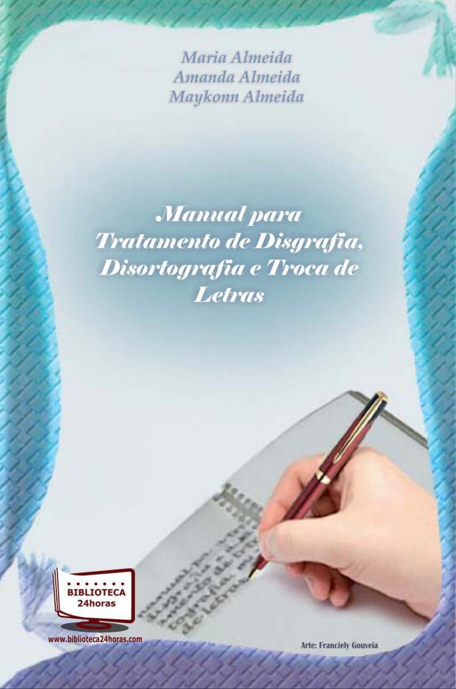 Maria Almeida Amanda Almeida Maykonn Almeida Manual para Tratamento de Disgrafia, Disortografia e Troca de Letras BIBLIOTECA 24horas Arte: Franciely GouveiaManual para tratamento disgrafia, disortografia E troca de letras Copyright © 2010 - Todos os direitos reservados a: Maria Almeida, Amanda Almeida e Maykonn Almeida ISBN: 978-85-7893-536-8 Edição Abril 2010 Direitos exclusivos para Língua Portuguesa cedidos à Biblioteca24horas, Seven System Internacional Ltda. Rua Luís Coelho 320/32 Cerqueira César São Paulo - SP Brasil CEP 01309-000 leitor@biblioteca24horas.com Vendas: www.biblioteca24horas.com Todos OS direitos reservados. Nenhuma parte do conteúdo deste livro poderá ser utilizada ou reproduzida em qualquer meio ou forma, seja ele impresso, digital, áudio ou visual sem a expressa autorização por escrito da penas criminais e ações civis. 2 Material com direitos autoraisMaria Almeida, Amanda Almeida e Maykonn Almeida Benefício Adicional Gratuito Ao adquirir ou receber este livro, 0 leitor ganha 0 direito a uma licença de uso (disponibilizada na penúltima página deste livro) no portal www.biblioteca24horas.com por tempo pré-determinado, através de login (pessoal e intransferível) com os seguintes benefícios: Acesso ao Formato Digital - Acessar e ler este livro no seu formato digital via internet, através de navegador comum, por um período acumulado de (o total de tempo de 5 minutos X quantidade de páginas) minutos e/ou por um prazo máximo de 90 dias, a serem contados do primeiro acesso. Este benefício será válido até a data de vencimento da licença de uso em 30/06/2011. O autor reserva-se 0 direito de atualizar constantemente 0 conteúdo deste livro e/ ou do conteúdo fornecido via internet sem prévio aviso. Copyright © 2010 Todos direitos referentes aos Benefícios Adicionais Gratuitos são reservados à Seven System International. 3 Material com direitos autoraisMaria Almeida, Amanda Almeida e Maykonn Almeida Sumário Disgrafia, Dislexia, Disortografia e Troca de Letras 7 Etapas do Desenvolvimento Psiconeurológico 8 O Ensino da Ortografia 10 Desenvolvimento Psiconeurológico 10 Escrita 11 Diferença Entre Ser Alfabetizado e Letrado 12 Etapas do Desenvolvimento Psiconeurológico - Maturação 15 Sessões a Serem Realizadas Com o Disgráfico 16 Métodos de relaxamento 18 Bibliografia 307 5 Material com direitos autoraisManual para tratamento disgrafia, disortografia E troca de letras Página em Branco www.biblioteca24horas.com 6 Material com direitos autoraisMaria Almeida, Amanda Almeida e Maykonn Almeida Disgrafia, Dislexia, Disortografia e Troca de Letras Um trabalho a ser realizado através de traços, cores, contrastes e formas. Este manual não tem como finalidade discorrer teoricamente sobre as questões de disgrafia e disortografia, ele é apenas um manual a ser executado pelo propósito que apresente as referidas dificuldades, toda a explicação está no livro REORGANIZAÇÃO NEUROLÓGICA da autora MARIA FERREIRA DE ALMEIDA. Disgrafia - É a dificuldade relacionada à execução do grafismo, existindo uma falta de regularidade e mau controle na escrita. Exemplos de disgrafia - Letras com má formação nos anéis. Letras colocadas umas sobre as outras. Grandes espaços em branco, com empelotamento nas letras. Força exagerada, chegando a marcar outras páginas do caderno. Traços descontrolados, letras que dançam nas linhas. Inversão de letras (escrita em espelho). Considerações - Diagnosticamos a disgrafia já nos primeiros anos relacionados à alfabetização é possível 7 Material com direitos autoraisManual para tratamento disgrafia, disortografia E troca de letras perceber com 3 ou quatro anos de vida através da observação no traçado da criança, se ela coloca muita força no lápis ou outras considerações aqui descritas. A disgrafia pode acompanhar uma criança desde muito cedo, aos quatro anos já traz em si uma performance no traçado, e já é possível fazer o diagnóstico. Diante da suspeita de que a pessoa possa ou não ser portadora de disgrafia o primeiro passo é iniciar uma investigação minuciosa comparando o traçado do propósito com a média de grafia para a idade equivalente sendo possível diagnóstico, através de desenhos, rabiscos e outros. Poderemos então iniciar um trabalho para a prevenção da mesma. É muito interessante que se faça uma avaliação psiconeurológica global envolvendo os itens deste manual. Etapas do Desenvolvimento Psiconeurológico Existem atualmente estudos que defendem a tese de que a criança portadora de disgrafia será provavelmente futuro portador de L.E.R. e outras complicações envolvidas com ombros, braços, mãos e dedos, considerando-se que em tais casos, a pessoa traz em si uma tendência para tensão que se inicia na cabeça, passando para o pescoço e avançando até as extremidades, ou seja até a ponta dos dedos. Criança Hipertônica Esse tipo de criança não tem a 8 Material com direitos autoraisMaria Almeida, Amanda Almeida e Maykonn Almeida noção da medida de força que irá usar, apertará muito lápis, chegando às vezes a machucar os dedos. Terá tensão forte nos ombros e nos braços: terá também dificuldade em dosar a energia necessária para interromper um traço. Criança Hipotônica - A criança portadora desse tipo de problema terá tendência a escorregar sobre a folha de papel e as letras serão disformes. Terá dificuldade em relação à direção que irá dar ao lápis. Principais tipos de dificuldades; Erros de forma e proporções. Dificuldade de ligação das letras, e má organização com empelotamento dos anéis. Margens irregulares. Linhas mal feitas. Má organização da página. Tipos de disgrafia - (Segundo Maria H. Novaes) 1 - Rigidez no traçado - Escrita muito inclinada, geralmente comprimida, mas regular de direção, crispada, sobrecarregada de ângulos e empelotamento, dando uma idéia de grande tensão. 2 Relaxamento gráfico