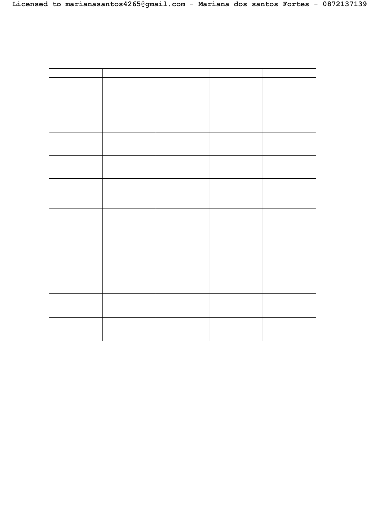 PRESCRIÇÃO DO TREINO “Nosso objetivo é conquistar o seu” NOME: DATA DE ÍNICIO: SEMANA 1 - TREINO A – (segunda-feira, quarta-feira e sexta-feira) 10 min: esteira ou elíptico EXERCICIO SET REPS OBS INTERVALO Supino reto 4 15 1min Polia alta barra (tríceps) 3 15 + uma série até a falha 45 s Flexão plantar no step 5 15 30 s Legpress 4 10 1min Extensora 3 12 Drop set nas 3 séries 1min Mesa Flexora 3 12 Drop set nas 3 séries 1min Elevação Lateral (ombro) 3 15 + uma série até a falha 45 s Remada polia baixa 4 15 45 s Puxada frente pegada neutra 4 15 45 s Rosca direta 4 15 45 s Esteira: 10 min na velocidade 6.0. Treino B – metabólico (terça-feira e quinta-feira) Bike: 20 min Swing + Flexão de Braços 4x 10-15 Esteira 10 min: corre 1 min a 9,0 km/h anda 1 min a 5,0 km/h Corrida estacionária + elevação lateral com halter + Climber mountain3 x 20”-15-20” Abdominal prancha 5 x máximo com 20 segundos de intervalo Esteira: 20 min velocidade 6.0 com inclinação de 5% (se possível). ESTRUTURA DO TREINO DE 8 SEMANAS: AQUI SUBDIVIDIDO EM TREINO ”A” E TREINO “B”, ASSIM ATE O FINAL DE 8 SEMANAS. Licensed to marianasantos4265@gmail.com - Mariana dos santos Fortes - 08721371393