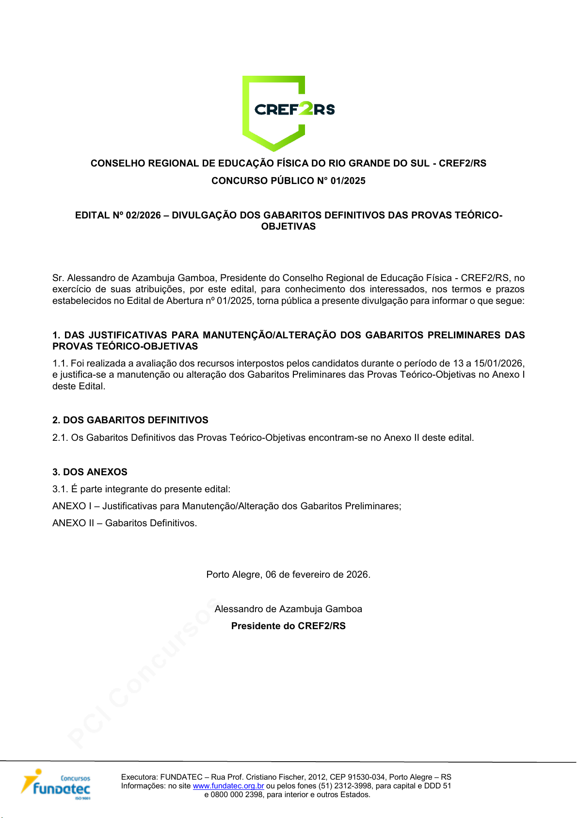 EDITAL Nº 02/2026 – DIVULGAÇÃO DOS GABARITOS DEFINITIVOS DAS PROVAS TEÓRICO-