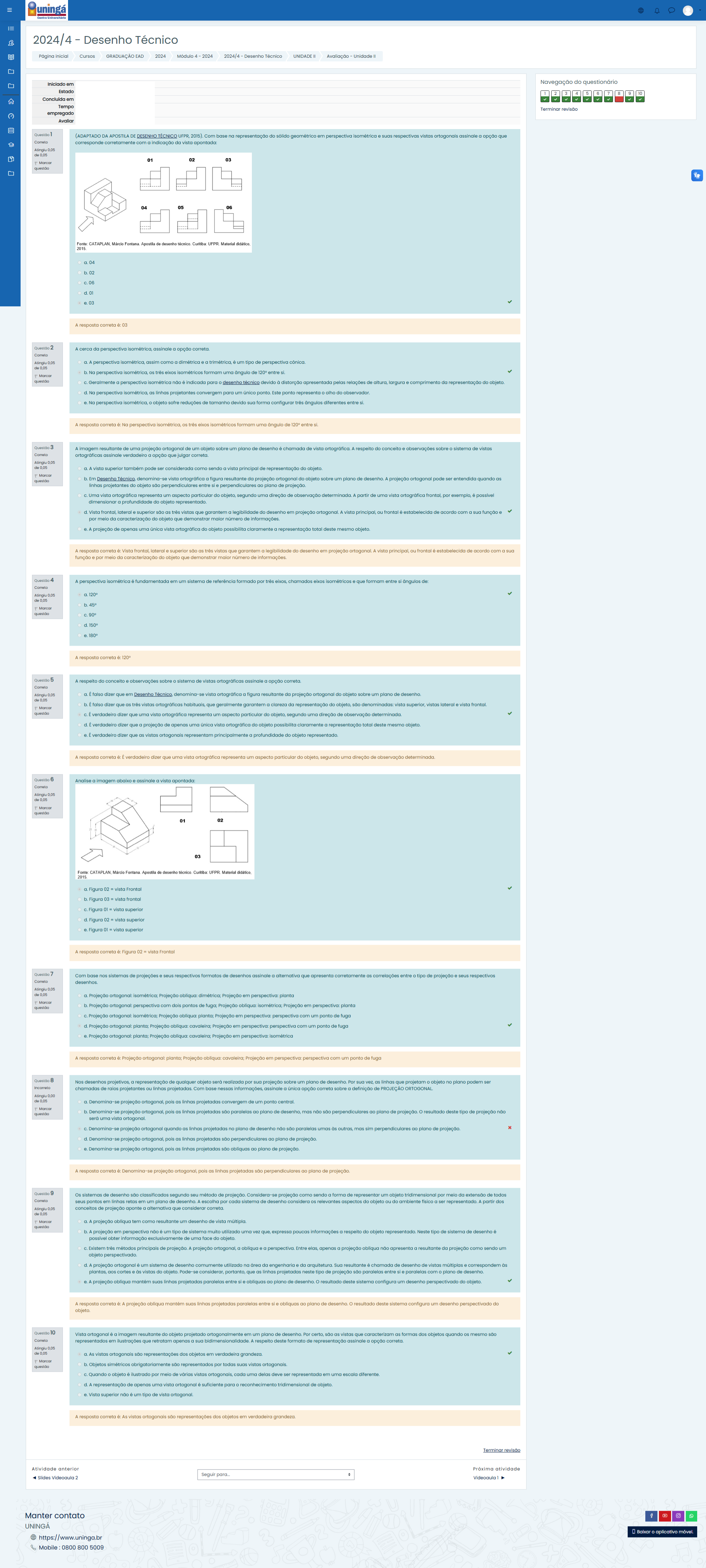 = uninga iii 2024/4 Desenho Técnico U inicial Cursos 2024 Módulo 2024/4 Desenho UNIDADE Iniciado em Navegação do questionário Estado A Tempo revisão empregado Avaliar APOSTILA DE DESENHO 2015) base na do em tiva suas ortogonais opção que corresponde com com 01 02 03 questão 04 05 06 Fonte CATAPLAN de desenho técnico Material 2015 b.02 c.06 A 03 A perspectiva opção perspectiva assim como de perspect tiva cônica. eixos de Geralmente isom não desenho distorção ap pelas relações de largura comprimento representação do as inhas projetantes para Este ponto do obse vador perspectiva objeto sofre reduções de devido sua forma diferentes A No tres formam A imagem resultante de uma projeção ortogonal um objeto sobre um plano de desenho chamada de vista respeito do conceito sobre sistema de vistas assinale opção que julgar vista pode ser isto de do objeto. Em Desenho se vista figura resultante da projeção gonal do objeto sobre um plano de desent projeção ortogon pode ser entendida quando as do objeto lares entre perpendiculares plano de projeção. Uma vista repres um aspecto particular objeto, segundo uma direção de observação determinada de uma vista por exemplo, possivel dimensionar profundidade objeto representado d. Vista superior são vistas que garantem do deser ortogonal. vista ou rontal de acordo com sua por meio do objeto que maior número de projeção de apenas vista do objeto ção deste A lateral superior são vistas que garantem lade do desenho ou frontal de sua função meio do objeto que strar maior de perspectiva em um sistema de formado por chamados eixos isométricos que formam entre ángulos A A respeito do conceito observações sobre de vistas opção falso dizer que em Desenho vista figura resultante projeção ortogonal do objeto sobre um plano desenho b. falso dizer que que garantem do objeto são vistas vista frontal verdadeiro dizer que vista representa um aspecto particular do objeto, segundo uma direção de observação verdadeiro dizer que projeção de apenas uma vista do objeto total deste e dizer que as vistas ortogonais ipain mente dade do bjeto A resposta verdadeiro dizer que uma vista um aspecto particular do uma direção de obser ação imagem abaixo assinale vista 01 02 03 CATAPLAN de Material Figura 02 Frontal Figura visto frontal Figura superior vista superior visto superior A Figura Frontal base nos sistemas de projeções seus respectivos de desenhos que apresenta ente as correlações entre tipo de projeção seus respectivos Projeção Projeção obliqua: Projeção em perspectiva: planta questão Projeção perspectiva com dois pontos obliqua: Projeção em pe Projeção Projeção em perspectiva um ponto de uga Projeção Projeção Projeção em com um Projeção Projeção em A Projeção cavaleira; Proje ção em pect perspe com um ponto de fuga Nos resentação de qualquer objeto será realiz zada por sua projeção sobre um plano de desenho Por sua vez, as linhas que projetam objeto no plano podem ser de Com base sobre defin ção de RTOGONAL Denomina se projeção pois as inhas etadas convergem de um ponto central projeção ortog poi as linhas projetadas alelas de ho, mas não são dic plano de resu deste tipo de uma Denomina se projeção ortogonal quando as inhas projetadas no plano de desenho não são paralelas umas mas sim perpendiculares 00 plano de se projeção pois as linhas projet per ares plano de projeção projeção pois as linhas projetadas são obliquas plano de projeção. A se projeção pois as per plan de Os sistemas de desenho são segundo seu método de projeção. Considera se projeção como sendo objeto dimensional por meio do extensão todos seus em linhas retas em A escolha por cada de do objeto fisico ser partir dos de projeção apor que considerar a projeção obliqua tem um desenho de vista projeção em perspectiva não tipo de sistema muito utilizado vez que, poucas informações respeito do objeto rep Neste tipo de de desenho possivel obter informação de uma face do objeto. Existem três métodos principais de projeção obliqua Entre elas, apenas projeção obliqua não apresenta resultante rojeção como um objeto projeção da engenharia do arquitetura esultante desenho de vistas vistas do considerar, portanto, que linhas rojetadas neste tipo de eção são paralelas paralelas com plano de desenho projeção suas ralelas entre obliquas de resultado deste sistema figura um desenho perspectivado objeto. resposta projeção suas inhas entre sie de desenho resultado deste sistema um desenho perspectivado do objeto 10 ortogonal imagem do objeto projetado ente em um plano de Por certo, são vistas que caracterizam as dos objetos quando mesmo são representados em ilustrações que bidimen respeito deste for de represent tação assinale opção vistas são dos em verdadeiro questão Objetos simétricos rigatoriamente representados por todas suas vistas ortogonais. Quando objeto por meio de várias vistas cada uma delas deve ser em uma de apenas uma vista ortogonal suficient para o ento nal de objeto. superior não um tipo de A As vistas são dos objetos em Atividade anterior Proxima atividade Seguir Slides Manter contato https: uninga.br Mobile 0800 800 5009