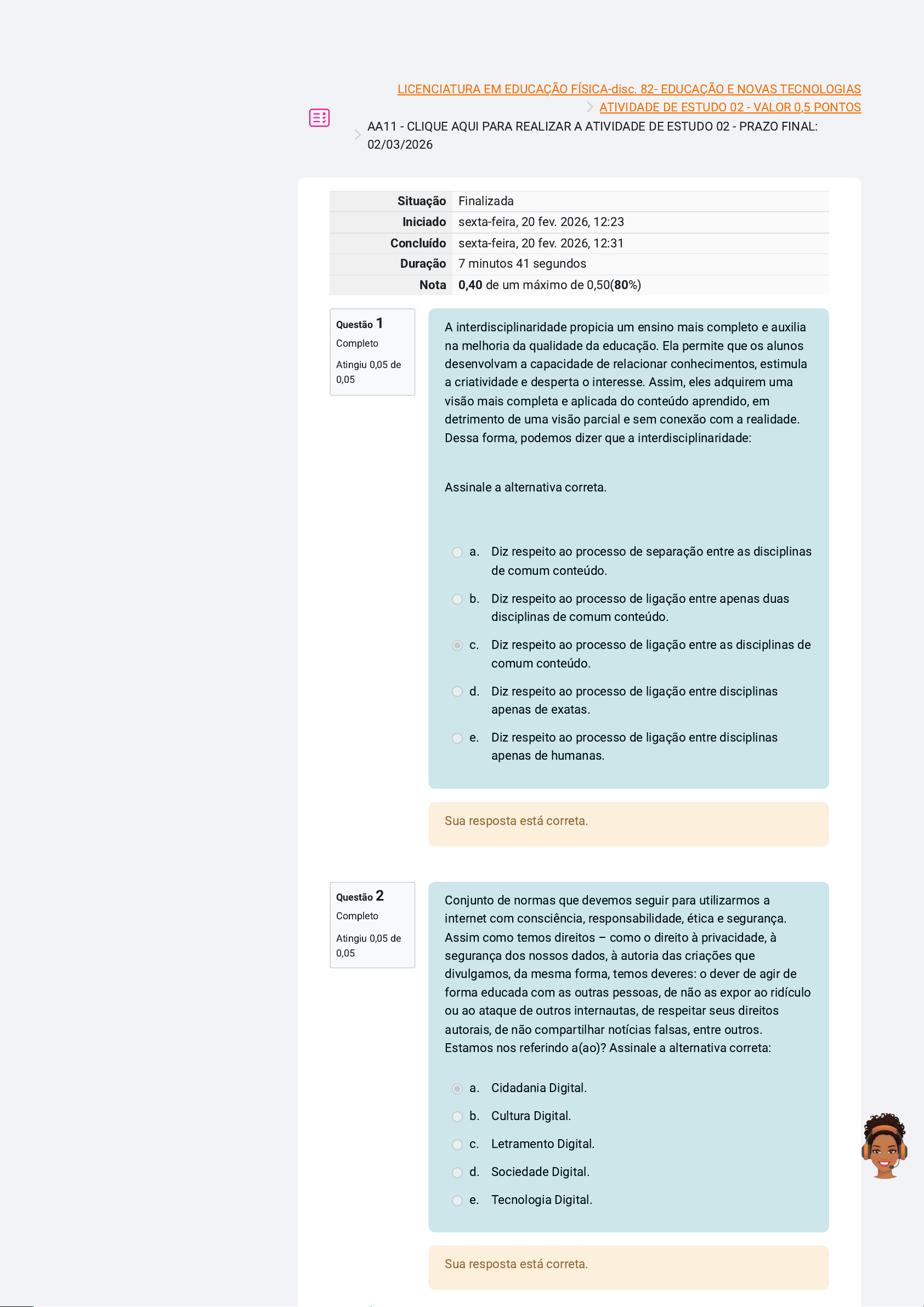 Concluído sexta-feira, 20 fev. 2026, 12:31