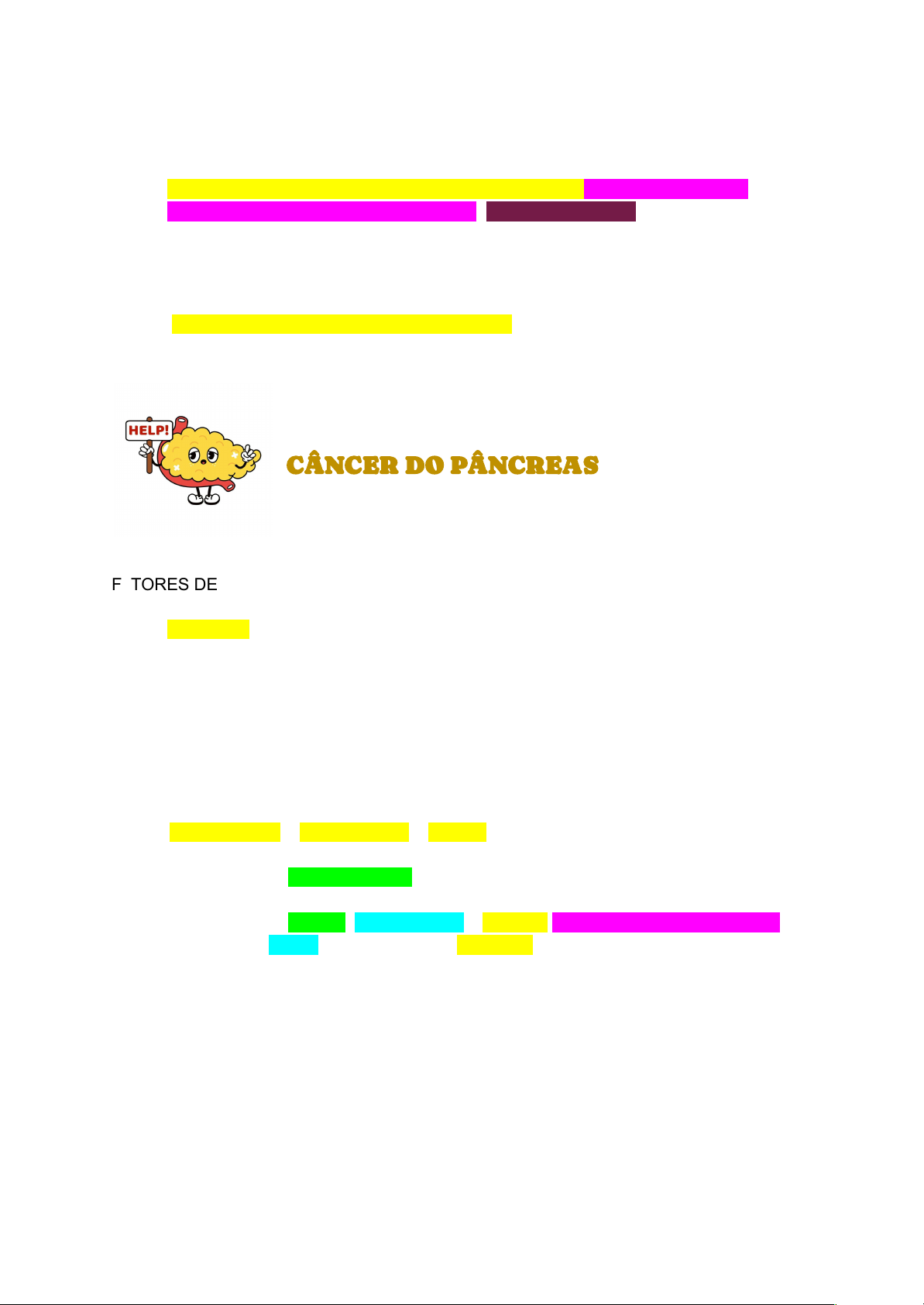 As neoplasias malignas do pâncreas podem afetar o pâncreas exócrino e o pâncreas endócrino. ● 95% das neoplasias malignas do pâncreas são exócrinas; ● 80% das neoplasias malignas do pâncreas são do tipo ADENOCARCINOMA DUCTAL INFILTRANTE DO PÂNCREAS (cancer do pâncreas) , que é do pâncreas exócrino; ● Neoplasia muito ameaçadora à vida; ● Maioria já descobre a doença com metástase ou localmente avançada; ● 15-20% dos pacientes são candidatos à pancreatectomia ao diagnóstico. ● 60-70% irão acometer a cabeça do pâncreas; ● 20-25% irão acometer o corpo e a cauda. CÂNCER DO PÂNCREAS FATORES DE RISCO ● Tabagismo, principal fator associado; ● Idade, risco aumentado após os 60 anos; ● Homens; ● Negros; ● Dieta; ● Fatores genéticos CLÍNICA Tríade: Dor abdominal + perda de peso + icterícia ● Dor abdominal- mesoepigástrica ou lombar que piora a noite, ao se alimentar e no decúbito dorsal; ● Perda de peso- Astenia, perda de peso e anorexia ocorrem em 80% dos doentes; ● Icterícia com colúria (urina escura) e acolia fecal Outros sintomas: ● em 25% o paciente adquire diabetes mellitus de início recente; ● Sinal de couvoiser- terrier: vesícula biliar palpável e indolor; ● Sinal de trousseau, que é uma tromboflebite superficial migratória; ● O câncer de pâncreas aumenta os eventos tromboembólicos; ● Tem algumas manifestações cutâneas: penfigóide bolhoso paraneoplásico; Temos também algumas nodulações: ● Nódulo de Virchow- LFN supraclavicular esquerdo; ● Nódulo Irmã Maria José- nódulo tumoral periumbilical; ● Prateleira de Blummer: envolvimento perirretal. DIAGNÓSTICO Marcador tumoral- CA19-9 ● Baixo Valor Preditivo Positivo- ruim para rastreio e diagnóstico; ● Ele serve para fazer só acompanhamento; ● Sensibilidade: para pacientes sintomáticos é boa ● Especificidade: para pacientes sintomáticos é boa ● Melhor: prognóstico e seguimento; ● Necessita antígeno de Lewis para ele dar positivo. Imagem US de abdome- usar em paciente com icterícia ● Baixo custo; ● Sensibilidade> 95% para tumores > 3 cm; TC de abdome com contraste- usar com pacientes sem icterícia ● Sensibilidade 89-97%. ● Padrão ouro pâncreas com tumor na cabeça. US endoscópica ● É um exame de endoscopia digestiva alta em que na pontinha desse endoscópio eu tenho um transdutor de ultrassom; ● Bom para guiar biópsia e para tumores muito pequenos; ● AAF(biópsia) + USE: sensibilidade 87% e especificidade 98%; ● Pacientes com achados típicos e tumor potencialmente ressecável podem dispensar biópsia. ESTADIAMENTO Estágios Ia a IIb ⬇ candidatos a cirurgia Estágios III ou superior ⬇ Não são candidatos a cirurgia de imediato T- tamanho do tumor N- número de linfonodos afetados M- metástase a distância TRATAMENTO Operabilidade ● Esse paciente tem condições de ser operado? Ressecabilidade ● Esse tumor é passível de ser totalmente removido por cirurgia? Tumores irressecáveis ● Metástasis a distancia; ● Linfonodo/ nódulos patológicos fora da área de ressecção- nódulos de virchow; nódulo da irmã maria josé. Laparoscopia pré-operatória ● fazer uma laparoscopia para dar uma olhadinha no tumor; ● com objetivo de avaliar a doença metastática; ● tumores maiores 3 cm; ● imagem sugestiva de doença metastática oculta. Tumores ressecáveis Aqueles que estarão na cabeça e no processo uncinado: ● Duodenopancreatectomia convencional (cirurgia de Whipple); ● Complexo e de alto risco Aqueles que estarão no corpo e cauda: ● Pancreatectomia subtotal distal com ou sem esplenectomia; ● 5 a 7% passível de ressecção. OBS.: Indicações de drenagem da via biliar: ● bilirrubina > 20; ● Sinais de colangite; ● Pacientes em que a cirurgia irá demorar mais de duas semanas; ● Pacientes sintomáticos, com prurido e anorexia. Quimioterapia adjuvante ● Se faz depois da cirurgia; ● Indicada para TODOS que não receberam quimioterapia neo; LESÕES CÍSTICAS DO PÂNCREAS ● Toda e qualquer lesão bem definida localizada no pâncreas que apresente conteúdo líquido; Temos as coleções influidas inflamatórias: ● Pseudocisto pancreático (+ comum); Temos as neoplasias císticas do pâncreas: ● Neoplasia cística serosa (NCS); ● Neoplasia cística mucinosa; (NCM) ● Neoplasia mucinosa papilar intraductal; (NMPI) ● Neoplasia sólida pseudopapilar. (NSP) ● Pseudocisto e o Neoplasia Papilar Intraductal se comunicam com ducto pancreático principal; ● CEA elevado indica METAPLASIA MUCINOSA; ● Só terá mucina no conteúdo quem tem mucina no nome: Neoplasia cística mucinosa (NCM) e Neoplasia mucinosa papilar intraductal (NMPI); ● CEA elevado nas neoplasias mucinosas: NCM e NMPI; ● AMILASE elevadas nas que se comunicam com ducto pancreático: pseudocisto e NMPI. Pseudocisto- história de pancreatite aguda/ crônica; NCS- favo de mel; NCM- fluido de alta viscosidade Neoplasia mucinosa papilar intraductal- é tipo um cachinho de uvas, igual está na imagem.