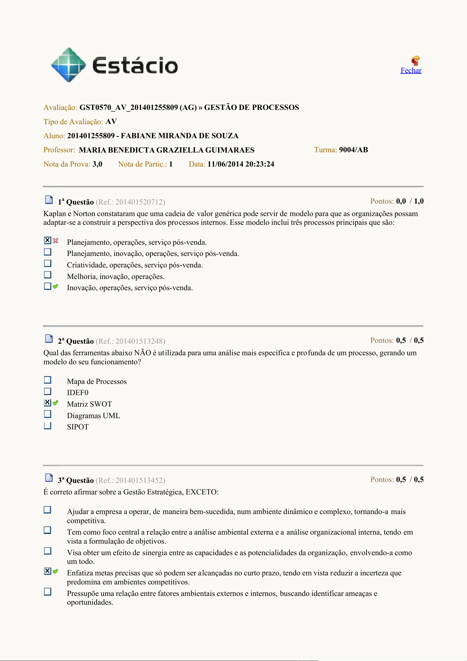 Avaliação: GST0570_AV_201401255809 (AG) » GESTÃO DE PROCESSOS