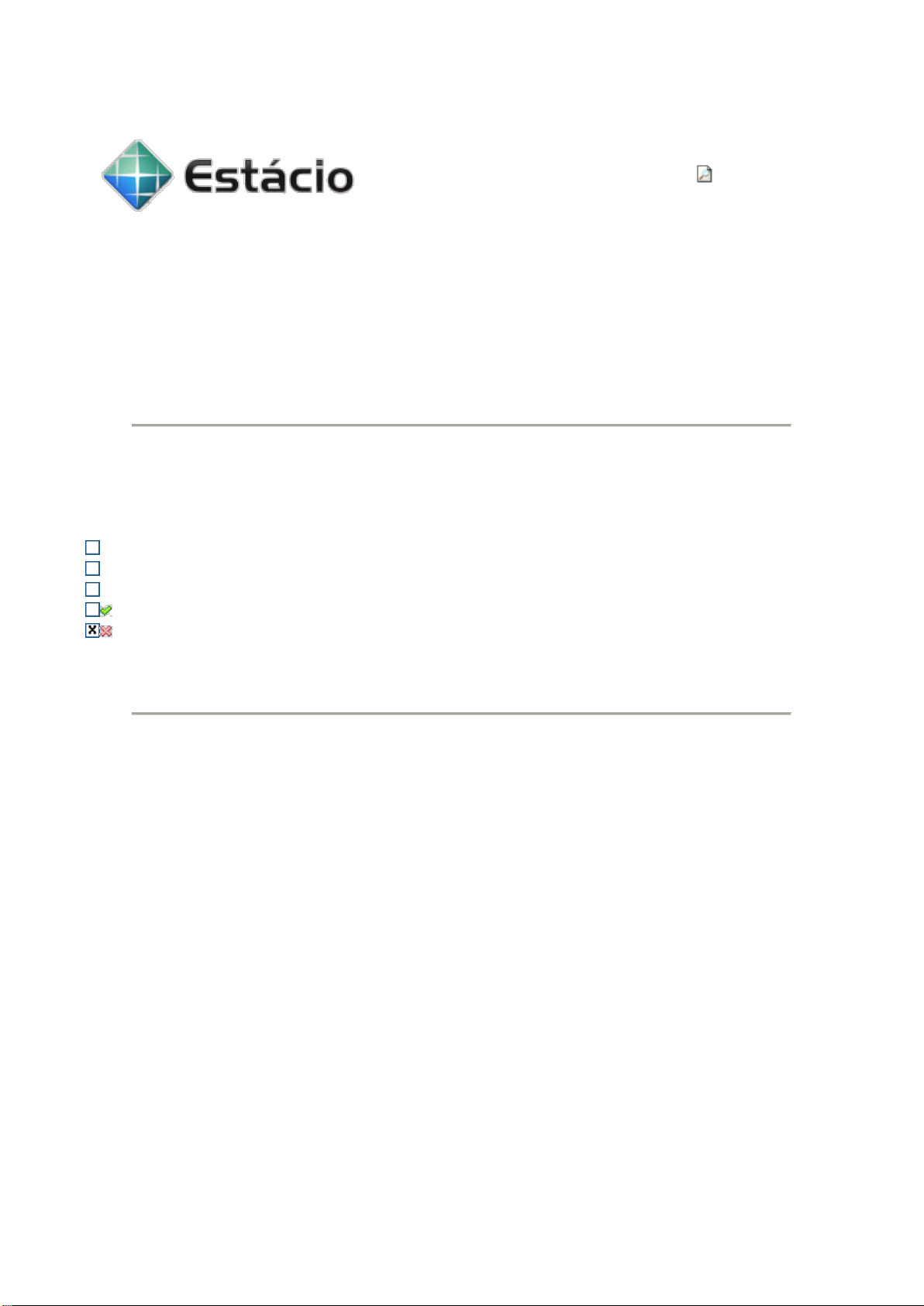 Detalhes Roberval Ferreira Neves 1.) MEDIDAS DE TENDÊNCIA CENTRAL Pontos: 0,0 / 0,5 Em uma indústria química, com 80 funcionários, 60 recebem R$60,00 e 20 recebem R$40,00 por hora. O salário médio por hora é: R$65,00 R$50,00 R$60,00 R$55,00 R$45,00 2.) ESTATISTICA DESCRITIVA Pontos: 0,0 / 1,0 Uma amostra de 11 salários para engenheiros no começo de carreira estão retratados na tabela abaixo. A média salarial desta amostra é R$ 2403,18. Com base nas informações descritas na tabela, encontre a variância amostral dos salários. javascript:detalhar(); javascript:detalhar(); S2 = 14151,36 R$2 S2 = 1,415136 R$2 S2 = 14151364 R$2 S2 = 1415136000 R$2 S2 = 2403,18 R$2 3.) ESTATÍSTICA DESCRITIVA Pontos: 0,0 / 0,5 Em um determinado mês, o departamento de trânsito da Cidade X reportou os seguintes números de violação em 5 cidades: 53; 31; 67; 53; 36. A mediana do número de violações é: 53 31 67 36 55 4.) ESTATISTICA DESCRITIVA Pontos: 0,5 / 0,5 O gráfico abaixo representa diferentes temperaturas durante o processo de pasteurização do leite. Com relaçao ao gráfico abaixo, podemos afirmar que: trata-se de um gráfico de setores onde a variável temperatura é numérica e contínua trata-se de um gráfico de linhas onde a variável temperatura é numérica e contínua trata-se de um gráfico de barras onde a variável temperatura é numérica e discreta trata-se de um gráfico de barras onde a variável temperatura é categórica e contínua trata-se de um gráfico de barras onde a variável temperatura é numérica e contínua 5.) MEDIDAS DE TENDÊNCIA CENTRAL Pontos: 0,5 / 0,5 Em um determinado curso, as notas finais de um estudante em Cálculo I, Física I, Mecânica e Química foram, respectivamente, 3,0; 5,0; 3,0 e 1,0. Determinar a média do estudante. 3,5 3,0 4,6 4,0 1,3 6.) MEDIDAS DE TENDÊNCIA CENTRAL / MÉDIA Pontos: 0,0 / 1,0 Supondo que a média de gols dos 48 jogos da primeira fase da Copa do Mundo tenha sido 3,4 e que a média de gols dos 16 jogos restantes tenha sido 1, qual foi a média geral de gols de todos os jogos desta Copa do Mundo? 1,4 1,8 2,2 2,8 3,0 7.) CONCEITOS INTRODUTÓRIOS / CLASSIFICAÇÃO DE VARIÁVEIS Pontos: 1,0 / 1,0 Algumas variáveis foram selecionadas com o objetivo de conhecer o perfil dos alunos de determinada escola. Entre elas estão: número de irmãos, idade e bairro onde mora. Marque a opção que classifica estas variáveis na ordem em que foram apresentadas. Qualitativa, Quantitativa Contínua, Quantitativa Discreta Qualitativa, Quantitativa Discreta, Quantitativa Contínua Quantitativa Contínua, Quantitativa Discreta, Qualitativa Quantitativa Discreta, Quantitativa Contínua, Qualitativa Quantitativa Discreta, Qualitativa, Quantitativa Contínua 8.) MEDIDAS DE DISPERSÃO / DESVIO PADRÃO Pontos: 0,0 / 1,0 Considerando o desvio padrão, podemos afirmar Quanto menor a variabilidade em torno da média de uma distribuição, maior é o desvio padrão. Quanto maior a variabilidade em torno da média de uma distribuição, maior é o desvio padrão. Quanto menor a variabilidade em torno da média de uma distribuição, menor é o desvio padrão. Quanto maior a variabilidade em torno da média de uma distribuição, menor é o desvio padrão. A variabilidade em torno da média não tem relação com o desvio padrão. 9.) MEDIDAS DE DISPERSÃO / DESVIO MÉDIO Pontos: 0,0 / 1,0 Considerando o conjunto de valores 9, 8, 6, 4, 2 e 1, que representam o número de semanas em que seis chefes de família desempregados receberam salário-desemprego. Em média, a duração do desemprego se afasta da média em 3,67 semanas 1,67 semanas 30 semanas 16 semanas 2,67 semanas 10.) MEDIANA Pontos: 0,0 / 1,0 Considere as afirmações abaixo: I. Quando temos um número par de elementos, a mediana é o caso que recai exatamente no meio da distribuição. II.Quando temos um número ímpar de elementos, a mediana é o caso que recai exatamente no meio da distribuição. III.Quando temos um número par de elementos, a mediana é sempre o ponto médio entre os dois valores do meio. Apenas é correto o que se afirma em I II III II e III I e III