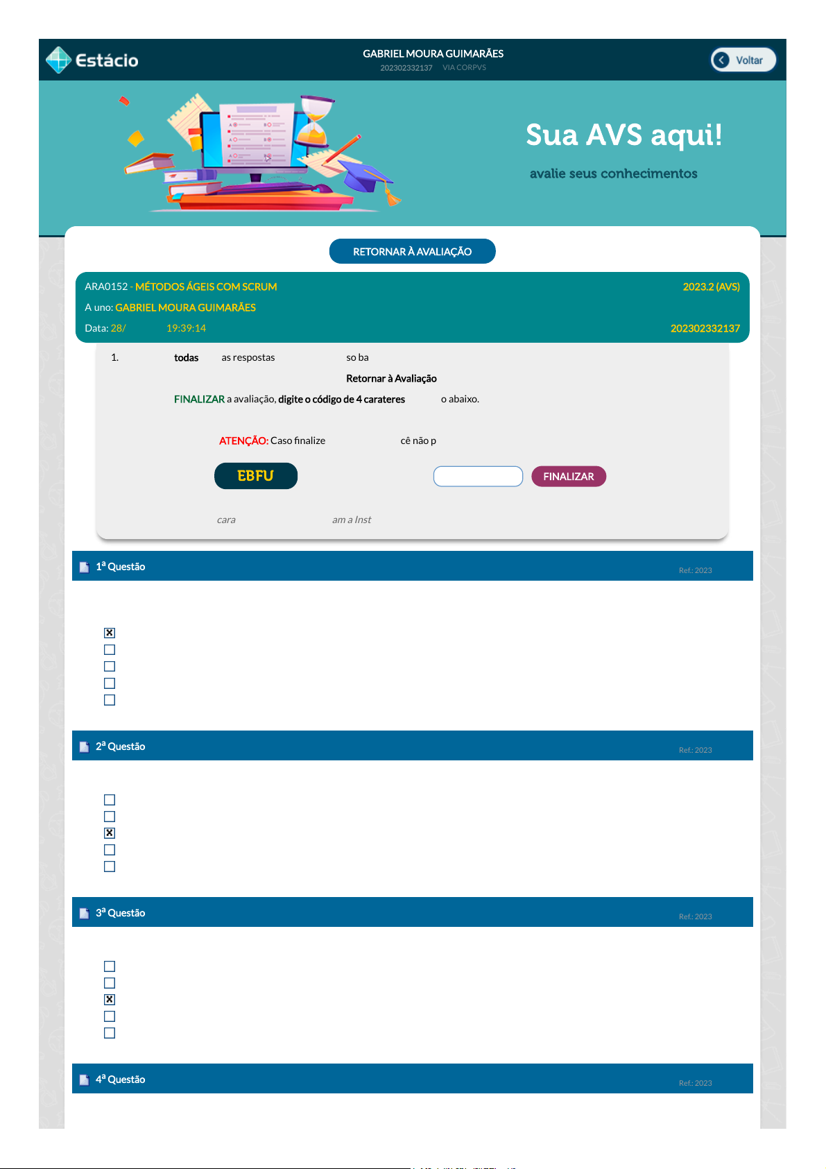 3. Caso queira FINALIZAR a avaliação, digite o código de 4 carateres impresso abaixo.