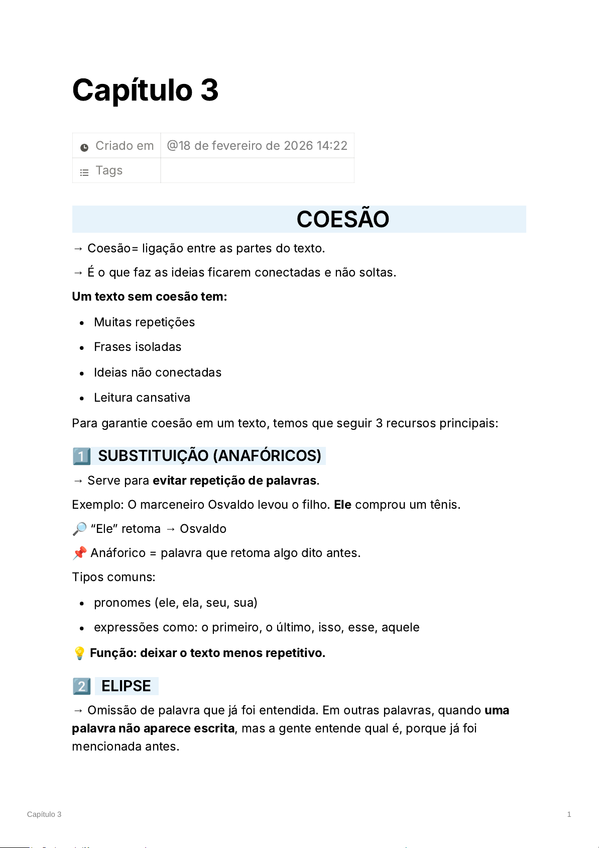 → Coesão= ligação entre as partes do texto.