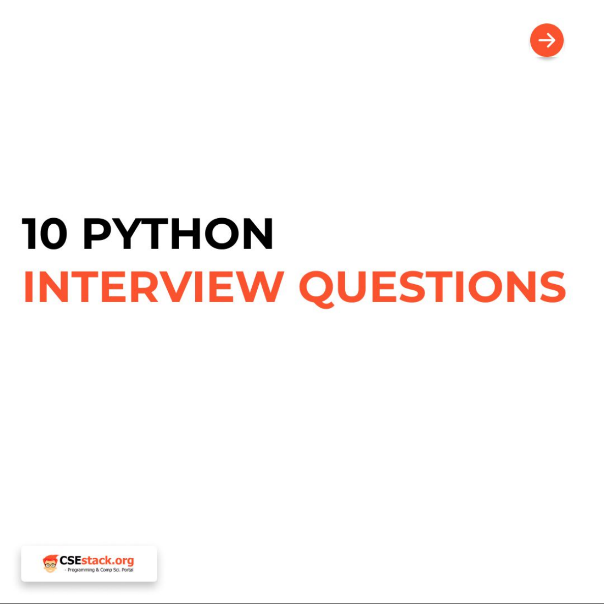PYTHON TERVIEW QUESTIONS#1 How to reverse a string? Here is a simple code you can use to reverse the string with single line of code. myStr="csestack" print(myStr[::-1]) Output : kcatsesc CSEstack.org - Programming & Comp Portal#2 What is init method? "_init__" is the reserved method in Python class. It is similar to the constructor in other programming languages. This method will be called the first time when a new object is created for that class. With init () method, you can in9itiallize all the call attributes for that object. class myClass: def value): print( "Object initialization ) myClass myOb Output : Object initialization CSEstack.org - Programming & Comp Portal#03 What is List comprehension? It is an advanced method of creating a list. With the single line of code, you can generate the list. Example: Write a Python program to generate a list of the first five even numbers using the list comprehension technique. obj = [x*2 for X in range(1, 6)] print(obj) [2, 4, 6, 8, 10] CSEstack.org - Programming & Comp Portal#04 What is negative indexing in Python? The last element in the list will be having index -1, second last element will be having index -2, and so on This negative indexing is useful for accessing elements from the right to left. Similar to the list, negative indexing is used to access the character in the string. myStr="code" print(myStr[-1]) print(myStr[-2]) print(myStr[-3]) print(myStr[-4]) Output : e d CSEstack.org - Programming & Comp Portal#05 What is the reduce function? The reduce function is used to reduce the elements in the list by applying a certain function. Example: Write a program to find the sum of all the elements in the list using reduce function from functools import reduce objFun = lambda x,y: x+y li=[3, 5, 7, 9] objReduce = reduce(objFun, li) print(objReduce) 24 CSEstack.org - Programming & Comp Portal#06 What is the Built-in function in Python? The functions that come predefined with the Python installation is called a built-in Python function. You don't need to import any of the Python libraries to use the built-in functions. If you have Python installed on your system, you can call these built-in methods. CSEstack.org Programming & Comp Portal#07 How to take multi-line user input in Python? It is possible using the readlines() method by importing sys module. Here are three lines of code for taking multi-line user input. import sys msg = sys.stdin.readlines() print(msg) CSEstack.org - Programming & Comp Portal#08 What is the difference between Iterators and generators? Iterators and generators are the two different object types. Both these objects are used for iteration. Unlike iterators, generators use lazy evaluation techniques (as per the explanation provided in the above question.) CSEstack.org Programming & Comp Portal#09 What are the different types of operators in Python? Arithmetic Operators Relational Operators Assignment Operators Logical Operators Membership Operators Identity Operators Bitwise Operators CSEstack.org Programming & Comp Portal#10 What is a metaclass? The class defines the behavior of the instances i.e. object. Metaclass defines the behavior of another class. This is the main difference between class and metaclass. In other words, a metaclass is a class of another class. Not every programming language supports metaclass concepts. Python has a metaclass implementation supported. CSEstack.org - Programming & Comp PortalCSESTACK.ORG FOLLOW CSESTACK FOR MORE UPDATES CSEstack.org Programming & Comp Portal follow share