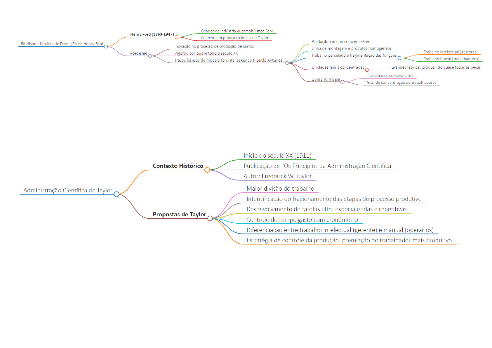 Criador da indústria automobilística Ford Henry Ford (1863-1947) Colocou em prática as ideias de Taylor Fordismo: Modelo de Produção de Henry Ford Produção em massa ou em série Inovação no processo de produção de carros Linha de montagem e produtos homogêneos Fordismo Vigorou por quase todo século XX Trabalho intelectual (gestores) Trabalho parcelado e fragmentação das funções Traços básicos do modelo fordista (segundo Ricardo Antunes): Trabalho braçal (trabalhadores) Unidades fabris concentradas Grandes fábricas produzindo quase todas as peças Trabalhador coletivo fabril Operário-massa Grande concentração de trabalhadores Início do século XX (1911) Contexto Histórico Publicação de "Os Princípios da Administração Científica" Autor: Frederick W. Taylor Administração Científica de Taylor Maior divisão do trabalho Intensificação do fracionamento das etapas do processo produtivo Desenvolvimento de tarefas ultra especializadas e repetitivas Propostas de Taylor Controle do tempo gasto com cronômetro Diferenciação entre trabalho intelectual (gerente) e manual (operários) Estratégia de controle da produção: premiação do trabalhador mais produtivoInício nos anos 70 do século XX Crise do Fordismo Queda na taxa de lucro devido ao aumento do preço da força de trabalho Características: Início do desemprego estrutural Crise do Estado do bem-estar social após fim da URSS Privatizações de empresas estatais Políticas do Neoliberalismo Desregulamentação dos direitos do trabalho Crise do Fordismo e Surgimento do Toyotismo Reorganização do processo produtivo e do trabalho Surgimento do modelo flexível de produção Nas fábricas de automóveis da Toyota, Japão, anos 70 Produção voltada diretamente pela demanda Produção variada e diversificada Características: Sustentação na concepção de estoque mínimo usando Kanban Surgimento do Toyotismo Horizontalização da produção com subcontratações Autocontrole dos trabalhadores Flexibilização do aparato produtivo Mudanças nos trabalhadores: Uso de tecnologia e número mínimo de trabalhadores Exploração da subjetividade do trabalhador Flexibilização dos direitos dos trabalhadores