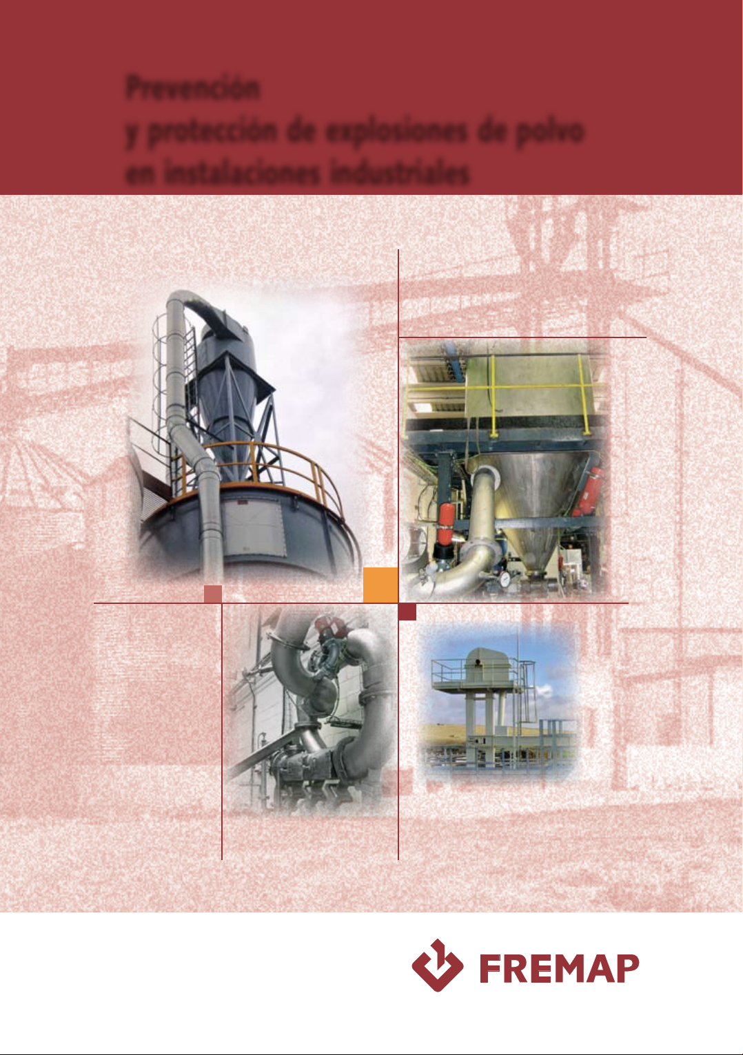 Mutua de Accidentes de Trabajo y Enfermedades Profesionales de la Seguridad Social Número 61 Prevención y protección de explosiones de polvo en instalaciones industriales Pr ev en ció n y pr ot ec ció n de e xp lo sio ne s d e po lv o en in st al ac io ne s i nd us tri al es Con la colaboración de: Xavier de Gea Rodríguez madrug99 DGOSS Prevención y protección de explosiones de polvo en instalaciones industriales Notas Biográ�cas Autor: Xavier de Gea Rodríguez. Licenciado en Ciencias Químicas UAB. MBA ESADE. Director LPG Prevención y Protección de explosiones. Miembro del grupo de trabajo nacional (AEN/CTN 163). Miembro de grupo internacional ESMG. Colaboradores: Javier García Torrent. Dr. Ingeniero de Minas. Profesor del departamento de Ingeniería Química y Combustibles (UPM). Responsable del Área de Seguridad de Procesos Sólidos del LOM. Miembro de grupos de trabajo nacionales (AEN/CTN 163 y AEN/CTN 22). Miembro de grupos de trabajo internacionales (CEN TEC 305 y CEI TC31SC31H) para la elaboración de normativa en atmósferas explosivas. Enrique Querol Aragón. Dr. Ingeniero de Minas. Profesor del departamento de Ingeniería Química y Combustibles (UPM). Colaborador del LOM. Marc Coupin Solà. Ingeniero Químico IQS. Consultor Senior. INBUREX Consulting GmbH. Xavier Martino Bofarull. Director Técnico LPG Prevención y Protección de explosiones. Miembro del grupo de trabajo nacional (AEN/CTN 163). Miembro de grupo internacional ESMG. Xavier Minoves Casals. Ingeniero Técnico Industrial. Técnico Superior en Prevención de Riesgos Laborales en las especialidades de Seguridad, Higiene y Ergonomía. Coordinador de Prevención de FREMAP Cataluña. «Quedan rigurosamente prohibidas, sin la autorización escrita de los titulares del Copyright, bajo las sanciones establecidas en las leyes, la reproducción total o parcial de esta obra por cualquier medio o procedimiento, comprendidos la reprografía y el tratamiento informático, y la distribución de ejemplares de ella mediante alquiler o préstamo públicos». © 2007, FREMAP Mutua de Accidentes de Trabajo y Enfermedades Profesionales de la Seguridad Social Número 61. Carretera de Pozuelo, 61 28222 Majadahonda (Madrid) Depósito Legal: M-44271-2007 Diseño y realización: DiScript Preimpresión, S. L. Impreso por: Imagen Artes Grá�cas, S. A. Agradecimientos Siempre es sincero el agradecimiento a todos los que han colaborado en este libro directa o indirectamente. Nombrar a cada uno sería muy largo y por ello sólo me voy a limitar a los más allegados. Sobre todo a Elisenda a la cual le he quitado mucho tiempo por la intensiva dedicación a mi trabajo espero que cuanto menos con este libro, pueda justificar algún fin de semana que la dejé sola disfrutando de la compañía de nuestros hijos Anna y Albert. También quiero agradecer a mis colegas Xavier Martino y Gustavo Hidalgo mis más entrañables compañeros desde hace tantos años, a mis colegas que desinteresadamente han aportado todos sus años, que son muchos, de experiencia práctica en la protección con éxito de numerosas instalaciones, a Javier García Torrent, Enrique Querol, que han puesto a nuestra disposición su también dilatada experiencia en la caracterización de polvos combustibles. A Xavier Minoves y a Marc Coupin por sus valiosas aportaciones prácticas, a todos aquellos que, sin su ayuda y apoyo hubiera sido imposible llevar a buen puerto este proyecto que tanto nos ha ilusionado, no sólo por el contenido del mismo sino por la utilidad que vemos para todos los que lo lean. A todos mis compañeros de LPG que con su profesionalidad y consejos han aumentado la calidad técnica y práctica del presente libro. Desde luego tengo que agradecer a FREMAP su implicación en esta publicación, que en el marco de su importante actividad en prevención de riesgos laborales, ha entendido que puede ser útil para la mejora de las condiciones de seguridad y salud en los centros de trabajo y la reducción de la siniestralidad. A todos, sinceramente, gracias. Xavier de Gea Julio 2007 Aviso al Lector Este libro representa una guía para la prevención y protección contra explosiones de polvo en la industria, en ningún caso constituye un texto normativo o reglamentario, ni prescribe los requisitos que, ejecutados, garanticen la seguridad de esos procesos. Se presentan ideas y soluciones para resolver ciertas necesidades que los profesionales en esta materia pueden plantearse. Estas ideas pueden servir de base para la ejecución de posibles aplicaciones de prevención y protección contra explosiones. Cada instalación es diferente y depende de muchas circunstancias y la solución que puede ser válida para una puede no serlo para otra; es por ello que se aconseja el asesoramiento profesional en cada una por separado. Si de la lectura del presente libro se consigue la mejora en la seguridad del equipo, del proceso o de la instalación, el presente libro habrá conseguido su objetivo. Índice Introducción ........................................................................................... XI Marco normativo .................................................................................... XV Capítulo 1. Parámetros de seguridad de las sustancias sólidas ................. 1 1.1. Atmósferas explosivas por polvo ................................ 3 1.2. Caracterización de las sustancias pulverulentas ........ 4 1.2.1. Características generales ................................. 4 1.2.2. Sensibilidad a la ignición ................................. 5 1.2.3. Severidad de la explosión ................................ 6 1.2.4. Susceptibilidad térmica .................................... 8 1.2.5. Estabilidad térmica .......................................... 11 1.2.6. Transporte de mercancías peligrosas .............. 12 1.2.7. Sensibilidad al choque o al frotamiento .......... 13 Capítulo 2. La clasificación en zonas .............................