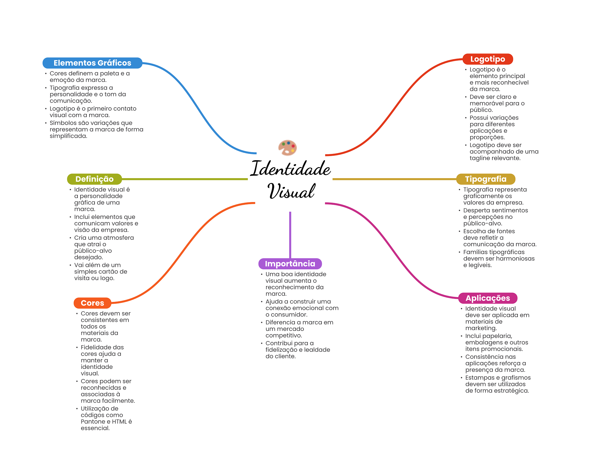 Elementos Gráficos Logotipo Logotipo é Cores definem a paleta e a elemento principal emoção da marca. e mais reconhecível Tipografia expressa a da marca. personalidade e O tom da Deve ser claro e comunicação. memorável para O Logotipo é primeiro contato público. visual com a marca. Possui variações Símbolos são variações que para diferentes representam a marca de forma aplicações e simplificada. proporções. Logotipo deve ser acompanhado de uma tagline relevante. Identidade Definição Tipografia Identidade visual é a personalidade Visual Tipografia representa graficamente gráfica de uma valores da empresa. marca. Desperta sentimentos Inclui elementos que e percepções no comunicam valores e público-alvo. visão da empresa. Escolha de fontes Cria uma atmosfera deve refletir a que atrai O comunicação da marca. público-alvo Famílias tipográficas desejado. devem ser harmoniosas Vai além de um Importância e legíveis. simples cartão de Uma boa identidade visita ou logo. visual aumenta reconhecimento da marca. Cores Ajuda a construir uma Aplicações conexão emocional com Identidade visual Cores devem ser consumidor. deve ser aplicada em consistentes em Diferencia a marca em materiais de todos um mercado marketing. materiais da competitivo. Inclui papelaria, marca. Contribui para a embalagens e outros Fidelidade das fidelização e itens promocionais. cores ajuda a do cliente. Consistência nas manter a identidade aplicações reforça a visual. presença da marca. Estampas e grafismos Cores podem ser devem ser utilizados reconhecidas e associadas à de forma estratégica. marca facilmente. Utilização de códigos como Pantone e HTML é essencial.