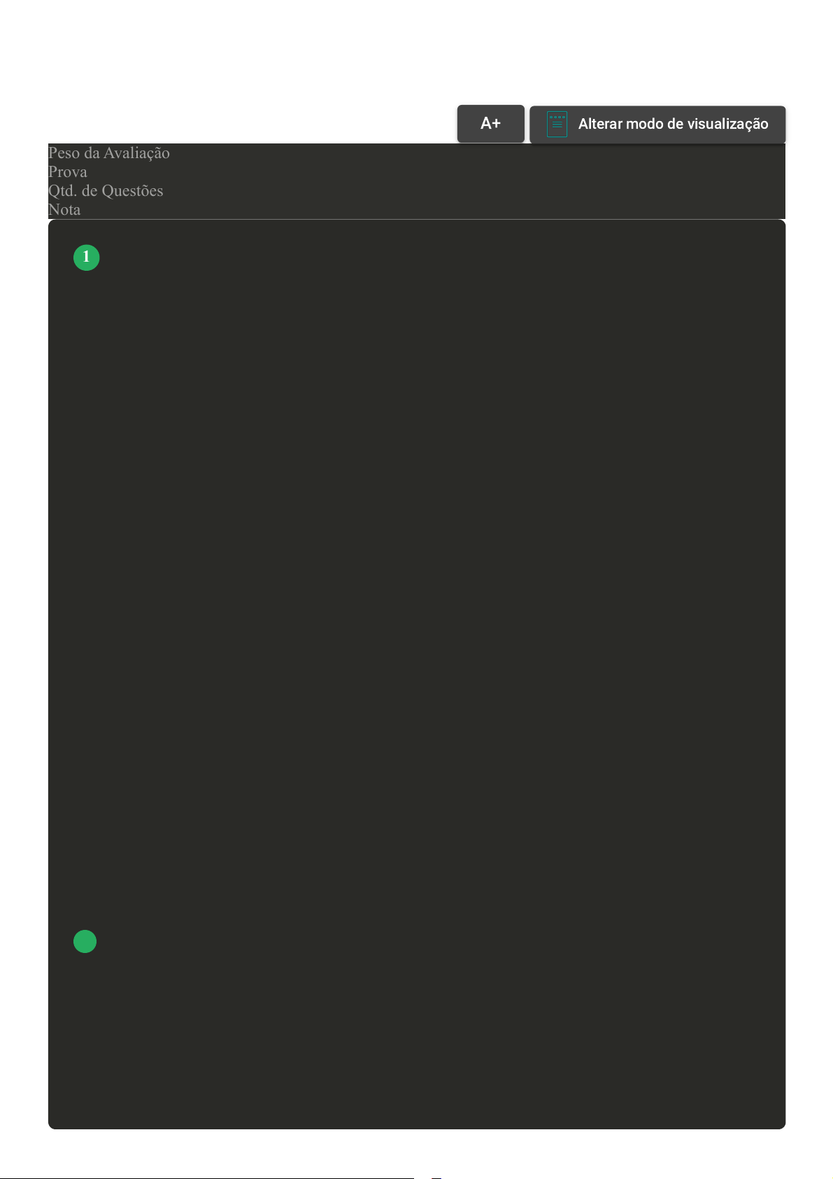 Prova Impressa GABARITO | Avaliação da Disciplina (Cod.:1519454) Peso da Avaliação 10,00 Prova 110754501 Qtd. de Questões 20 Nota 9,00 O sistema nervoso central é a parte mais complexa do sistema nervoso e é responsável por controlar e integrar todas as funções do corpo. A estrutura do sistema nervoso central é dividida em cérebro, um centro de processamento de informações responsável pela percepção, pensamento, memória, emoção e movimento. Analise as sentenças a seguir. I. O sistema nervoso sinaliza outras células e órgãos do corpo para executar a resposta apropriada. II. O sistema nervoso periférico é dividido em sistema nervoso somático e sistema nervoso autônomo. III. O crânio, as meninges e o líquido cefalorraquidiano protegem o cérebro humano. É correto o que se afirmar em: A As afirmativas I e II estão corretas. B As afirmativas I, II e III estão corretas. C Somente a afirmativa I está correta. D Somente a afirmativa II está correta. VOLTAR A+Aumentar, FonteAlterar modo de visualização 1 A termocepção é mediada por receptores específicos que detectam mudanças de temperatura no corpo, como calor e frio. A temperatura ideal para a ativação dos termoceptores varia dependendo de sua localização na pele, e, fora dessa faixa, outros receptores, como os nociceptores, entram em ação. Os termoceptores de frio são mais ativos em que faixa de temperatura? A De 33 °C a 45 °C. B De 0 °C a 5 °C. C A partir de 45 °C. D De 5 °C a 35 °C. O sistema límbico é uma das regiões encefálicas mais estudadas devido a seu papel central em uma ampla gama de funções, sobretudo relacionadas a comportamento e motivação. Sua relevância também tem sido reconhecida em pesquisas que buscam aprofundar a compreensão da neurobiologia da atenção. Nesse contexto, analise as afirmações a seguir. I. O sistema límbico é exclusivamente responsável pelas funções cognitivas superiores, sem papel direto na regulação das emoções. PORQUE 2 3 II. A amígdala está envolvida no processamento de emoções, memória emocional e resposta ao estresse, além de desempenhar um papel no processamento sensorial. Sobre as afirmativas, assinale a alternativa correta. A As duas asserções são proposições verdadeiras, mas não possuem relação entre si. B A primeira asserção é uma proposição falsa, e a segunda, uma proposição verdadeira. C As duas asserções são proposições verdadeiras, e a segunda é uma justificativa correta da primeira. D A primeira asserção é uma proposição verdadeira, e a segunda, uma proposição falsa. Os neurotransmissores são moléculas químicas essenciais que permitem a transmissão de sinais entre os neurônios no sistema nervoso. Eles desempenham papéis cruciais em processos como memória, controle motor e modulação do humor e das emoções. Nesse contexto, analise as sentenças a seguir. I. O glutamato é um neurotransmissor excitatório importante, frequentemente associado ao armazenamento de memória. II. A glicina é um neurotransmissor excitatório predominante no cérebro. III. A dopamina tem um papel no controle motor e nas recompensas emocionais. É correto o que se afirmar em: 4 A As afirmativas I, II e III estão corretas. B As afirmativas II e III estão corretas. C As afirmativas I e III estão corretas. D As afirmativas I e II estão corretas. Já parou para pensar no que um cavalo-marinho tem em comum com o cérebro humano? Esses curiosos animais, pertencentes ao gênero Hippocampus, inspiraram o nome de uma das estruturas mais importantes e conhecidas do cérebro: o hipocampo. Isso mesmo! Ao observar um corte dessa estrutura no cérebro humano, é possível notar que ela se assemelha ao formato característico de um cavalo-marinho, com sua forma enrolada e delicada. Nesse contexto, analise as afirmativas a seguir. I. O hipocampo é uma região do cérebro responsável apenas pela armazenagem de memórias de longo prazo, sem influência na formação de novas conexões neurais. PORQUE II. A neurogênese no hipocampo, que é o processo de formação de novos neurônios, contribui para a flexibilidade cognitiva e a adaptação a novas experiências, sendo crucial para a aprendizagem. Sobre as afirmativas, assinale a alternativa correta. 5 A A primeira asserção é uma proposição falsa, e a segunda, uma proposição verdadeira. B A primeira asserção é uma proposição verdadeira, e a segunda, uma proposição falsa. C As duas asserções são proposições verdadeiras, mas não possuem relação entre si. D As duas asserções são proposições verdadeiras, e a segunda é uma justificativa correta da primeira. Buzsàki, McKenzie e Davachi (2022) destacam como o cérebro tem sido pensado como uma lousa em branco altamente plástica, pronta para deixar a sua marca no mundo. Assim, levantamos a hipótese de que as redes neurais são dotadas de um repositório de trajetórias neurais, e o desafio para o cérebro é selecionar e combinar pré-trajetórias e eventos neurais existentes no mundo. Considerando a complexidade do cérebro, analise as sentenças a seguir. I. O cérebro é dividido em dois hemisférios, o esquerdo e o direito. II. O hemisfério esquerdo é dominante em habilidades de linguagem, lógica e matemática. III. O cérebro é dividido em apenas um hemisfério, o superior. É correto o que se afirmar em: A As afirmativas I e II, estão corretas. 6 B Somente a afirmativa I está correta. C Somente a afirmativa II está correta. D As afirmativas I, II e III estão corretas. De acordo com Wichamann e Kner (2022), as sinapses químicas são frequentemente chamadas de contatos intercelulares, altamente diversos em estrutura e função e especializados em mediar a comunicação entre os neurônios. Eles representam as menores unidades “computacionais” do cérebro e são frequentemente divididos nas categorias excitatória, inibitória e regulatória. A respeito das categorias das 