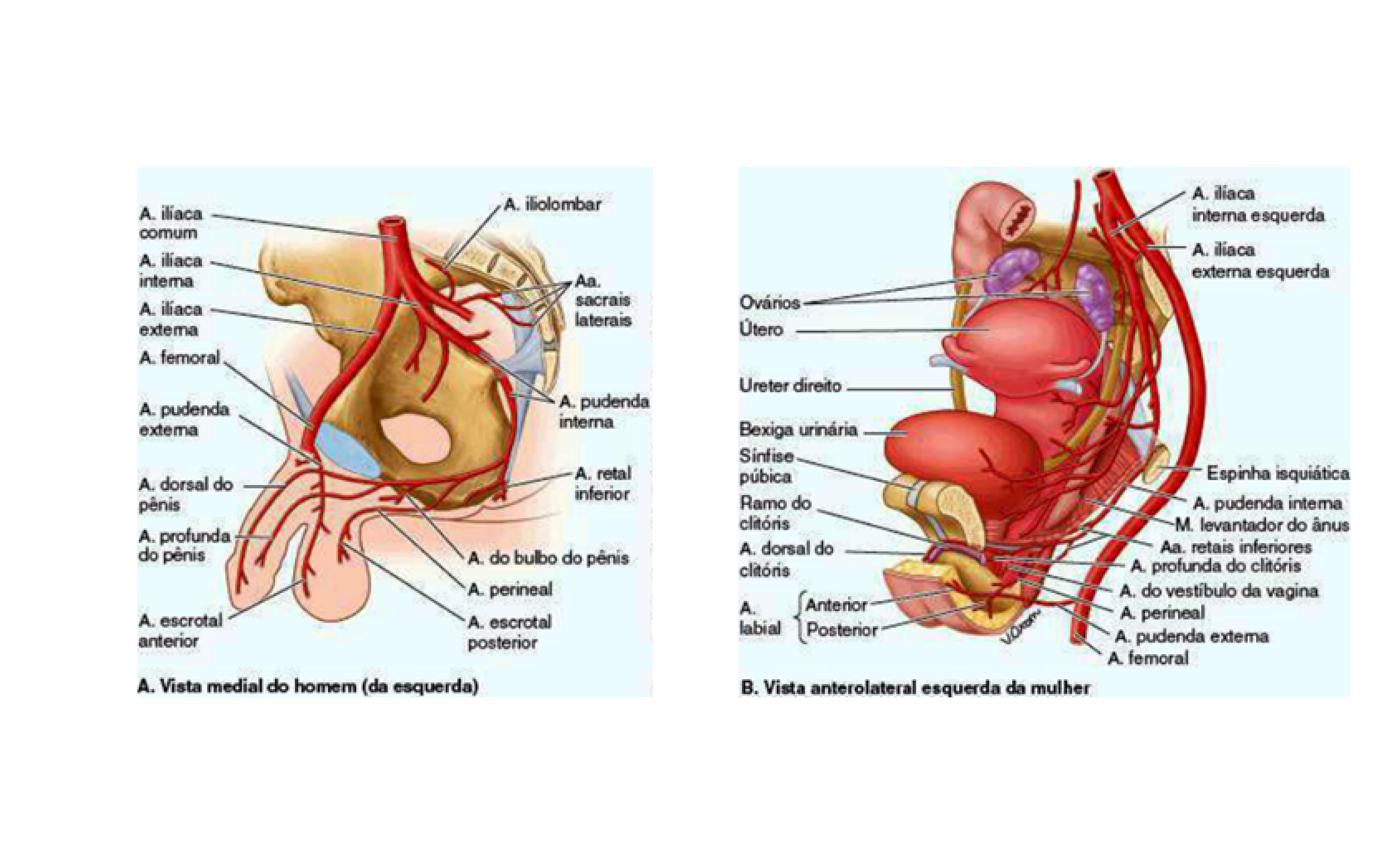 A. ilíaca A. iliolombar interna esquerda A. Aa. externa esquerda sacrais Ovários laterais Útero Ureter direito A. pudenda interna Bexiga urinária A. retal púbica Espinha isquiát inferior Ramo do A. pudenda inter clitóris M. levantador do A. dorsal do Aa. retais inferiores bulbo do pênis clitóris A. profunda do clitóris erineal A. do vestibulo da vagina A. Anterior scrotal labial Posterior A. perineal erior A. pudenda A. femoral B. Vista anterolateral esquerda da mulher