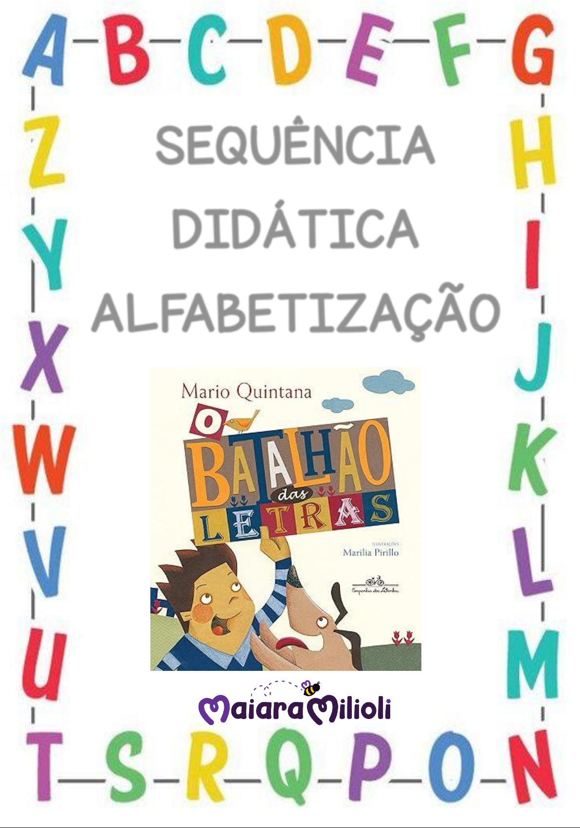 SEQUÊNCIA DIDÁTICA ALFABETIZAÇÃO LÍNGUA PORTUGUESA HABILIDADES DA BNCC ATIVIDADE CAPA DO LIVRO EF15LP15 – EF02LP06 QUEBRA-CABEÇA ALFABÉTICO – EF02LP06 LETRAS MÓVEIS NOME DO LIVRO – EF02LP04 – EF12LP01 CAMINHO DAS LETRAS - EF02LP06 ESCRITA DE PALAVRAS DE A-Z – EF02LP04 QUAL É A VOGAL? - EF02LP06 LIGAR A IMAGEM A LETRA INICIAL - EF02LP06 PINTAR PALAVRA SOM INICIAL - EF02LP06 PINTAR SÍLABAS DO NOME DA IMAGEM – EF02LP02 ATIVIDADE VOGAIS E CONSOANTES FALTOSAS – PARA DIFERENTES NÍVEIS DE ESCRITA - VOGAIS ALUNOS PRÉ-SILÁBICO E SILÁBICO SEM VALOR/ CONSOANTES DEMAIS NÍVEIS DE ESCRITA. EF02LP06 BATALHÃO DAS SÍLABAS – PARA DIFERENTES NÍVEIS DE ESCRITA – ATIVIDADE QUE PALAVRAS INICIAM COM VOGAIS PARA ALUNOS PRÉ-SILÁBICO E SILÁBICO SEM VALOR ATIVIDADE QUE PALAVRAS INICIAM COM CONSOANTES PARA DEMAIS NÍVEIS DE ESCRITA. EF02LP06 ATIVIDADE SÍLABA INICIAL - EF02LP02 ORDENAÇÃO DE VERSOS DO LIVRO – EF12LP01 – EF12LP03 -EF12LP18 ANÁLISE DE IMAGENS – EF02LP02 – EF02LP04 – EF02LP06 RIMA EF12LP07 ORDEM ALFABÉTICA EF02LP06 ATIVIDADE LETRAS MÓVEIS EF02LP04 – EF02LP06 NOME: _________________________________________________ O BATALHÃO DAS LETRAS 1 - CIRCULE O TÍTULO DO LIVRO. 2 – PINTE SOMENTE AS LETRAS DO ALFABETO PRESENTES NO TÍTULO DO LIVRO: NOME: _________________________________________________ QUEBRA-CABEÇA ALFABÉTICO 1 – PINTE AS VOGAIS E AS CONSOANTES, DEPOIS RECORTE, BRINQUE E MONTE O QUEBRA-CABEÇA NO SEU CADERNO: V O G A I S C O N S O A N T E S O BATALHÃO DAS LETRAS 1 – RECORTE AS LETRAS QUE FORMAM O NOME DO LIVRO “O BATALHÃO DAS LETRAS” E MONTE EM SEU CADERNO. FAÇA UMA BELA ILUSTRAÇÃO. O BATALHÃO DAS LETRAS 1 – RECORTE AS LETRAS QUE FORMAM O NOME DO LIVRO “O BATALHÃO DAS LETRAS” E MONTE EM SEU CADERNO. FAÇA UMA BELA ILUSTRAÇÃO. O BATALHÃO DAS LETRAS 1 – RECORTE AS LETRAS QUE FORMAM O NOME DO LIVRO “O BATALHÃO DAS LETRAS” E MONTE EM SEU CADERNO. FAÇA UMA BELA ILUSTRAÇÃO. NOME: _________________________________________________ CAMINHO DAS LETRAS 1 – PINTE AS LETRAS DO ALFABETO NA ORDEM E CHEGUE AO JARDIM DE FLORES: A B C D B R H B C E F G T P D E T H M M L K J I N N P G R Q O P Q R S E J W S R T U Z Q W R V V CHEGADA Z Y X W GABARITO DO PROFESSOR 1 – PINTE AS LETRAS DO ALFABETO NA ORDEM E CHEGUE AO JARDIM DE FLORES: A B C D B R H B C E F G T P D E T H M M L K J I N N P G R Q O P Q R S E J W S R T U Z Q W R V V CHEGADA Z Y X W NOME: _________________________________________________ O BATALHÃO DAS LETRAS 1 – ESCREVA UMA PALAVRA PARA CADA LETRA DO ALFABETO: NOME: _________________________________________________ QUAL É A VOGAL? 1 – RECORTE E COLE EM CIMA DE CADA IMAGEM A VOGAL QUE A IMAGEM INICIA: A E O U E I I A U O A U COLAR COLAR COLAR COLAR COLAR COLAR COLAR COLAR COLAR COLAR COLAR COLAR NOME: _________________________________________________ O BATALHÃO DAS LETRAS 1 – LIGUE CADA IMAGEM A SUA LETRA INICIAL E DEPOIS FAÇA DESENHOS QUE INICIEM COM ESSA LETRA: NOME: _________________________________________________ O BATALHÃO DAS LETRAS 1 - CIRCULE AS PALAVRAS QUE TEM O MESMO SOM DA LETRA INICIAL DA FIGURA: PATO LAGOA TAPETE JILÓ NAVIO GATO BOLA CORUJA LAÇO LIXO ESQUILO REMO PIMENTA VARINHA FIGURA FACA TIJOLO VENENO ABACAXI MORANGO PÊRA NOME: _________________________________________________ O BATALHÃO DAS LETRAS 1 – PINTE AS SÍLABAS QUE FORMAM O NOME DA IMAGEM E DEPOIS ESCREVA O NOME QUE FORMOU: GA VA LI CA MA LA NA PA ZA FO VA I CA E TI O DE VO LÃO ÃO DA JA BA TA LA PA RA TE U LI CA JA NA VA PA LE NOME: _________________________________________________ O BATALHÃO DAS LETRAS 1 – COMPLETE AS PALAVRAS COM AS VOGAIS FALTOSAS E DEPOIS REESCREVA-AS: J C R X C R R B F R M G S C D _________________________ _________________________ _________________________ _________________________ _________________________ NOME: _________________________________________________ O BATALHÃO DAS LETRAS 1 – COMPLETE AS PALAVRAS COM AS CONSOANTES FALTOSAS E DEPOIS REESCREVA-AS: A A É Í A A U U U O I A E U O _________________________ _________________________ _________________________ _________________________ _________________________ NOME: _________________________________________________ BATALHÃO DAS SÍLABAS 1 – ESCREVA A LETRA INICIAL DE CADA PALAVRA E DEPOIS PINTE UMA BOLINHA PARA CADA SÍLABA DESSA PALAVRA: NOME: _________________________________________________ 1 – ESCREVA A LETRA INICIAL DE CADA PALAVRA E DEPOIS PINTE UMA BOLINHA PARA CADA SÍLABA DESSA PALAVRA: BATALHÃO DAS SÍLABAS NOME: _________________________________________________ SÍLABA INICIAL 1 – PINTE A IMAGEM QUE INICIE COM A MESMA SÍLABA EM DESTAQUE E DEPOIS ESCREVA ESSA PALAVRA: JA ___ ___ ___ ___ ___ ___ XÍ ___ ___ ___ ___ ___ ___ A ___ ___ ___ ___ ___ ___ ___ NOME: _________________________________________________ O BATALHÃO DAS LETRAS 1 – RECORTE E COLE NO SEU CADERNO O VERSINHO DA LETRA H CORRETAMENTE COM H SE ESCREVE HOJE MAS “ONTEM” NÃO TEM H... POIS O QUE IMPORTA NA VIDA É O DIA QUE VIRÁ! NOME: _________________________________________________ O BATALHÃO DAS LETRAS 1 – RECORTE E COLE NO SEU CADERNO O VERSINHO DA LETRA H CORRETAMENTE AO ROER O QUEIJO DO PRATO. OS RATOS MORREM DE RISO QUEM RI POR ÚLTIMO É O GATO. MAS PARA QUE TANTO RISO? NOME: _________________________________________________ O BATALHÃO DAS LETRAS 1 – PREENCHA AS INFORMAÇÕES SOLICITADAS: PALAVRA LETRA INICIAL LETRA FINAL QUANTAS LETRAS? QUANTAS SÍLABAS? RIMA COM: PALAVRA LETRA INICIAL LETRA FINAL QUANTAS LETRAS? QUANTAS SÍLABAS? RIMA COM: PALAVRA LETRA INICIAL LETRA FINAL QUANTAS LETRAS? QUANTAS SÍLABAS? RIMA COM: PALAVRA LETRA INICIAL LETRA FINAL QUANTAS LETRAS? QUANTAS SÍLABAS? RIMA COM: NOME: _________________________________________________ O BATALHÃO DAS LETRAS 1 – PREENCHA AS INFORMAÇÕES SOLICITADAS: PALAVRA LETRA INICIAL LETRA FINAL QUANTAS LETRAS? QUANTAS SÍLABAS? RIMA COM: PALAVRA LETRA INICIAL LETRA FINAL QUANT