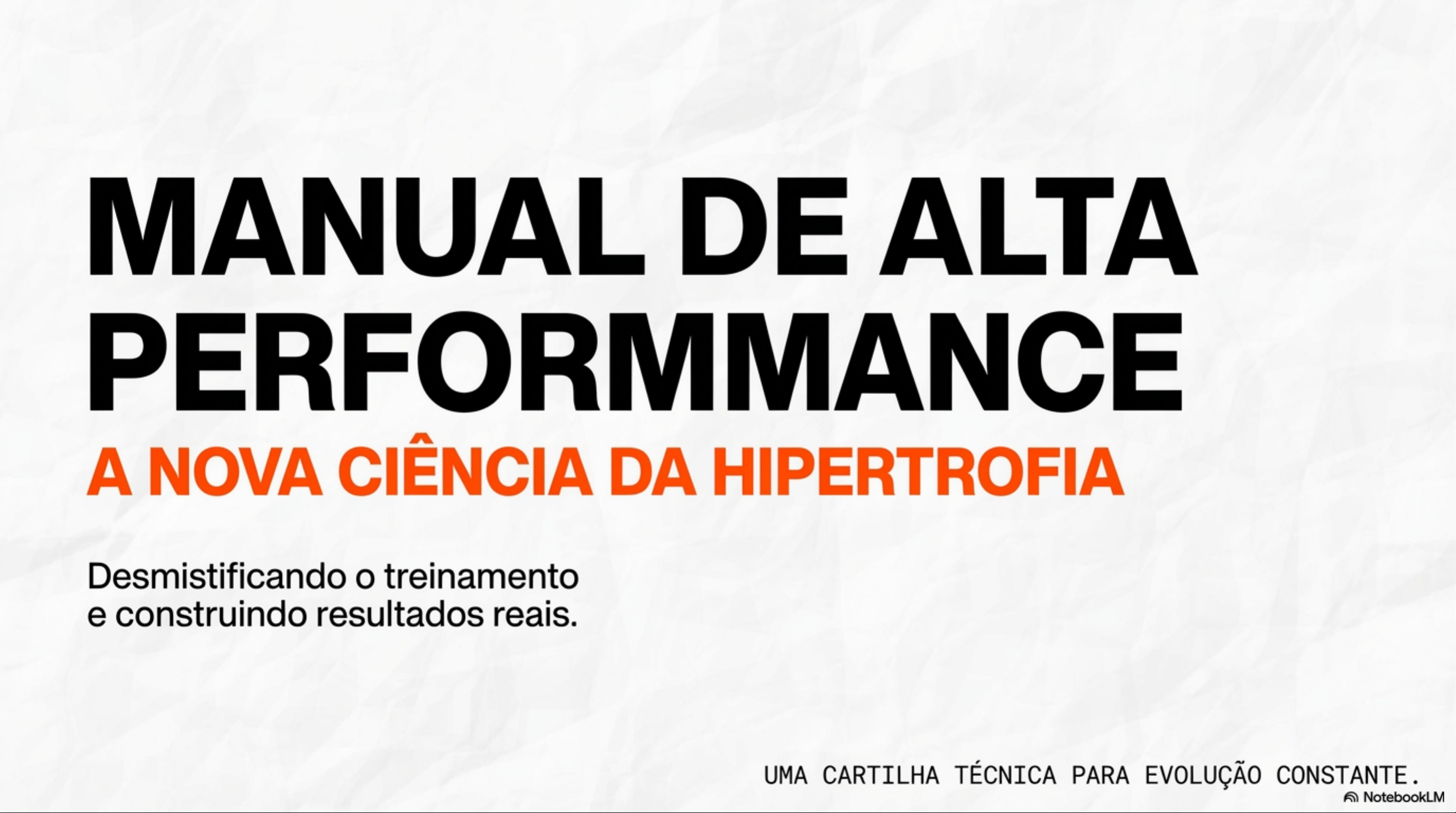 MANUAL DE ALTA PERFORMMANCE A NOVA CIÊNCIA DA HIPERTROFIA Desmistificando o treinamento e construindo resultados reais. UMA CARTILHA TÉCNICA PARA EVOLUÇÃO CONSTANTE. NotebookLMMuscle fiber Myofibril Sarcomeres Growth Sarcomere Myofibrils 2-disc EVOLUCÃO Myofibrils Sarcomeres Z-disc Sarcomere A NOVA MENTALIDADE Para obter corpo que você deseja, é preciso parar de treinar buscando a dor e começar a treinar buscando a evolução. treino não é um castigo calórico. treino é um sinal de construção. NotebookLMNUTRIÇÃO: CORPO NÃO TEM RELÓGIO, TEM SALDO MITO A VERDADE Calorias IN Calorias OUT Mito: Comer após as 18h engorda. Verdade: relógio não engorda ninguém. que determina peso é o saldo Mito: Alimentos específicos (arroz, pão, calórico diário (Déficit vs. Superávit). banana) engordam. Verdade: Nenhum alimento isolado engorda. contexto da dieta e equilíbrio geram a constância. NotebookLMMITO DO "TREINO DE SECAR" Todo treino deve buscar hipertrofia. PROTEÇÃO Quem define se você perde gordura Mais Músculo ou ganha peso é a DIETA. = Metabolismo mais ativo e melhor treino serve para construir e sensibilidade manter massa magra. à insulina. Não tenha medo de crescer: corpo definido é um corpo com músculos e pouca gordura. NotebookLMDOR NÃO É SINÔNIMO DE RESULTADO MITO: Dano Muscular A CIÊNCIA: Tensão Mecânica A crença: "Se não doer, treino foi ruim." Foco Real: A Realidade: A dor tardia não é um A hipertrofia depende de tempo sob indicador confiável de eficiência. Você alta tensão e progressão, não do pode destruir músculo sem grau de sofrimento. estimulá-lo a crescer. NotebookLMA HIERARQUIA DA HIPERTROFIA A execução correta é soberana. É mais importante do que aumentar a carga de forma errada. CARGA A carga é relativa ao seu corpo. TENSÃO Respeite seus limites: MECÂNICA progressão de carga começa com domínio do movimento. Hipertrofia é gerada por Tempo EXECUÇÃO sob Tensão, não por malabarismo com pesos CORRETA excessivos. NotebookLMVARIÁVEIS CRÍTICAS: INVISÍVEL QUE GERA RESULTADO DESCANSO descanso entre as séries é crucial para repor 0:00 energia e manter a performance. 1:30 4:00 MINUTOS Pro-Tip ESTABILIDADE Em treinos de perna, use calçados de solado reto (flat). Melhora postura, aumenta a segurança e a transferência de força. NotebookLMQUE ÉA FALHA REAL? FALHA Zona de Conforto Dificuldade MECÂNICA ! A falha não é quando dói. A falha é mecânica. Quando a execução começa ficar involuntariamente lenta (grinding). Quando não é mais possível mover peso com técnica correta. Entender a proximidade da falha é segredo para uma boa evolução. NotebookLMA ESTRUTURA DA SESSÃO DE TREINO TOP SETS Desempenho WORKING máximo. SETS Carga alta e intensidade total. Séries de trabalho FEEDER SETS com carga Séries de desafiadora. AQUECIMENTO reconhecimento. Preparação articular Preparação do e aumento de sistema nervoso para temperatura. a carga real. NotebookLMA METODOLOGIA DE PROGRESSÃO DE CARGA A REGRA DOS 2-5%: META DE EXECUÇÃO REPETIÇÕES A progressão deve ser feita PERFEITA de 2% a 5% do peso total. ATINGIDA ESTRATÉGIA DE PLATÔ: Se a carga for alta demais para subir 2%: Mantenha peso e tente aumentar as REPETIÇÕES. AUMENTO 0 objetivo é sempre fazer DE CARGA mais do que no treino (2% a 5%) anterior. NotebookLMAPLICAÇÃO PRÁTICA SUPINO (BENCH PRESS) LEG PRESS Estabilize movimento. Pés firmes (solado reto). Use Feeder Sets para chegar ao peso Amplitude máxima segura. de trabalho. Progressão pequena = Toneladas de Na Top Set, busque a falha técnica. volume extra ao final do ano. NotebookLMCONSTÂNCIA É SEGREDO Desmistificamos a dor e medo da comida. Entendemos que a tensão mecânica e a execução perfeita constroem músculos. Respeite descanso. Anote suas cargas. Vença seu treino anterior, não a sua anatomia. CONSULTORIA DE ALTA PERFORMANCE NotebookLM