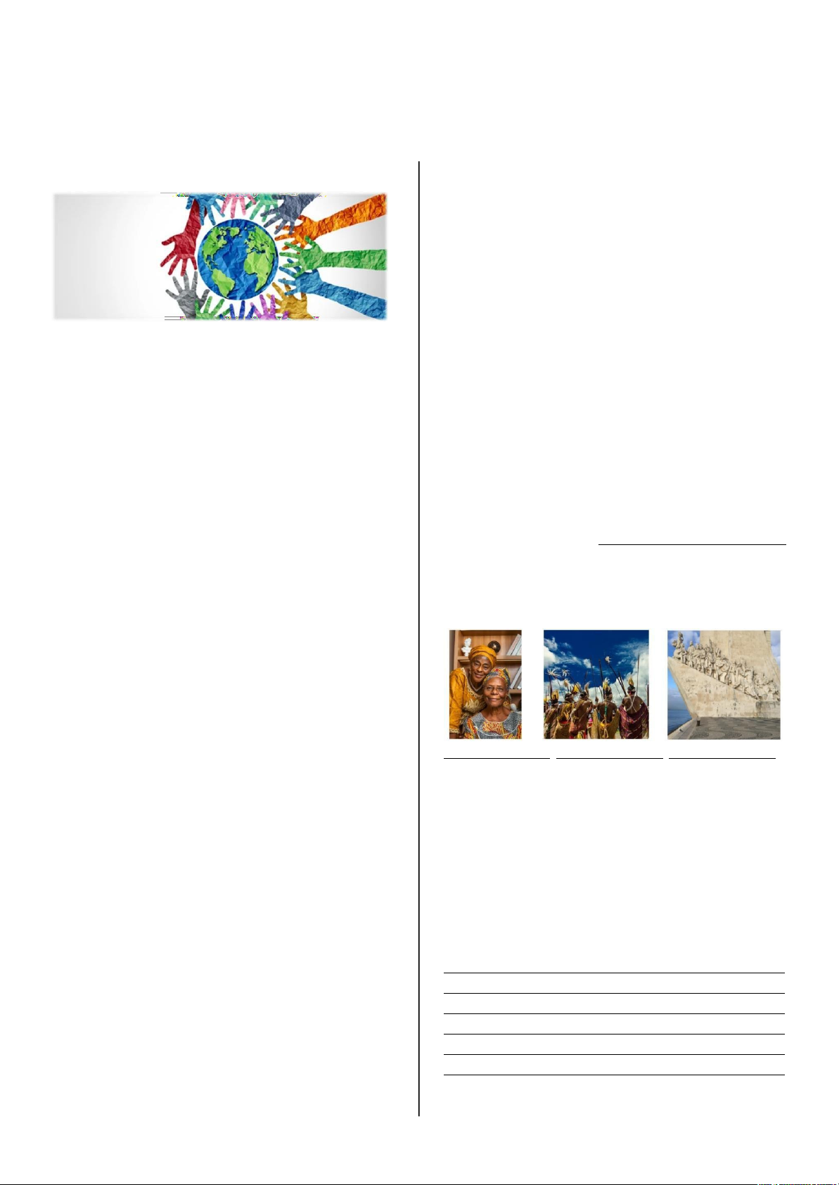 A FORMAÇÃO CULTURAL DO BRASIL A cultura do Brasil é muito diversa e foi construída pela união de diferentes povos. Esse processo de mistura é chamado miscigenação. As três influências mais importantes na nossa formação cultural são: indígena, africana e portuguesa. Os Povos Indígenas Muito antes da chegada dos europeus, o território onde hoje está o Brasil já era habitado por diversos povos indígenas. Eles são os povos originários e possuíam suas próprias línguas, costumes e conhecimentos. A presença indígena continua viva no nosso dia a dia: em palavras que usamos (como mandioca, jacaré e pipoca), na alimentação (com o milho, a mandioca, a tapioca e o beiju) e em técnicas importantes de agricultura, pesca e uso de plantas medicinais. Os Povos Africanos Os africanos foram trazidos à força para o Brasil, escravizados pelos portugueses. Apesar de toda a violência que sofreram, trouxeram uma enorme riqueza cultural e mantiveram vivas suas tradições. A influência africana é muito forte na música (como no samba, maracatu e afoxé), na religião (como o Candomblé e a Umbanda) e na culinária, com pratos famosos como o acarajé e a feijoada. Os Portugueses O termo “colonizadores” para designar os portugueses gera debates na comunidade científica, pois, quando eles desembarcaram no Brasil, o território já era habitado por diversos povos indígenas. Entretanto, durante o período chamado de colonização, a cultura europeia se tornou a base da organização da sociedade. A herança mais evidente é a língua portuguesa, que falamos até hoje. Além disso, trouxeram o catolicismo e influenciaram a arquitetura de muitas cidades históricas, com suas igrejas e casarões. Refletindo A cultura brasileira não é apenas a soma de diferentes partes. Ela é o resultado da convivência — muitas vezes marcada por dores, resistências e lutas — entre esses três povos. Compreender essa formação é também compreender a identidade do povo brasileiro, marcada pela diversidade, pela riqueza cultural e por uma história única. Larissa Fonteles, TSA -ˇ‹],‘de plástico e os casacos de lã. Diferentes materiais são retirados da natureza para a fabricação desses objetos. Assim sendo, os materiais podem ser classificados em três tipos: · Vegetal: quando são adquiridos de plantas. · Animal: quando são adquiridos de animais. · Mineral: quando são adquiridos do solo. A ENERGIA Não somos capazes de ver, cheirar, tocar ou sentir a energia. Então, a melhor forma de percebê-la é através de sua transformação em energia elétrica, que chega pela tomada, onde faz as luzes ligarem,girar as pás de um ventilador, ligar uma geladeira ou ainda em energia sonora, que possibilita os rádios e as televisões funcionarem. Existem vários tipos de energia, sendo elas: · Energia térmica: está relacionada com a temperatura e o calor. •Energia elétrica: é a mais utilizada pelas pessoas, capaz de gerar eletricidade para ruas, casas e empresas. · Energia mecânica: está relacionada à produção de trabalho e pode ser transferida por meio de uma força. · Energia radiante: aparece em forma de calor, raios ou luzes, podendo atravessar objetos e espaços vazios. •Energia química: é liberada em uma reação química, como acontece nas pilhas e baterias. Matemática : Leia e observe as informações do quadro abaixo para responder às quatro questões a seguir. Leia e observe as informações do quadro abaixo para responder às quatro questões a seguir. A vendedora de uma barraca de frutas da feira da cidade vende suas frutas por quilograma ou por caixa. Observe abaixo essa vendedora em sua barraca e as indicações do preço de algumas caixas de frutas. Ensino Religioso. M Matemática Geografia CIRCULE CADA PALAVRA QUE ENCONTRAR COM UMA COR DIFERENTE. Mamulengo Geografia OCUPAÇÃO DO TERRIÓRIO GOIANO A ocupação do território goiano é marcada por uma história rica e complexa, que envolve diversos atores e processos históricos, desde a colonização até os dias atuais. A ocupação do território goiano remonta ao período colonial do Brasil, quando a região era habitada por diversas tribos indígenas. Com a chegada dos portugueses, a exploração das riquezas naturais da região, como o ouro e demais pedras preciosas, atraiu a atenção de exploradores, bandeirantes e aventureiros, que foram responsáveis pela formação das primeiras vilas e povoados. Durante o século XIX, a expansão da pecuária e a construção de estradas de ferro foram importantes fatores para a ocupação do território goiano. Com a abertura da Estrada de Ferro de Goiás, o transporte de produtos agropecuários tornou-se mais fácil e barato, o que estimulou a ocupação de novas áreas e a formação de novos núcleos urbanos. No início do século XX, o governo federal lançou o Plano de Valorização Econômica da Região do Brasil Central, que tinha como objetivo integrar a região ao restante do país e desenvolver sua economia. Isso impulsionou a chegada de novos migrantes, principalmente do nordeste brasileiro, que se estabeleceram em busca de terras férteis e oportunidades de trabalho. Durante as décadas seguintes, a ocupação do território goiano continuou a crescer, impulsionada pela expansão da agricultura e da agropecuária, pela instalação de grandes empresas e indústrias e pela chegada de migrantes de outras regiões do país e de imigrantes estrangeiros. Hoje, Goiás é um estado bastante diversificado, com uma economia baseada na agricultura, pecuária, indústria, comércio e serviços. A ocupação do território goiano foi um processo complexo e histórico, que envolveu a exploração de riquezas naturais, a expansão da pecuária e da agricultura, a construção de infraestrutura e a chegada de migrantes e imigrantes. image4.jpeg image93.jpeg image94.png image95.jpeg image96.png image97.jpeg image98.jpeg image99.jpeg image100.jpeg image101.jp