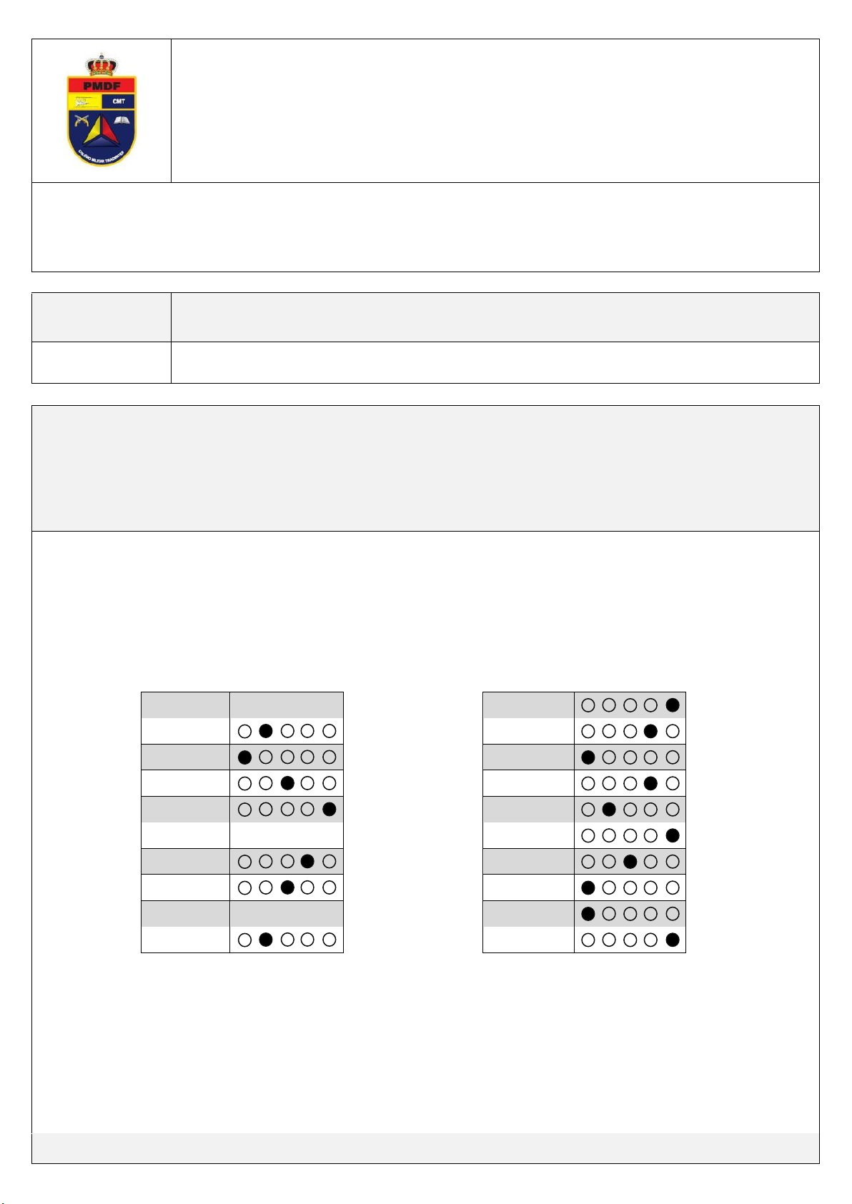 Governo do Distrito Federal Polícia Militar do Distrito Federal Colégio Militar Tiradentes GABARITO DEFINITIVO Número de Inscrição: Nome do Candidato: *** ******** 6º Ano - Ensino Fundamental Prova de Língua Portuguesa Questão 01 ANULADA Questão 11 A B C D E Questão 02 A B C D E Questão 12 A B C D E Questão 03 A B C D E Questão 13 A B C D E Questão 04 A B C D E Questão 14 A B C D E Questão 05 A B C D E Questão 15 A B C D E Questão 06 ANULADA Questão 16 A B C D E Questão 07 A B C D E Questão 17 A B C D E Questão 08 A B C D E Questão 18 A B C D E Questão 09 ANULADA Questão 19 A B C D E Questão 10 A B C D E Questão 20 A B C D E Processo Seletivo de Admissão 2015/2016 Data de Aplicação: 05/09/2015