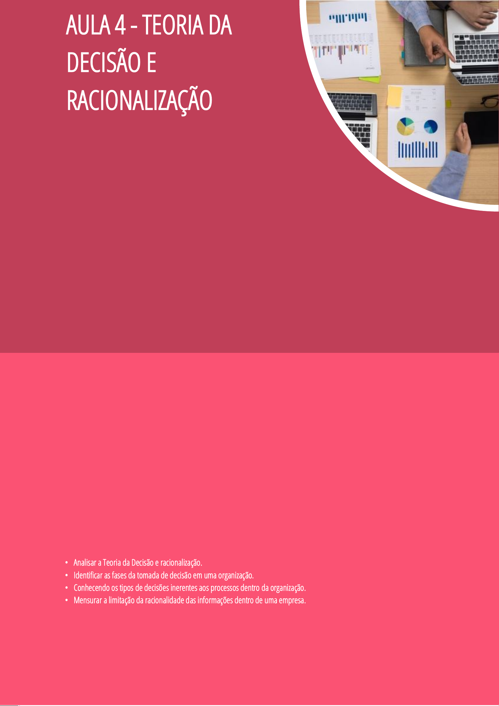 • Analisar a Teoria da Decisão e racionalização.