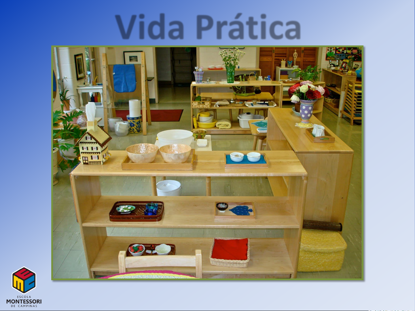Vida Prática OBJETIVOS: • Introduzir a Área de Vida Prática na sala Montessori O QUE É? Vida: Maneira de viver http://www.google.com.br/url?sa=i&rct=j&q=children+working+in+Practical+life+montessori+activities&source=images&cd=&cad=rja&docid=NwGiTPkCvE7RAM&tbnid=cnDX9FrmjFRyNM:&ved=0CAUQjRw&url=http://trilliummontessori.org/curriculum/practical-life/&ei=njDaUb6tGYnC9QSM94CwDA&psig=AFQjCNGpuktFgIIsWzTgUOZxKbbLu7YNLQ&ust=1373340039211165 Prática: Básica, Útil e com Propósito http://www.google.com.br/url?sa=i&rct=j&q=sweeping+the+floor+montessori&source=images&cd=&cad=rja&docid=Uxg7b7I216oM6M&tbnid=3H8b88r7TBxAaM:&ved=0CAUQjRw&url=http://www.ctparent.com/archive/11-07-montessori.htm&ei=By7aUaqpAY7y8ATV0YGIDQ&psig=AFQjCNFq7Z30TTtIiYaRVx1H7q-TWkXDPA&ust=1373338985251387 Realiza atividades da vida com um propósito Área de Vida Prática “Ajuda-me a fazer sozinha…” Dra. Maria Montessori PROPÓSITO Ação “De acordo com as leis naturais do desenvolvimento, a criança se preocupa com duas coisas fundamentais: … amor pela ação… e liberdade.” Dra. Maria Montessori Coordenação Social Libertar do Adulto Corpo e Mente Corpo e Mente ✓ Ajuda a criança a se concentrar; ✓ Facilita a coordenação do movimento; ✓ Torna a aprendizagem fácil e divertida; ✓ Permite que a criança repita e descubra. AMBIENTE PREPARADO Preparado 1. Familiar 2. Real 3. Quebrável 4. Funcional 5. Ligados à cultura local 6. Completo 7. Ordem na estante 8. Atraente Materiais Materiais PROFESSOR Apresentar Seduzir Conhecer os materias – Albúns. Professor Conhecer as crianças – Observações. Professor http://www.google.com.br/url?sa=i&rct=j&q=montessori+teacher+observing&source=images&cd=&cad=rja&docid=dLX0ZvpF-KmDPM&tbnid=JZV53np2hjahCM:&ved=0CAUQjRw&url=http://www.montessoricircle.com/&ei=6fDaUeAoyqSKAsGtgdgG&bvm=bv.48705608,d.cGE&psig=AFQjCNGM9U2VdwH9lwlmd_3gdCJw4lRh4w&ust=1373389336657816 Proporcionar um ambiente que estimula e acolhe. Professor “Numa Escola Montessori o professor é apenas um convidado, ou alguém que tenha em mente estar a serviço dos seus alunos .” Dra.Maria Montessori ÁREAS DE VIDA PRÁTICA 1. Exercícios Gerais de Movimento e Refinamento dos Movimentos 2. Cuidados Pessoais 3. Cuidados com o Meio Ambiente 4. Relações Sociais Áreas de Vida Prática Exercícios Gerais de Movimento Refinamento dos Movimentos http://www.google.com.br/url?sa=i&rct=j&q=pouring+in+a+montessori+3+to+6+classroom&source=images&cd=&cad=rja&docid=NiMR2cXPfD6fCM&tbnid=HjxCZkGdb7pzfM:&ved=0CAUQjRw&url=https://www.facebook.com/TwinklersMontessoriSchool&ei=jPzaUeGEIqqNigK5jYDgAQ&bvm=bv.48705608,d.cGE&psig=AFQjCNFd21qQELAdK_97924hLo6z_dK0lQ&ust=1373391851905410 Cuidados Pessoais Relações Sociais LINHA MONTESSORI Linha Montessori Surgiu a partir da observação da Dra. Maria Montessori que percebeu o interesse das crianças em caminhar sobre os trilhos do trem. Linha Montessori • Precisa ser menor que os pés das crianças – um pé na frente do outro; • Pode ser pintada no chão, feita com fita adesiva, barbante; • Pode ser uma criança de cada vez; • Pode ser todos os alunos de uma vez concentrados em pisar com um pé na frente do outro; • Pode ser todos os alunos fazendo muito movimento trabalhando a coordenação grossa; • Pode ser no ritmo de uma música lenta ou rápida ou nas batidas de algum instrumento. Linha Montessori Pode-se ter uma cesta ou bandeja que forma o Kit Linha e fica disponível na estante. CONSEQUÊNCIA Responsabilidade Independência Competência Auto-confiança Gosto pelo Trabalho LIMITES Os “Limites” ✓ Se outra criança está usando o material, então a atividade não é uma opção para esse momento. ✓Os materiais são utilizados para uma atividade singular e intencional. Os “Limites” "Deixar a criança fazer o que quiser, quando ela ainda não desenvolveu nenhum poder de controle, é trair a ideia de liberdade.” Dra. Maria Montessori OBJETIVO DIRETO Todas as Atividades da Área de Vida Prática SEMPRE Objetivo: Coordenação Concentração Ordem Independência Descubra um método eficiente e eficaz: 1. Pratique sozinho muito devagar; 2. Divida em pequenas ações; 3. Escreva as ações; 4. Elimine os movimentos excessivos; 5. Inclua os movimentos necessários para o SUCESSO! Basic Montessori, David Gettman Apresentação Obrigada! Elizandra de Assis Arten