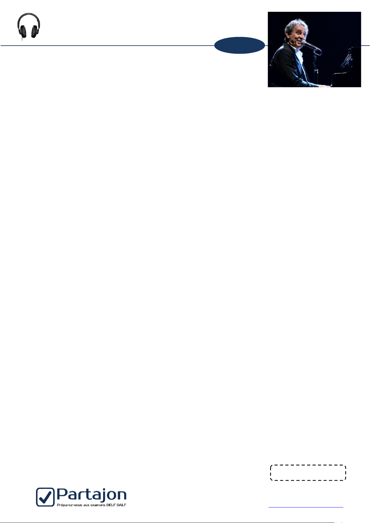 © 2018 www.partajondelfdalf.com J’ai noté (Romain Didier) 1. COMPRÉHENSION : Écoutez la chanson de Romain Didier et complétez les espaces vides avec les nombres correspondants : Ça fait ................................. heures qu'on a passées dans le même lit Dont ................................... à faire l'amour et ............................. pour maladie J'ai noté ............................... p’tits déjeuners à étaler dans la cuisine ............................... kilos de beurre salé sur cent dix mètres carrés d'tartine J'ai noté ............................... heures à se faire la guerre et trois cents autres à s'insulter ............................... roses anniversaires et ........................... pour me faire pardonner J'ai noté Environ ............................... mouchoirs en ouate de cellulose Dont les trois-quarts pour te moucher et le restant pour pas grand-chose J'ai noté ................................. je vais te quitter et ............................ je vais rester J'hésite encore, pour les baisers, à compter le nombre ou le temps passé J'ai compté près de .................................. repas en tête-à-tête de préférence À échanger le pain et l'eau et des propos sans importance J'ai noté ............................... omelettes, huit cents poulets, ........................ plats plus difficiles Et à chaque fois ............................ coups de balai, au bout du compte ................................ J'ai noté ............................... départs le vendredi et forcément .............................. retours Soit six cents heures entre Paris et le triangle de Rocquencourt J'ai noté Tous niveaux C2 Tournez la page SVP http://www.partajondelfdalf.com/ © 2018 www.partajondelfdalf.com ............................... de secondes depuis qu'on fait horloge commune À moins qu'il faille quand on est deux compter le temps plutôt deux fois qu'une J'ai noté ................................. je vais te quitter et ............................ je vais rester J'hésite encore, pour les baisers, à compter le nombre ou le temps passé ............................... samedis après-midi soit douze cents heures à entasser Deux à trois tonnes de cochonneries dans des caddies de supermarché J'ai noté ............................... restos, ............................. musées, deux mille journaux télévisés ............................... sorties ciné dont un bon tiers pour des navets J'ai noté ............................... antidouleurs sans acétylsalicylique Un litre et demi de Chanel 5, ............................... kilos de cosmétique J'ai noté Rien qu'pour les trois premières années ............................... je t'aime ............................... en tout pour les suivantes et à peine ................................. pour la dixième J'ai noté ................................. je vais te quitter et ............................ je vais rester J'hésite encore, pour les baisers, à compter le nombre ou le temps passé 2. LOGIQUE : En analysant les quantités exprimées dans cette chanson, déduisez depuis combien de temps le chanteur et sa femme vivent ensemble : ............................................................................................................................................................................................................................................ Tournez la page SVP http://www.partajondelfdalf.com/ © 2018 www.partajondelfdalf.com 3. PRODUCTION ORALE : Vous dégagerez le problème soulevé par le document ci-dessous puis vous présenterez votre opinion sur le sujet de manière claire et argumentée (5 à 7 minutes). Si nécessaire, vous défendrez votre point de vue au cours du débat avec l’examinateur. Elles transforment votre divorce en promenade de santé Quitte à se quitter, autant bien faire les choses. Deux Lilloises ont développé le site onsesepare.com, un concept d’agence offrant un accompagnement aux mariés, pacsés ou concubins qui ont décidé de se séparer. Du clé en mains à un prix compétitif. Alice et Sophia sont deux trentenaires, chacune en couple et chacune heureuse en ménage. C’est un ami commun, confronté à un divorce et plusieurs séparations, qui leur a donné l’idée de créer Onsesepare.com : « Nous ne sommes pas dans une démarche de coaching de la séparation. Les couples qui viennent nous voir ont déjà pris leur décision, explique Sophia Tchicaya, co- fondatrice. Notre mission est de maintenir un dialogue qui demeure fragile, même entre des personnes qui ont décidé de faire les choses à l’amiable ». « Ça peut paraître triste de travailler avec des gens qui se séparent, déplore la jeune femme. Mais finalement, nous aidons à faire descendre la pression de cette situation difficile. Certes nos clients divorcent, mais au moins le font-ils sereinement ». Le 11/01/2018 sur le site Internet du journal 20 minutes 4. PRODUCTION ÉCRITE : En 250 mots, racontez de quoi est faite, selon vous, une vie à deux ? Que pouvez-vous rajouter à la chanson de Romain Didier ? http://www.partajondelfdalf.com/ https://www.onsesepare.com/ https://www.20minutes.fr/dossier/divorce https://www.20minutes.fr/dossier/divorce