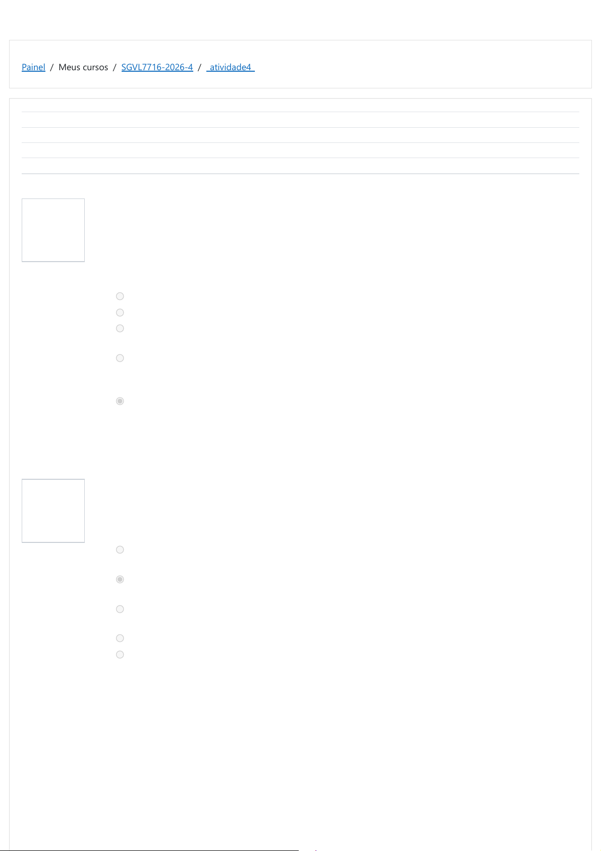 Painel / Meus cursos / SGVL7716-2026-4 / _atividade4_ Questão 1 Correto Nota 10,00 de 10,00 Questão 2 Correto Nota 10,00 de 10,00 Começou em domingo, 1 de março de 2026, 7:51 Estado Finalizado Concluído em domingo, 1 de março de 2026, 7:58 Tempo decorrido 6 minutos e 40 segundos Nota 50,00 de 50,00 ( 100 %) Sobre a Resolução CNJ nº 348/2020, que estabelece diretrizes e procedimentos a serem observados pelo Poder Judiciário no âmbito criminal, com relação ao tratamento da população lésbica, gay, bissexual, transexual, travesti ou intersexo que seja custodiada, acusada, ré, condenada, privada de liberdade, em aplicação de medidas alternativas penais ou monitoradas eletronicamente, é afirmado: Selecione uma opção: um. utiliza a sigla LGBTI em sentido amplo; b. garantir assistência religiosa às pessoas LGBTI em privação de liberdade. c. garantir às pessoas LGBTI, sem discriminação, direito ao estudo, ao trabalho e aos demais direitos previstos em instrumentos legais e prejudiciais à população privada de liberdade. d. suas disposições têm por objetivo garantir o direito à vida, integridade física e mental, integridade sexual, segurança do corpo, liberdade de expressão da identidade de gênero e orientação sexual, ao reconhecimento do direito à autodeterminação de gênero e sexualidade da população LGBTI; e. não se aplica a adolescentes infratores(as); A resposta correta é: não se aplica-se a adolescentes infratores(as); Considerando os deveres do(a) gestor(a) da unidade prisional em relação às pessoas transexuais e travestis, assinale uma alternativa que não corresponda a uma providência a ser cumprida: Selecione uma opção: um.alocar a pessoa no espaço de vivência específico (ala ou cela), separado do convívio dos(as) demais presos(as), caso tenha sido essa sua opção. b. orientar os(as) agentes presos e demais servidores(as) a se reportarem a pessoa transexual ou travesti pelo nome constante do documento oficial de identificação, ainda que não tenha sido retificado; c. perguntar como uma pessoa se identifica em relação à identidade de gênero, confirmando a escolha realizada; d. perguntar o nome social da pessoa, incluindo-o no formulário e demais documentos usados na unidade; e. promover que todos(as) os(as) agentes prisionais e demais servidores(as) se reportem à pessoa fazendo uso do nome social; A resposta correta é: orientar os(as) agentes presos e demais servidores(as) a se reportarem a pessoa transexual ou travesti pelo nome constante do documento oficial de identificação, ainda que não tenha sido retificado; https://eadsegen.mj.gov.br/my/ https://eadsegen.mj.gov.br/course/view.php?id=3649 https://eadsegen.mj.gov.br/mod/quiz/view.php?id=20658 Questão 3 Correto Nota 10,00 de 10,00 Question 4 Correct Mark 10.00 out of 10.00 Em relação ao direito de visita às pessoas LGBTI em privação de liberdade, assinale uma alternativa incorreta: Selecione uma opção: um.não pode haver o indeferimento do direito de visita com base na orientação sexual e/ou de gênero da pessoa presa. b. a visita do cônjuge, do(a) companheiro(a) em união estável, de parentes e de amigos(as) às pessoas LGBTI presas deve ser realizada nos termos disciplinados nas regras gerais aplicáveis às demais pessoas presas, respeitadas a identidade de gênero e orientação sexual; c. nos procedimentos de identificação e revista dos(as) visitantes LGBTI devem ser respeitadas sua orientação sexual e sua identidade de gênero, vedadas quaisquer práticas discriminatórias. Deve ser observado, se for o caso, o uso do nome social do(a) visitante. d. caso a pessoa presa LGBTI esteja internada no pavilhão hospitalar ou enfermaria e impossibilitada de se locomover, ou em tratamento psiquiátrico, poderá receber visita no próprio local da internação ou em outro, de acordo com as regras da unidade. A visita ao(à) preso(a) internado(a) em unidades de saúde externas observará as regras da unidade. e. à pessoa visitante LGBTI que faça uso de acessórios, como apliques ou perucas, deve ser dada a orientação para retirá-los, como condição para ingresso na unidade. The correct answer is: à pessoa visitante LGBTI que faça uso de acessórios, como apliques ou perucas, deve ser dada a orientação para retirá-los, como condição para ingresso na unidade. Em relação à revista pessoal de pessoas LGBTI nas unidades prisionais, é incorreto afirmar que: Select one: a. em homens cisgênero gays deve ser feita por policiais penais femininas habilitadas a fazer a revista; b. em travestis deve ser feita por policiais penais femininas habilitadas a fazer a revista; c. em mulheres cisgênero lésbicas deve ser feita por policiais penais femininas habilitadas a fazer a revista; d. em homens trans deve ser feita por policiais penais femininas habilitadas a fazer a revista; e. em pessoas não-binárias deve ser feita por policiais penais femininas habilitadas a fazer a revista, caso tenham sido designadas mulheres ao nascer. The correct answer is: em homens cisgênero gays deve ser feita por policiais penais femininas habilitadas a fazer a revista; Question 5 Correct Mark 10.00 out of 10.00 Considerando a custódia de pessoas LGBTI privadas de liberdade, julgue as afirmações abaixo e, após, assinale a alternativa correta: I – Segundo a Resolução CNJ nº 348/2020, uma pessoa LGBTI é reconhecida por meio de autodeclaração, que deverá ser colhida pelo(a) magistrado(a) em audiência, em qualquer fase do procedimento penal, incluindo a audiência de custódia, até a extinção da punibilidade pelo cumprimento da pena, garantidos os direitos à privacidade e à integridade da pena pessoa declarante. II – A decisão que determine o local de privação de liberdade será proferida sem interferência da pessoa LGBTI custodiada. III – As diretrizes condicionais na Nota Técnica nº 9/2020/DIAMGE/CGCAP/DIRPP/DEPEN/MJ, na Resolução CNJ nº 34