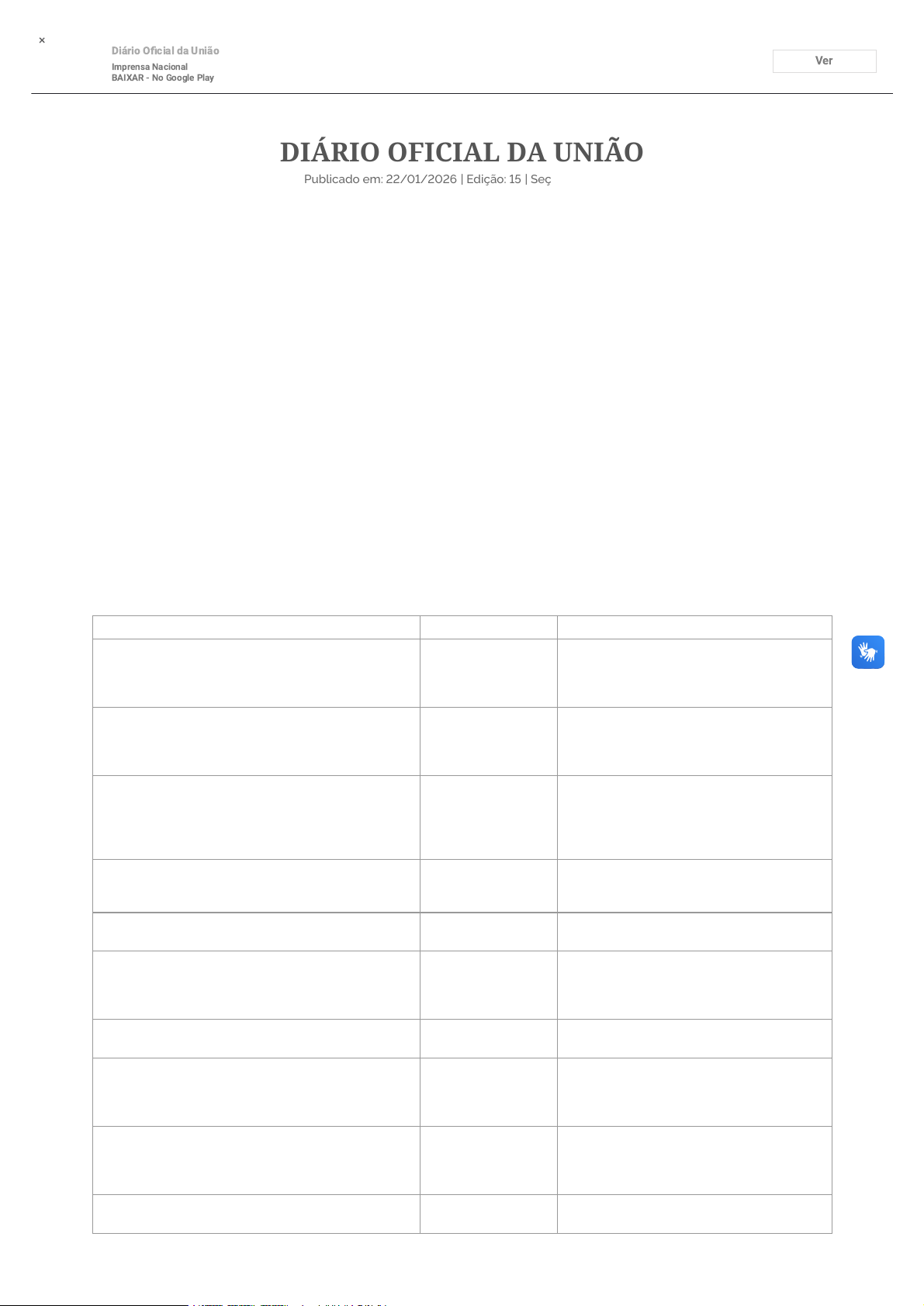 × Diário Oficial da União Imprensa Nacional BAIXAR - No Google Play Ver DIÁRIO OFICIAL DA UNIÃO Publicado em: 22/01/2026 | Edição: 15 | Seção: 3 | Página: 38 Órgão: Ministério da Educação/Instituto Federal de Educação, Ciência e Tecnologia do Sudeste de Minas Gerais EDITAL RETIFICAÇÃO DO EDITAL Nº 1/2026 O Reitor do Instituto Federal de Educação, Ciência e Tecnologia do Sudeste de Minas Gerais, no uso de suas atribuições legais, conferidas pelo Decreto Presidencial de 29-04-2025, publicado no Diário Oficial da União, Edição nº 81, de 30-04-2025, Seção 2, página 01, torna pública a RETIFICAÇÃO DO EDITAL 01/2026 - GABINETE DO REITOR que trata do Concurso Público para provimento, em caráter efetivo, dos cargos de PROFESSOR DA CARREIRA DO MAGISTÉRIO DO ENSINO BÁSICO, TÉCNICO E TECNOLÓGICO (EBTT) do Instituto Federal de Educação, Ciência e Tecnologia Sudeste - IF Sudeste MG: Onde se lê: 2.3. As áreas e os requisitos mínimos do cargo da carreira de Professor de Ensino Básico, Técnico e Tecnológico - EBTT estão detalhados no quadro 2 a seguir: QUADRO 2 - Área e os requisitos mínimos exigidos no concurso para o cargo da carreira de professor de ensino básico, técnico e tecnológico - EBTT. ÁREA/SUBÁREA CARGA HORÁRIA REQUISITOS Administração 40 (quarenta) horas semanais com dedicação exclusiva Graduação em Bacharelado em Administração Agronomia: tecnologia e produção de sementes, propagação vegetativa, viveiros de produção de mudas, arborização urbana, paisagismo, jardinagem e plantas medicinais 40 (quarenta) horas semanais com dedicação exclusiva Graduação em Agronomia ou Agroecologia Atendimento Educacional Especializado (AEE) 20 (vinte) horas semanais Graduação em Licenciatura em Educação Especial; ou Pedagogia com Habilitação em Educação Especial; ou Pedagogia com Especialização em Educação Especial ; ou Pedagogia com Especialização em Atendimento Educacional Especializado As especializações terão que conter carga-horária de no mínimo 360h Desenho Técnico, Desenho Técnico Mecânico, Desenho Arquitetônico, Desenho Auxiliado por CAD 40 (quarenta) horas semanais com dedicação exclusiva Graduação em Bacharelado em Arquitetura e Urbanismo Educação Física 20 (vinte) horas semanais Graduação em Licenciatura em Educação Física Engenharia Elétrica e Engenharia Ferroviária e Metroviária 40 (quarenta) horas semanais com dedicação exclusiva Graduação em Bacharelado em Engenharia Elétrica ou Graduação em Engenharia Ferroviária e Metroviária. Engenharia Mecânica e Engenharia Ferroviária e Metroviária 40 (quarenta) horas semanais com dedicação exclusiva Graduação em Bacharelado em Engenharia Mecânica ou Graduação em Engenharia Ferroviária e Metroviária. Física 20 (vinte) horas semanais Graduação em Licenciatura em Física. market://details?id=br.gov.in.doumobile Geografia 40 (quarenta) horas semanais com dedicação exclusiva Graduação em Licenciatura em Geografia História 40 (quarenta) horas semanais com dedicação exclusiva Graduação em Licenciatura em História Língua Portuguesa/inglês 40 (quarenta) horas semanais com dedicação exclusiva Graduação em Letras/Inglês Química-geral, Química Orgânica, Química Inorgânica, Físico-química, Química Analítica e Química Ambiental 40 (quarenta) horas semanais com dedicação exclusiva Graduação em Licenciatura em Química Transporte e Trânsito (necessário conhecer sobre gerenciamento de projetos e instalações estruturais e hidráulicas) 40 (quarenta) horas semanais com dedicação exclusiva Graduação em Bacharelado em Engenharia Civil ou Arquitetura Leia-se: 2.3. As áreas e os requisitos mínimos do cargo da carreira de Professor de Ensino Básico, Técnico e Tecnológico - EBTT estão detalhados no quadro 2 a seguir: QUADRO 2 - Área e os requisitos mínimos exigidos no concurso para o cargo da carreira de professor de ensino básico, técnico e tecnológico - EBTT. ÁREA/SUBÁREA CARGA HORÁRIA REQUISITOS Administração 40 (quarenta) horas sem dedicação exclusiva Graduação em Bacharelado em Administração Agronomia: tecnologia e produção de sementes, propagação vegetativa, viveiros de produção de mudas, arborização urbana, paisagismo, jardinagem 40 (quarenta) horas semanais com dedicação exclusiva Graduação em Agronomia ou Agroecologia Atendimento Educacional Especializado (AEE) 20 (vinte) horas semanais Graduação em Educação Especial ou Graduação em Licenciatura em qualquer área de conhecimento, com Pós-Graduação em Educação Especial, ou em Atendimento Educacional Especializado. As especializações terão que conter carga- horária de no mínimo 360h Desenho Técnico, Desenho Técnico Mecânico, Desenho Arquitetônico, Desenho Auxiliado por CAD 40 (quarenta) horas semanais com dedicação exclusiva Graduação em Bacharelado em Arquitetura e Urbanismo Educação Física 20 (vinte) horas semanais Graduação em Licenciatura em Educação Física Engenharia Elétrica e Engenharia Ferroviária e Metroviária 40 (quarenta) horas semanais com dedicação exclusiva Graduação em Bacharelado em Engenharia Elétrica ou Graduação em Engenharia Ferroviária e Metroviária. Engenharia Mecânica e Engenharia Ferroviária e Metroviária 40 (quarenta) horas semanais com dedicação exclusiva Graduação em Bacharelado em Engenharia Mecânica ou Graduação em Engenharia Ferroviária e Metroviária. Física 20 (vinte) horas semanais Graduação em Licenciatura em Física. Geografia 40 (quarenta) horas semanais com dedicação exclusiva Graduação em Licenciatura em Geografia História 40 (quarenta) horas semanais com dedicação exclusiva Graduação em Licenciatura em História Língua Portuguesa/inglês 40 (quarenta) horas semanais com dedicação exclusiva Graduação em Letras/Inglês Química-geral, Química Orgânica, Química Inorgânica, Físico-química, Química A