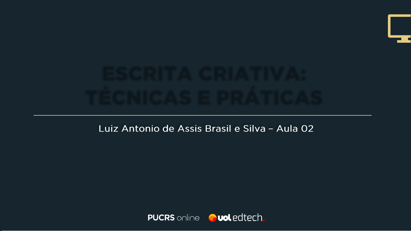 ESCRITA CRIATIVA: TÉCNICAS E PRÁTICAS APRESENTAÇÃO DE APOIO Professor titular na Pontifícia Universidade Católica do Rio Grande do Sul (PUCRS) e coordenador-geral do DELFOS - Espaço de Documentação e Memória Cultural - da mesma instituição, onde mantém pesquisa ativa em acervos de escritores do Sul do país e, por conta disso, é pesquisador ativo do CNPq. Foi secretário de Estado da Cultura do Rio Grande do Sul na gestão de 2011 a 2014. Mantém de forma ininterrupta, há 34 anos, a Oficina de Criação Literária na PUCRS, a mais antiga do Brasil em funcionamento e da qual surgiram nomes como Michel Laub, Amilcar Bettega, Daniel Galera, Cíntia Moscovich, Carol Bensimon, Letícia Wierszchowski, Clarah Averbuck, Paulo Scott, Daniel Pellizzari, dentre outros de igual relevância. Atua na Faculdade de Letras e no programa de Pós- Graduação em Letras da Escola de Humanidades da PUCRS, nas disciplinas de Fundamentos da Criação Literária e Criação Literária. Possui 21 obras publicadas, especialmente no gênero ficcional- narrativo no Brasil, Portugal, Espanha e França.Obteve os prêmios literários Machado de Assis, Jabuti, Portugal Telecom, Prêmio Literário Nacional do INL e Érico Veríssimo. LUIZ ANTONIO DE ASSIS BRASIL E SILVA Professor Convidado LUÍS ROBERTO AMABILE DE SOUZA JÚNIOR Professor PUCRS Possui graduação em Jornalismo, pós-graduação em Fundamentos da Cultura e das Artes, mestrado em Teoria da Literatura e doutorado em Teoria da Literatura (2017) e em Escrita Criativa (2020). É escritor e acadêmico, autor, entre outros, de O amor é um lugar estranho (2012, finalista do Prêmio Açorianos), O livro dos cachorros (2015, vencedor da chamada para publicação do IEL/RS) e O lado que não era visível para quem estava na estrada (2020, vencedor do Prêmio Minuano). Colaborou com Luiz Antonio de Assis Brasil em Escrever ficção (2019) e teve textos publicados em revistas e antologias no Brasil, em Portugal, na Espanha e nos Estados Unidos. Atualmente é professor na Escola de Humanidades da PUCRS. Professores Orientações sobre a prática criativa. Construção do ambiente estimulante. Desbloqueio para a escrita. O texto narrativo e o texto poético. Ementa da disciplina Romance “O romance é uma narrative em prosa de certa extensão em que há algo de errado.” “O romance é uma narrativa em prosa de certa extensão em que há algo de errado.” Randall Jarrell Escrever um romance é estar todo tempo em luta contra o bocejo do leitor. A grande pergunta Este romance é pra mim? Romance Novela Conto A lin e C a ix e ta A lin e C a ix e ta Escrita do romance linear K a io S e rr a te Um conceito O enredo eficiente O enredo [trama, plot] eficiente é sistêmico, e isso significa: que todos os episódios estão causalmente conectados; que cada episódio é essencial; que o conjunto das ações parece decorrer naturalmente da presença da personagem central. Algumas premissas: A personagem consistente é que comandará a narrativa. A questão essencial da personagem, suas as motivações e seus objetivos é que, somados aos fatores externos, farão emergir o conflito. darão sentido ao enredo e criarão os episódios, O enredo surgirá naturalmente da articulação dos elementos anteriores. O enredo se organiza como um sistema. Planejar ou não planejar? Personagem [e uma questão de gênero] Personagem de romance vs. Personagem de conto Dois conceitos operacionais: 1. O romance como uma unidade sistêmica 2. A personagem como sustentadora dessa unidade Um jovem, caracterizado por sua simultânea onipotência e fraqueza, mata duas pessoas e vê-se tomado por culpas e dúvidas derivadas de seu ato, que trazem à tona uma discussão sobre o bem e o mal, ao mesmo tempo em que se vê investigado e pressionado pela polícia, até que, convencido por sua namorada, confessa o duplo crime e é castigado com a prisão. Caravaggio 1571-1610 [a inspiração cristã] A personagem, um ser igual a nós. Le Mythe individuel du névrosé ou poésie et vérité dans la névrose [Lacan - Conférence donnée au Collège philosophique de Jean Wahl. 1953] A palavra não pode reter a ela mesma, nem reter o movimento de acesso à verdade, como uma verdade objetiva. Esse cenário fantasmagórico se apresenta como um pequeno drama, um gesto, que é precisamente a manifestação do que eu chamo de mito individual do neurótico. Le monde et ces remèdes [Clément Rosset, Paris: PUF, 2000] Todo comportamento de um ser humano pode ser explicado a partir dos principais traços de seu caráter, de que são a "causa" geral, mas que são, eles mesmos, sem causa, posto que são previamente dados: o fundamento do caráter de cada qual é portanto puramente irracional, como é toda paixão. Os impulsos da paixão explicam tudo, menos a si próprios. A avareza “explica" Harpagon, mas nada explica a sua avareza. Aqui tocamos o que há de fundamental no ser humano, que é esse dado anterior a toda modificação devida às circunstâncias ou ao meio ambiente. A personagem: um ser autônomo pré-narrativo [“pré- histórico”] A questão essencial da personagem uma contribuição pessoal aos estudos de criação literária Diz-se que personagem como alguém que "vive" uma história, sem atentar para a circunstância que o fenômeno se processa ao revés, isto é: a personagem é que "provoca", "cria" a história. Para tanto, é preciso que a entendamos como um ser autônomo, pré- narrativo, que, em dado momento, se articula com as circunstâncias da vida, acabando por incidir numa situação crítica que, por fim, evocará um conflito. Para ser autônoma, deve possuir elementos que lhe deem consistência, e essa consistência radica em sua questão essencial, uma rede interior de circunstâncias permanentes e que, em geral, causam intensa perturbação. Quanto mais certeza o ficcionista tiver acerca da A questão essencial da personagem é criada de forma consciente pelo ficcionis