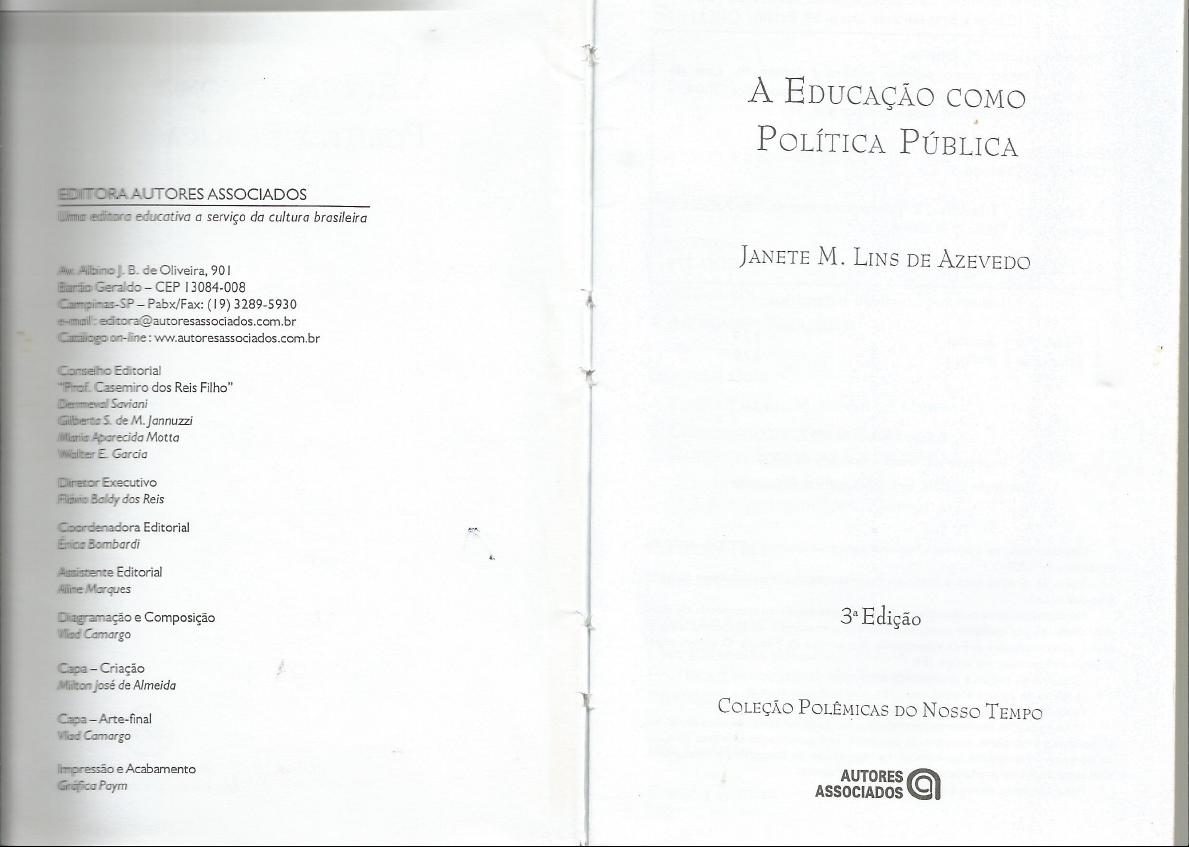 A EDUCAÇÃO COMO POLÍTICA PÚBLICA EDITORAAUTORES ASSOCIADOS educativa a serviço da cultura brasileira JANETE M. LINS DE AZEVEDO J.B. de Oliveira, 901 Geraldo CEP 13084-008 Pabx/Fax: (19) 3289-5930 on-line : ww.autoresassociados.com.br Conselho Editorial Casemiro dos Reis Filho" Saviani S. de M. Jannuzzi Aparecida Motta E. Garcia Diretor Executivo Baldy dos Reis Coordenadora Editorial Bombardi Assistente Editorial Marques Diagramação e Composição Edição Camargo Capa Criação José de Almeida COLEÇÃO POLÊMICAS DO Nosso TEMPO Capa - Arte-final Camargo e Acabamento AUTORES Paym ASSOCIADOSDados Internacionais de Catalogação na Publicação (CIP) (Câmara Brasileira do Livro, SP, Brasil) SUMÁRIO Azevedo, Janete Lins de A educação como política pública / Janete Lins de Azevedo. 3. ed. Campinas, SP : Autores Associados, 2004. (Coleção polêmicas do nosso tempo; vol. 56) Bibliografia. ISBN 85-85701-46-3 PREFÁCIO À SEGUNDA EDIÇÃO VII 1. Educação Filosofia 2. Educação e Estado 3. Política e APRESENTAÇÃO / educação I. Título. II. Série. INTRODUÇÃO 5 96-1729 CDD-379 Índices para catálogo sistemático: CAPÍTULO UM A ABORDAGEM NEOLIBERAL 9 Educação e Estado 379 2. Educação e política 379 CAPÍTULO DOIS A TEORIA LIBERAL MODERNA DA CIDADANIA 19 Edição julho de 1997 1. CONSIDERAÇÕES PRELIMINARES 19 Impresso no Brasil outubro de 2004 2. RAÍZES DA TEORIA: AS CONTRIBUIÇÕES DE DURKHEIM 21 Copyright © 2004 by Editora Autores Associados 2.1. A Abordagem Pluralista 24 2.2. A Abordagem Social-Democrata 29 Depósito legal na Biblioteca Nacional conforme Decreto n° 1.825, de 20 de CAPÍTULO TRÊS dezembro de 1907. Todos direitos para a língua portuguesa reservados pela Editora Autores A ABORDAGEM MARXISTA 39 Associados Ltda. Nenhuma parte da publicação poderá ser reproduzida ou transmitida de qual- quer modo ou por qualquer meio, seja eletrônico, mecânico, de fotocópia, de gra- CAPÍTULO QUATRO vação, ou outros, sem prévia autorização, por escrito da Editora. código penal brasileiro determina, no artigo 184: UMA PROPOSTA ANALÍTICA PARA A "Dos crimes contra a propriedade intelectual POLÍTICA EDUCACIONAL NO ESPAÇO DE Violação de direito autoral art. 184. Violar direito autoral Pena detenção de três meses a um ano, ou multa. INTERSEÇÃO DAS ABORDAGENS 57 Se a violação consistir na reprodução, por qualquer meio, de obra intelectu- todo ou em parte, para fins de comércio, sem autorização expressa do autor de quem represente, ou consistir na reprodução de fonograma e videograma, BIBLIOGRAFIA 69 autorização do produtor ou de quem represente: Pena reclusão de um a quatro anos e multa." SOBRE A AUTORA 77PREFÁCIO À SEGUNDA EDIÇÃO uando escrevi este livro, a intenção era a de socializar Q minhas preocupações com a educação entendida como política pública com pesquisadores e demais interessados, na perspectiva de fomentar debate a respeito da produção e difusão do conhecimento na área das políticas educativas. Desde a sua publicação, venho sendo contatada por uma quantidade significativa de leitores das diversas regiões do país, que me permite afirmar que aquela intenção inicial concre- tizou-se para muito além das minhas expectativas. Essas inte- rações, por seu turno, representam mais um dado indicativo do processo crescente de institucionalização da subtemática política educacional no "campo de produção intelectual" (no sentido que Bourdieu atribui a este conceito) sobre a educa- ção, fato que tenho constatado por meio de investigações mais sistemáticas (AZEVEDO & AGUIAR, 1999 e 2001). A dinâmica que se pode apreender nesse campo do conhe- cimento é resultante, seguramente, dos graves problemas que continuam a cercar a educação como prática social e, portanto, da inadequação das políticas educativas que estão sendo pos- tas em ação para equacioná-los. É suficiente lembrar que ingres- samos no terceiro milênio com novas demandas de formação e de conhecimento requeridas pelas mudanças sociais em cur-A EDUCAÇÃO COMO POLÍTICA PÚBLICA PREFÁCIO À SEGUNDA EDIÇÃO IX so, sem sequer termos assegurado direito à escolarização fun- dote conhecimento produzido de um coeficiente científico, damental de qualidade para a maioria da população, que sem abdicar de um nível analítico que contemple as condições exemplifica tanto a permanência como agravamento dos ní- de possibilidade da adoção de estratégias que venham a per- veis da desigualdade social historicamente imperantes entre nós. mitir a implementação de uma política de transformação, como Essas mudanças, elas próprias causadoras dos perversos apropriadamente sugerem Morrow e Torres (1997). Assim, níveis das desigualdades, ao atingir toda a realidade social, fa- podemos nos livrar da constante tentação de nos deixar envol- zem com que seus reflexos atinjam processos de pro- ver na prática "das que pouco contribui para a dução do conhecimento científico. Dentre outras formas, por construção de novos saberes comprometidos com a mudança estar forjando novas configurações das práticas sociais, cujas substantiva da ordem. tentativas de entendimento começaram a colocar em xeque Essas considerações me parecem importantes porque a referências teórico-metodológicas que se firmaram ao longo opacidade que cerca novos processos sociais, decorrentes do século XX. Sendo assim, encontram-se também em causa da reorganização do capitalismo em escala mundial, constitui OS paradigmas utilizados nas investigações do campo das Ciên- grande desafio para as Ciências Sociais e Humanas no senti- cias Sociais e Humanas e, por conseguinte, da educação e das do de melhor compreendê-los e de buscar alternativas para sua políticas educativas, que têm nelas sua fonte fundamental de superação. Não que problemas postos pelas novas formas inspiração no uso de teorias categorias analíticas, como pro- de relaç