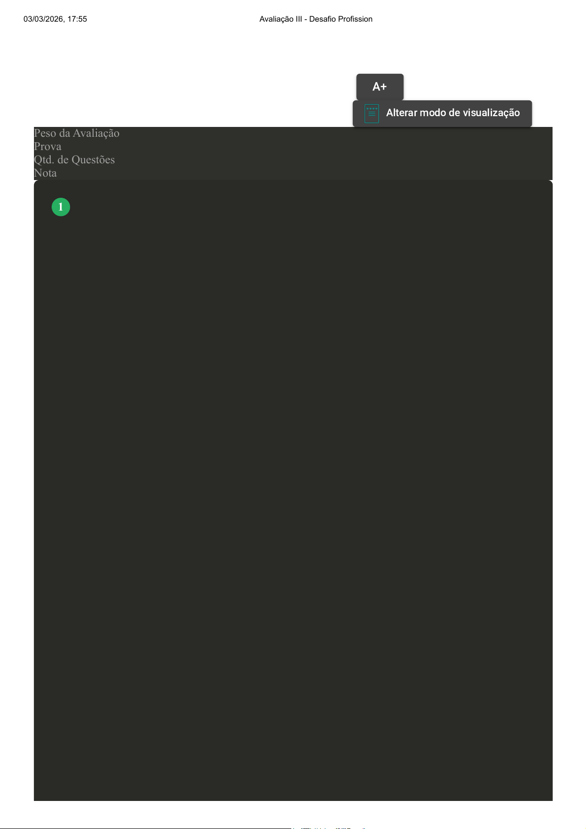 Prova Impressa GABARITO | Avaliação III - Desafio Profissional - Individual (Cod.:1600775) Peso da Avaliação 3,00 Prova 112346041 Qtd. de Questões 1 Nota 10,00 DESAFIO PROFISSIONAL DA DISCIPLINA DE TERAPIA OCUPACIONAL NA SAÚDE MENTAL E DISFUNÇÕES COGNITIVAS Esta é a descrição do seu Desafio Profissional. Para que você possa desenvolver sua atividade e chegar à conclusão desta avaliação, é preciso baixar e salvar o Template Padrão Único em Word, que está disponível no link ao final desta descrição. Para baixá-lo, clique em Arquivo > Criar uma cópia > Baixar uma cópia. Você só conseguirá editar o template depois de salvá-lo. Vamos adiante! Leia com atenção. Seja bem-vindo ao Desafio Profissional da Disciplina de Terapia Ocupacional Na Saúde Mental e Disfunções Cognitivas. Aqui, você assume o papel de profissional responsável por analisar a situação, tomar decisões e propor soluções. É o momento de aplicar seus conhecimentos de forma prática e mostrar como lidaria com um desafio real. ETAPA 1 - Apresentação do Desafio Profissional. Você, terapeuta ocupacional de uma clínica, recebe para avaliação a paciente Graça, acompanhada de sua filha. Na avaliação inicial, a acompanhante refere que a paciente apresenta esquecimentos frequentes, dificuldade na organização da rotina diária, isolamento social e desmotivação para a realização de atividades anteriormente significativas, como o cuidado com a própria loja. Relata ainda humor deprimido, redução da iniciativa, fadiga frequente e perda de interesse por atividades de lazer, sintomas que se intensificaram nos últimos meses. Graça possui diagnóstico médico de Transtorno Depressivo Maior, encontrando-se em acompanhamento psiquiátrico e em uso de medicação antidepressiva. As alterações emocionais e cognitivas têm impactado de forma significativa o desempenho ocupacional, comprometendo a autonomia nas atividades instrumentais de vida diária, o engajamento em papéis ocupacionais VOLTAR A+Aumentar, Fonte Alterar modo de visualização 1 03/03/2026, 17:55 Avaliação III - Desafio Profissional - Individual about:blank 1/8 produtivos e a participação social, resultando em maior dependência familiar e empobrecimento do cotidiano. Você, como terapeuta ocupacional qualificado, usará escalas e testes que lhe deem o suporte necessário para traçar um bom plano terapêutico. ETAPA 2 - Materiais de referência (ambientação) para o Desafio Profissional Esquecimentos e organização da rotina indicam prejuízos nas funções cognitivas que interferem diretamente no desempenho ocupacional e na participação social, requerendo avaliação e estratégias específicas de intervenção. A desmotivação de Graça para cuidar da própria loja representa uma ruptura na identidade ocupacional, construída ao longo da vida por meio do trabalho e da produtividade. A Terapia Ocupacional entende que a perda ou interrupção de ocupações significativas pode intensificar quadros depressivos, sendo essencial atuar na ressignificação do fazer. As queixas de Graça devem ser analisadas também à luz do processo de envelhecimento, considerando fatores psicossociais, perdas afetivas e mudanças nos papéis ocupacionais. A manutenção do engajamento em ocupações significativas é um dos pilares para um envelhecimento saudável. https://bvsms.saude.gov.br/bvs/publicacoes/envelhecimento_ativo.pdf https://doi.org/10.4322/2526-8910.ctoAO1865 https://interacoes.ucdb.br/multitemas/article/view/847 https://bdm.unb.br/bitstream/10483/38968/1/2023_LuanaPessoaBarbosa_tcc.pdf ETAPA 3 - Levantamento de conceitos teóricos (preencher no Template Padrão Único). ETAPA 4 - Aplicação dos conceitos teóricos ao Desafio Profissional (preencher no Template Padrão Único). ETAPA 5 – ETAPA AVALIATIVA - Redação do produto - Memorial Analítico - (preencher no Template Padrão Único e, após a finalização, copiar e colar no campo de resposta a seguir). Chegou a hora de transformar todo o seu percurso investigativo em um texto claro, bem estruturado e objetivo. Você deverá desenvolver um Memorial Analítico. Este será o produto final do Desafio Profissional, que será avaliado com nota de zero a dez e terá peso três na média final da disciplina de Terapia Ocupacional Na Saúde Mental e Disfunções Cognitivas. 03/03/2026, 17:55 Avaliação III - Desafio Profissional - Individual about:blank 2/8 Lembre-se: para baixar o Template Padrão Único do Desafio Profissional, clique no link a seguir e siga o passo a passo: clique em Arquivo > Criar uma cópia > Baixar uma cópia. Você só conseguirá editar o template depois de salvá-lo. Bons estudos! FERIGOLLO, J. P. Terapia Ocupacional em Saúde Mental e Disfunções Cognitivas. Florianópolis: Arqué, 2024. 184 p. LINK DO TEMPLATE PADRÃO ÚNICO Resposta esperada Resumo do que você descobriu (1 parágrafo) – vale 1 ponto O estudante precisa resumir em até um parágrafo o que ele descobriu. A partir da avaliação inicial realizada na clínica de Terapia Ocupacional, identificou-se que Graça apresenta comprometimentos significativos no desempenho ocupacional decorrentes do Transtorno Depressivo Maior. Observam-se prejuízos cognitivos, como esquecimentos frequentes e dificuldade na organização da rotina diária, associados a alterações emocionais, incluindo humor deprimido, desmotivação, fadiga e redução da iniciativa. Tais fatores repercutem diretamente na autonomia para as Atividades Instrumentais de Vida Diária, no exercício de papéis ocupacionais produtivos — especialmente relacionados à gestão de sua própria loja — e na participação social, resultando em isolamento, maior dependência familiar e empobrecimento do cotidiano. Contextualização do desafio (1 parágrafo): Quem? Onde? Qual a situação? – vale 0,5 ponto O estudante precisa contextualizar o desafio. Trata-se de uma mulher adulta, avaliada em contexto ambulatoria