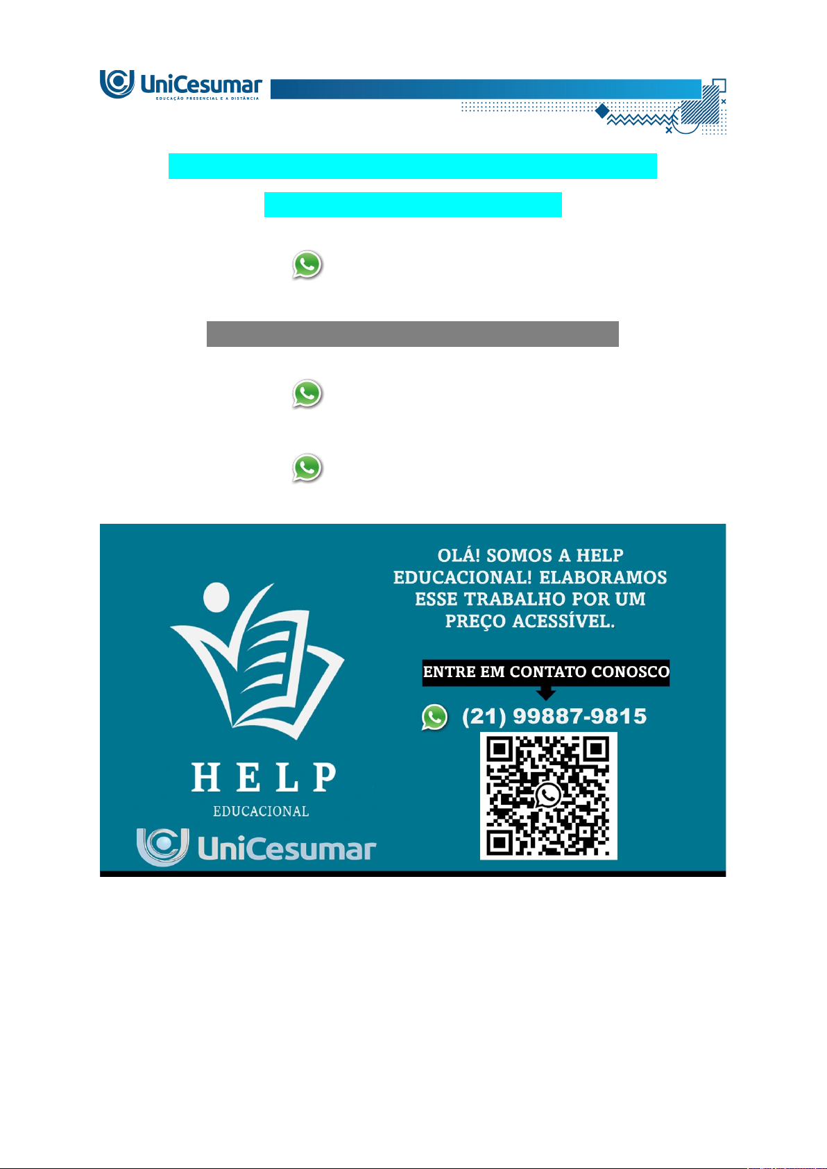 MAPA – FUNDAMENTOS E ARQUITETURA DE COMPUTADORES - 51_2026 (21) 99887-9815 ASSESSORIA NOS SEUS TRABALHOS (21) 99887-9815 (21) 99887-9815 Nesta atividade, você é convidado a verificar como a disciplina em questão pode contribuir para a sua experiência e formação profissional. Por esse motivo, você é instigado a solucionar um problema voltado para sua área de formação. “No mundo digital, todas as interações realizadas com dispositivos eletrônicos, como salvar uma imagem no celular, assistir a um vídeo no computador ou instalar um aplicativo, envolvem a manipulação e o armazenamento de dados. Compreender como esses dados são medidos é essencial para qualquer profissional da área de tecnologia. A menor unidade de informação reconhecida por um sistema computacional é o bit, abreviação de binary digit (dígito binário). O bit representa dois estados distintos: 0 ou 1, correspondentes, por exemplo, a um sinal elétrico desligado ou ligado, respectivamente” (Senne, 2025, p. 42-43). Fonte: SENNE, E. A. Fundamentos e Arquitetura de Computadores. Florianópolis: Arqué, 2025, p. 42–43. Tendo como base a citação apresentada, você deverá realizar uma pesquisa em fontes confiáveis (livros, materiais didáticos da disciplina e conteúdos acadêmicos) sobre: - O conceito de bit e sua importância para os sistemas computacionais. - A relação entre bit, byte e múltiplos de armazenamento (KB, MB, GB, TB). - Como a medição de dados impacta o desempenho, o armazenamento e a transmissão de informações em sistemas computacionais. Levando em consideração o contexto apresentado e suas pesquisas, considere a seguinte situação-problema: Você atua como analista de suporte em tecnologia da informação em uma empresa que está migrando seus sistemas para a nuvem. Durante uma reunião com gestores não técnicos, surgiram dúvidas sobre armazenamento de dados, consumo de espaço e limites de arquivos, e você foi solicitado a explicar esses conceitos de forma clara, técnica e acessível. Diante disso, responda às questões a seguir: A. Explique o que é um bit e por que ele é considerado a menor unidade de informação em sistemas computacionais. B. Descreva a relação entre bit e byte, explicando como ocorre a conversão entre essas unidades. C. Analise a importância dos múltiplos de armazenamento (KB, MB, GB, TB) no contexto de sistemas modernos e serviços em nuvem. D. Explique de que forma a compreensão das unidades de medida de dados auxilia profissionais de tecnologia na tomada de decisões técnicas. O que devo entregar? Você deverá entregar as respostas das perguntas em um único arquivo, no formato WORD ou PDF, conforme o formulário padrão disponível nos materiais da disciplina. Atenção: Deve-se utilizar o Template disponibilizado no MATERIAL DA DISCIPLINA para realizar essa atividade MAPA, essa atividade MAPA deve ser entregue com a extensão (.pdf) ou (.docx). Depois, deve ser anexado no ambiente da Atividade no STUDEO. IMPORTANTE! 1. Acesse o link do vídeo explicativo para ajudá-lo nesse processo de criação e desenvolvimento. O acesso deverá ser realizado em: Materiais >> Material da Disciplina. 2. Responda a todos os itens, seguindo como roteiro os tópicos elencados anteriormente, e coloque em um único arquivo. 3. A entrega deve ser feita por meio do Template de entrega da atividade MAPA, disponível no material da disciplina. 4. Antes de enviar sua atividade, certifique-se de que respondeu a todas as perguntas e realize uma cuidadosa correção ortográfica. 5. Após o envio, não são permitidas alterações ou modificações. Logo, você tem apenas uma chance de enviar o arquivo corretamente. Revise bem antes de enviar! 6. Lembre-se de que evidências de cópias de materiais, incluindo de outros estudantes, sem devidas referências, serão inquestionavelmente zeradas. As citações e referências, mesmo que do livro da disciplina, devem ser realizadas conforme normas da Instituição de Ensino. 7. Não são permitidas correções parciais no decorrer do módulo, ou seja, o famoso: “professor, veja se minha atividade está certa?”. Isso invalida seu processo avaliativo. Lembre-se de que a interpretação da atividade também faz parte da avaliação. 8. Procure sanar suas dúvidas junto à mediação em tempo hábil sobre o conteúdo exigido na atividade, de modo que consiga realizar sua participação. 9. Atenção ao prazo de entrega, evite envio de atividade em cima do prazo. Você pode ter algum problema com internet, computador, software etc., e os prazos não serão flexibilizados, mesmo em caso de comprovação. Boa atividade! OLÁ! SOMOS A HELP EDUCACIONAL! ELABORAMOS ESSE TRABALHO POR UM PREÇO ACESSÍVEL. ENTRE EM CONTATO CONOSCO (21) 99887-9815 image1.png image2.png image3.png
