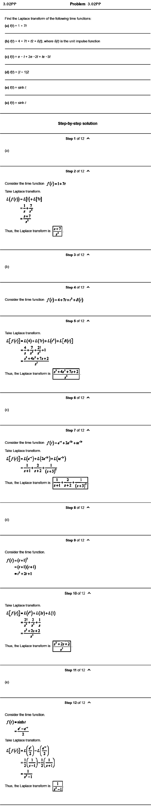 Find the Laplace transform of the following time functions: